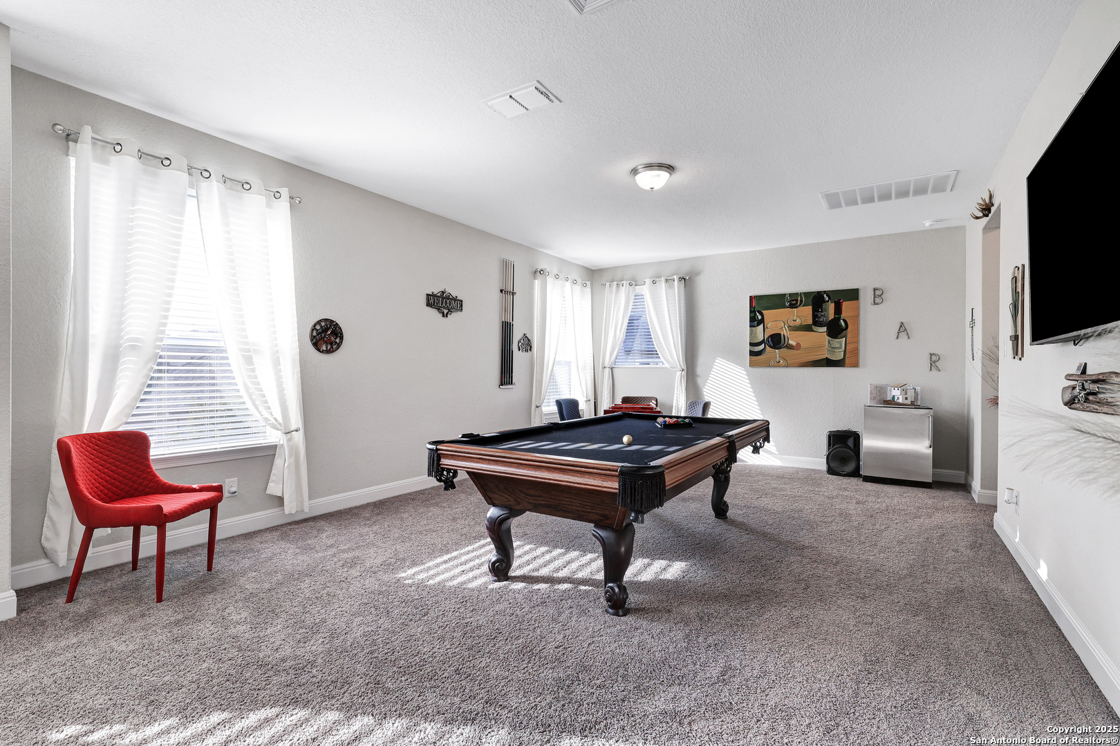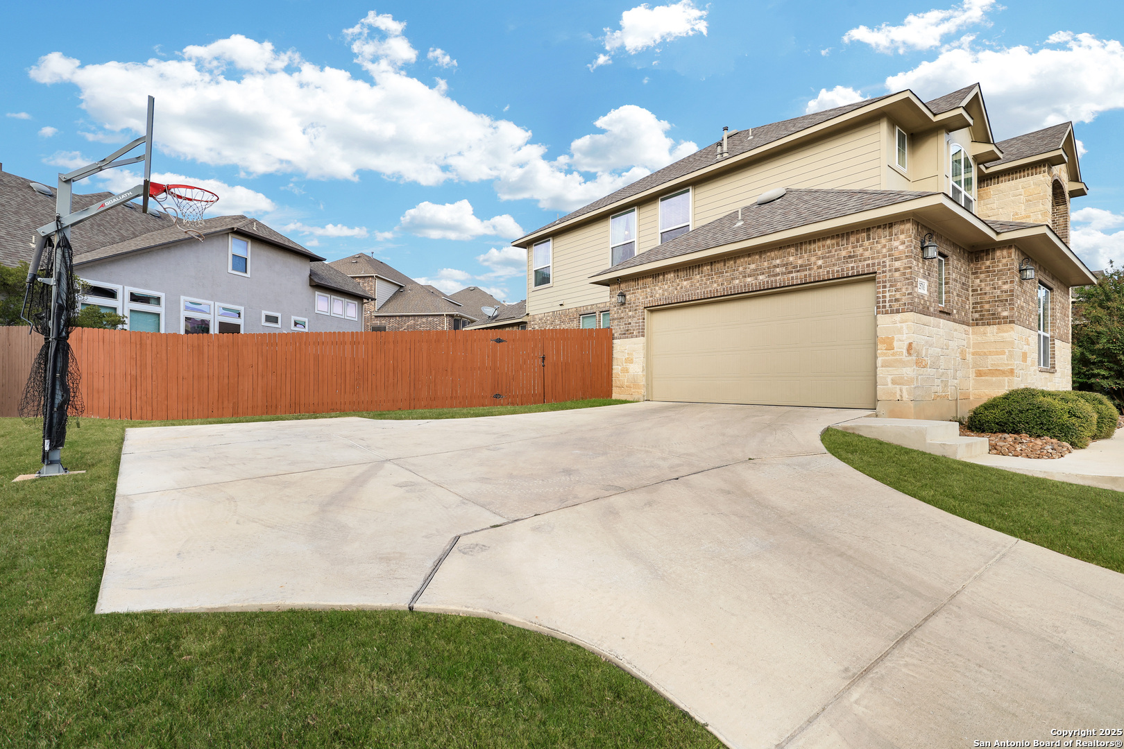 Welcome to this beautifully designed 5-bedroom, 4-bathroom stone and stucco residence, enhanced with elegant brick accents and a charming second-story balcony. Situated on an oversized lot adjacent to the model home, this property offers scenic views of a seasonal lake - the perfect backdrop for your dream home. Inside, the heart of the home is a gourmet kitchen featuring dual islands, abundant cabinetry, and premium finishes - ideal for both everyday living and entertaining. The spacious layout includes dedicated game and media rooms, offering plenty of room for relaxation and recreation. Enjoy outdoor living year-round on the expansive covered patio, and take advantage of the extra-deep 3-car side-entry garage, providing ample space for vehicles, storage, or a workshop. This home combines thoughtful design with luxurious touches and a prime location. Don't miss your chance to own one of the most sought-after floorplans in the community!
