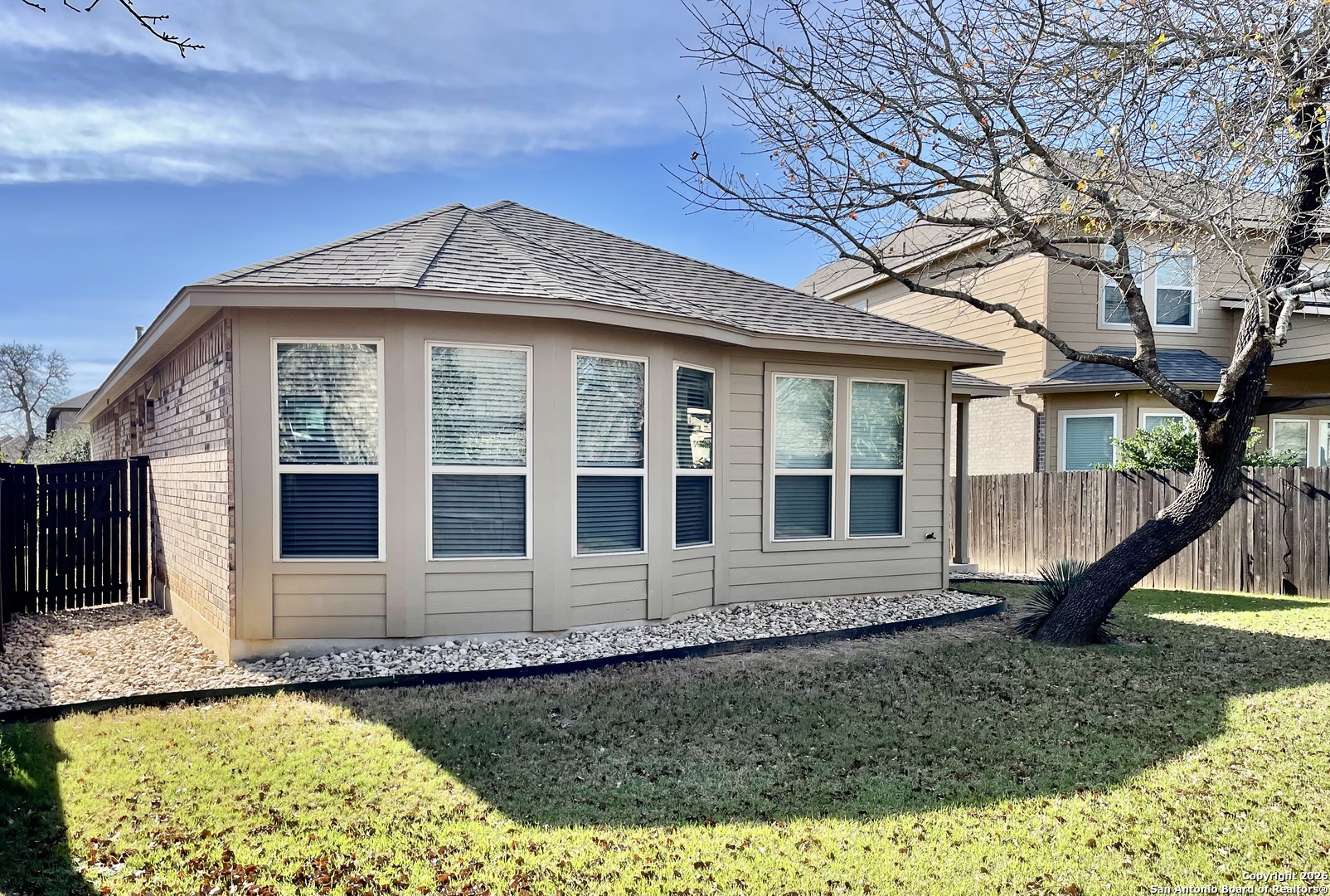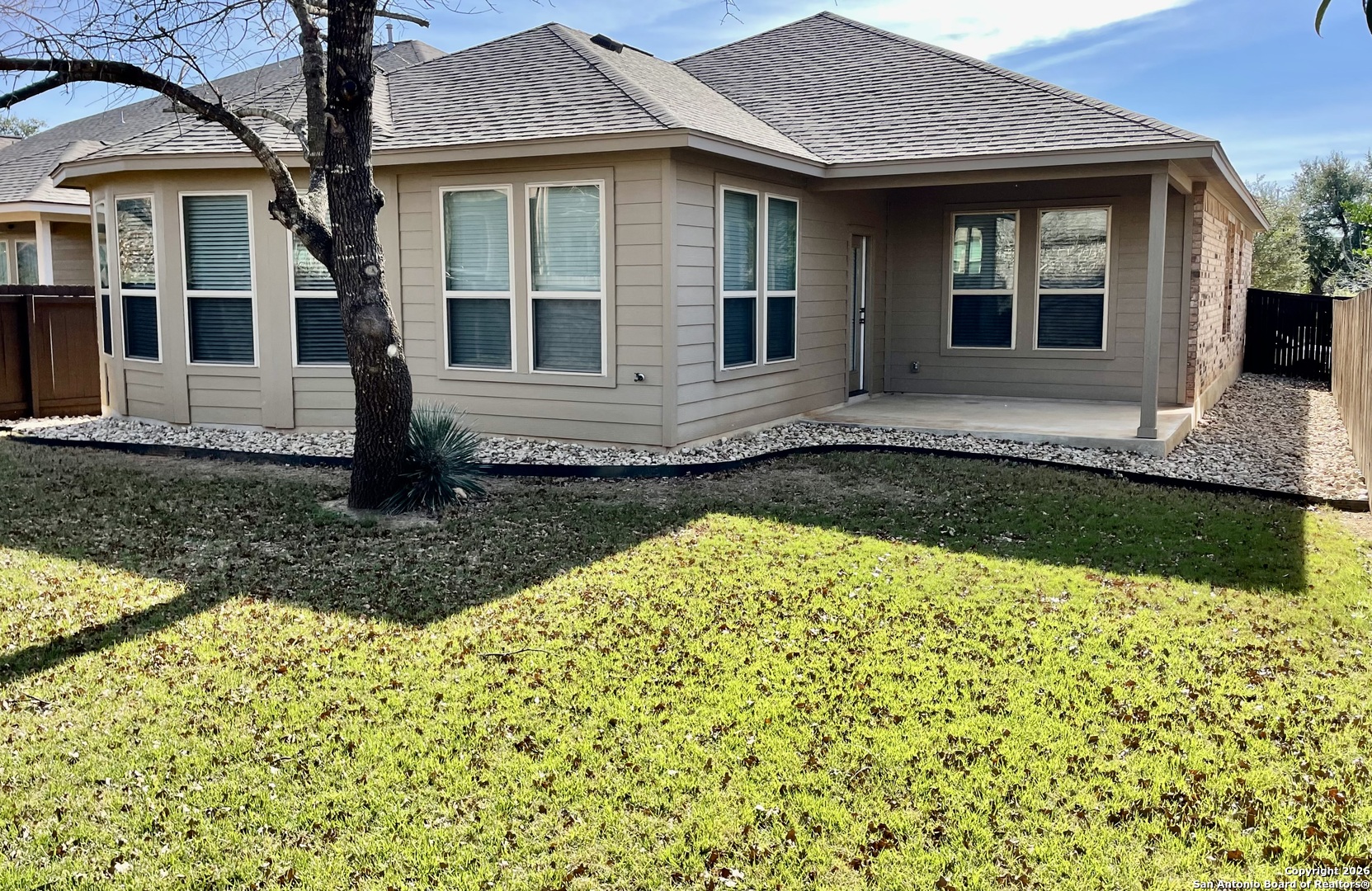 Won't last 3 bedroom/2 bath home plus study/office in gated community! Open floor plan living & island kitchen with granite countertops & gas cooking. Generous primary bedroom with adjoining study/office. Well-maintained home conveniently located near Leon Springs, the Rim, & La Cantera.
