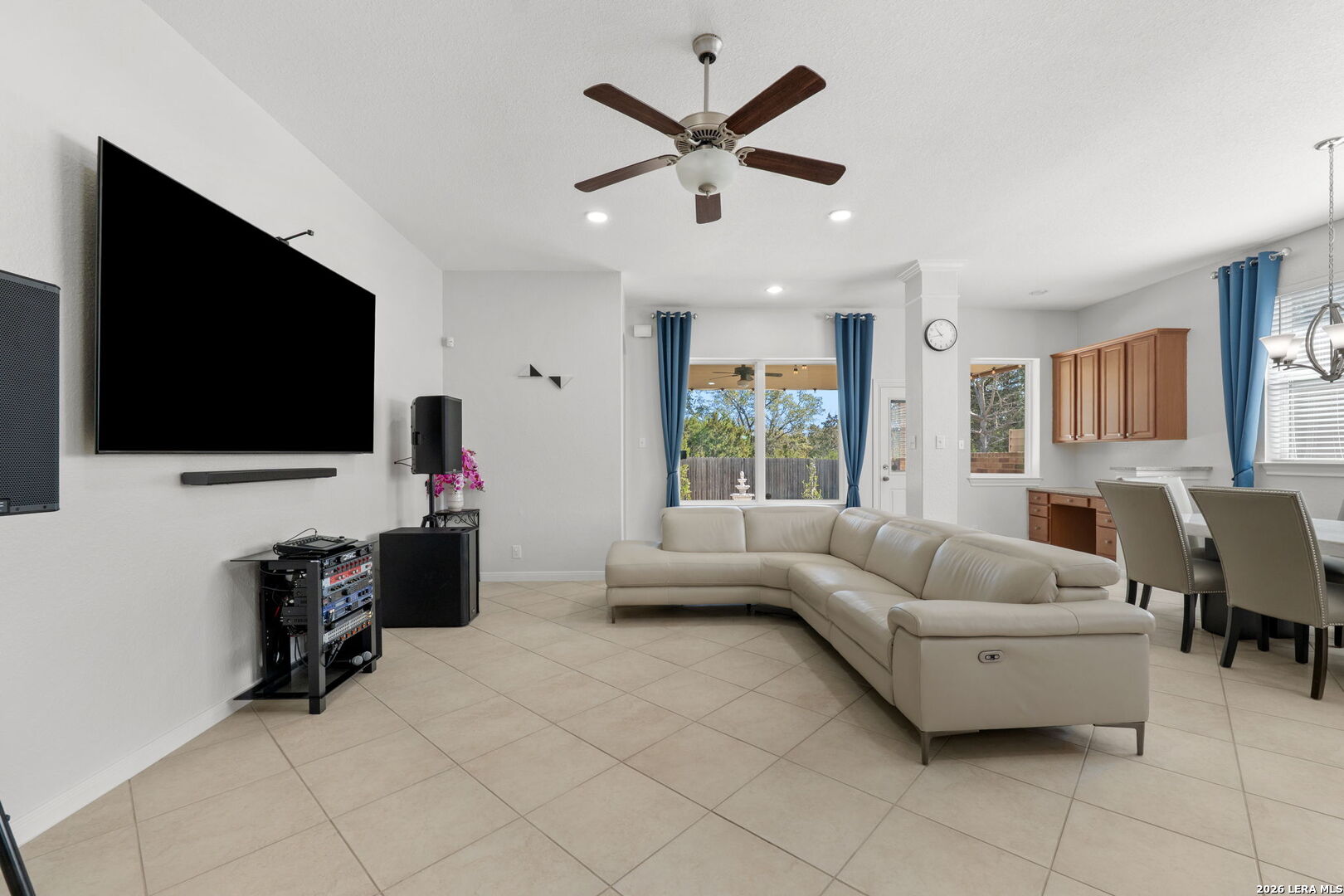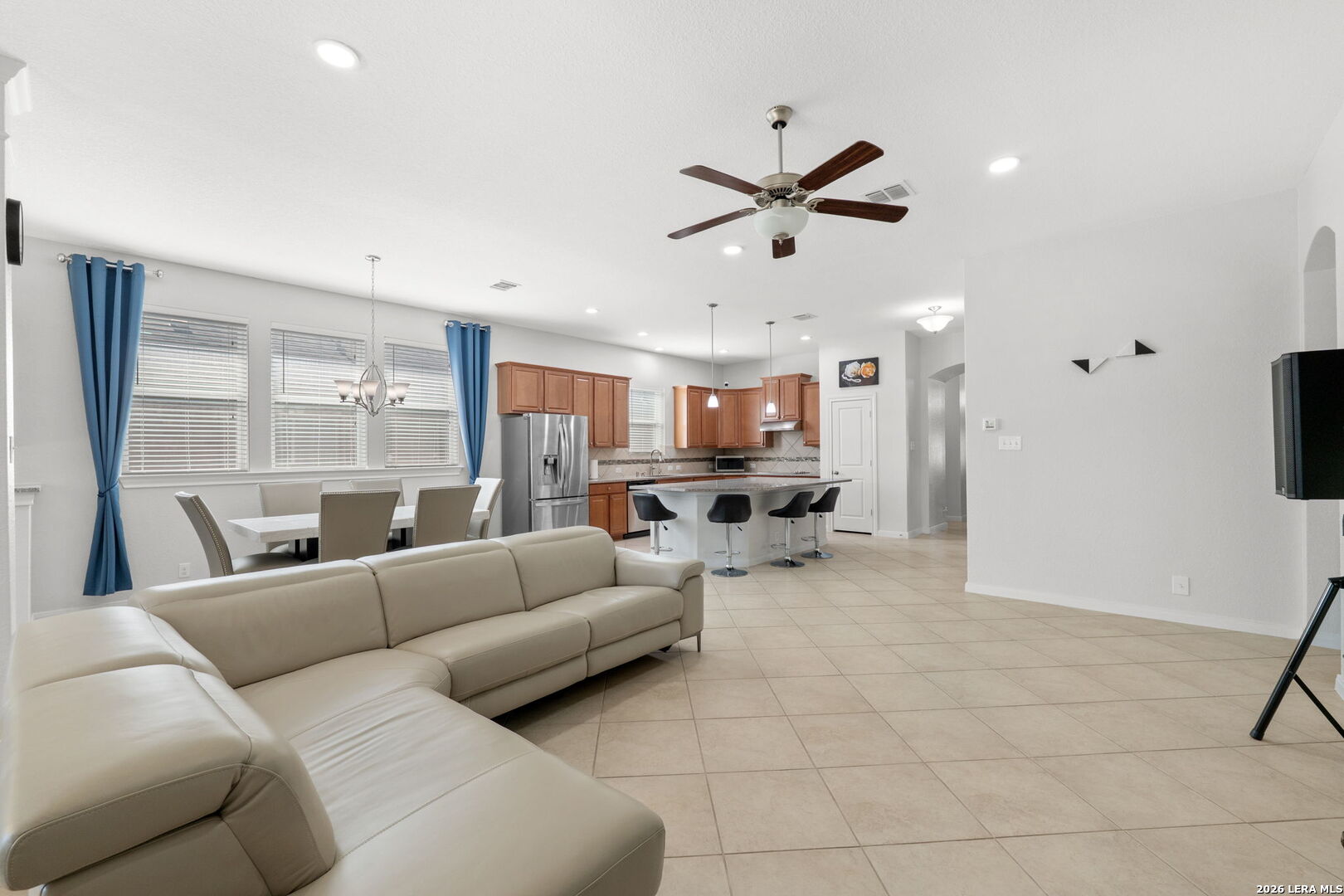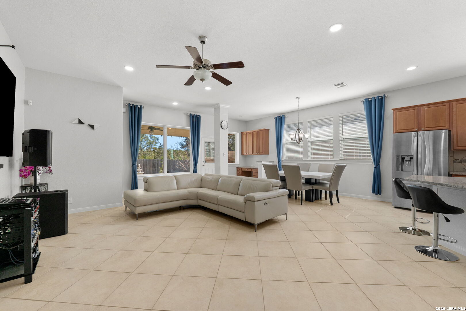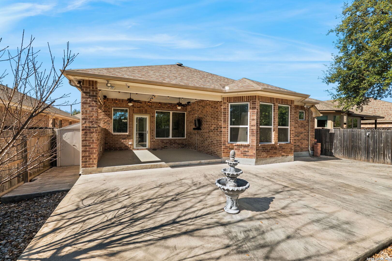 Located in the gated community of The Heights of Two Creeks in San Antonio, TX, this beautifully maintained single-story home offers comfort, functionality, and a thoughtfully designed layout. With a fully brick exterior and inviting curb appeal, the property blends timeless style with modern convenience. Inside, the open floor plan is enhanced by recessed lighting with mood-setting features, creating the perfect ambiance for relaxing evenings or movie nights. The spacious living and dining areas flow seamlessly into a well-appointed kitchen designed for both everyday living and entertaining. The kitchen features a large island with breakfast bar, granite countertops, and stainless steel appliances, offering both style and practicality. The home includes three bedrooms plus a versatile flex space ideal for a home office, creative studio, or additional lounge area. A separate game room or exercise space provides even more flexibility to suit a variety of lifestyles. The private primary suite offers a peaceful retreat with a soaking tub, separate shower, and a generous walk-in closet. Additional upgrades include a water softener and reverse osmosis filtration system for enhanced comfort and convenience. Step outside to enjoy the backyard featuring a covered patio and extended cement deck, creating an inviting outdoor space for gatherings or quiet evenings. Conveniently located near I-10, 1604, La Cantera, UTSA, Camp Bullis, Boerne, and Fair Oaks Ranch, this home offers excellent access to shopping, dining, entertainment, and major employment centers while maintaining a refined residential setting.