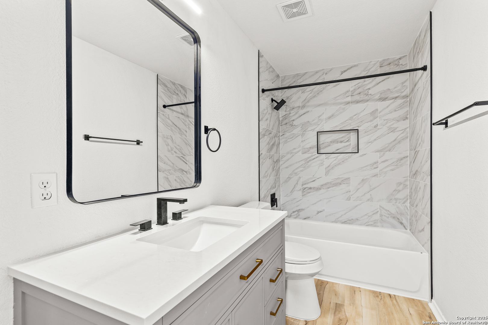 This beautifully renovated two-story home with 4 bedrooms and 2.5 baths is now available for lease in one of San Antonio's most desirable neighborhoods. The spacious layout includes an open-concept main level with high ceilings, a bright living area, and a modern kitchen offering abundant cabinetry, counter space, and a breakfast bar. The primary suite is conveniently located downstairs and features a gorgeous stand-up shower, dual vanities, and a large walk-in closet, while upstairs offers three additional bedrooms and a versatile loft perfect for a game room, media space, or home office. Step outside and enjoy your very own backyard retreat with a PRIVATE HOT TUB and plenty of space to relax or entertain. As a resident, you'll also have access to incredible neighborhood amenities including a community pool, clubhouse, playgrounds, and walking trails. At $2,995/month, this home delivers space, upgrades, and lifestyle all in one. Don't miss the chance to lease this rare find-schedule your showing today before it's gone!