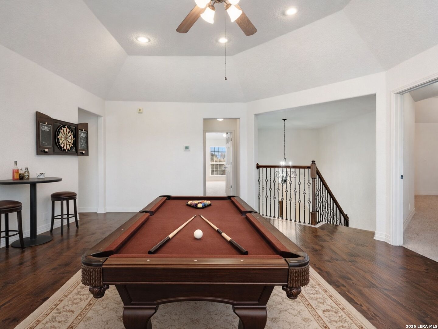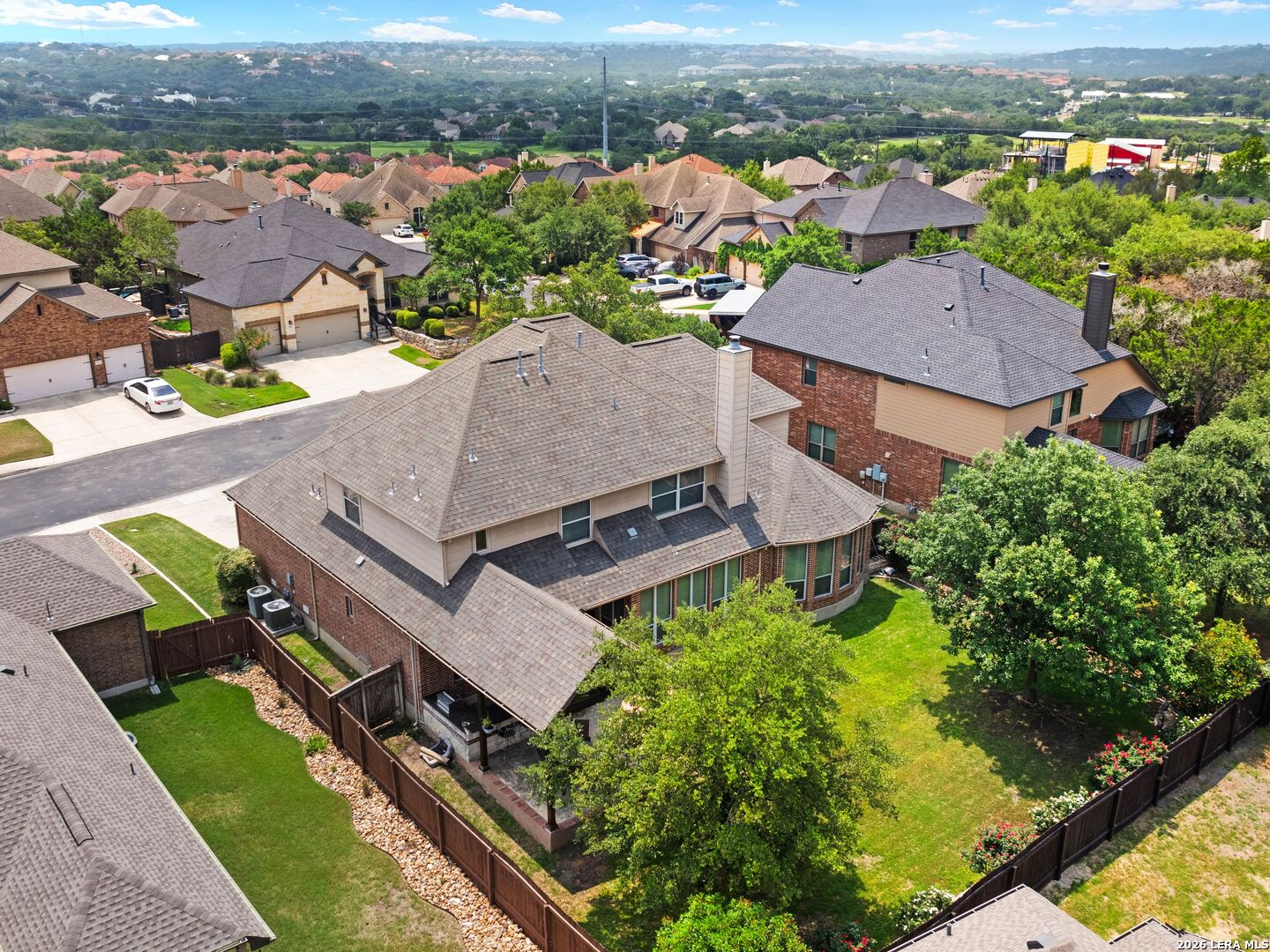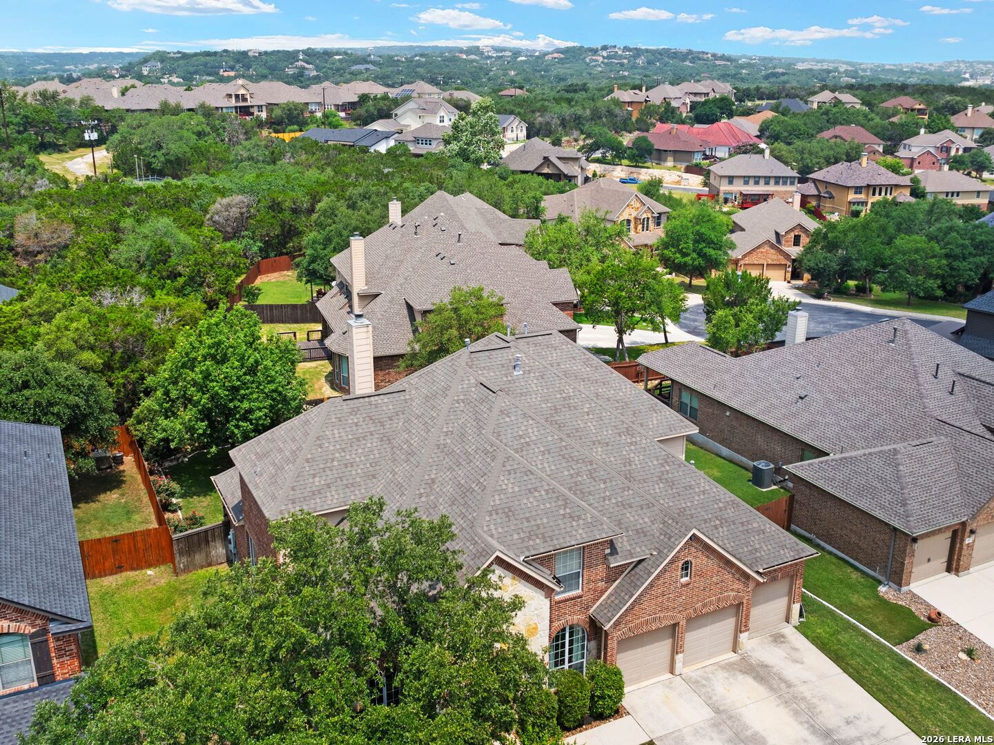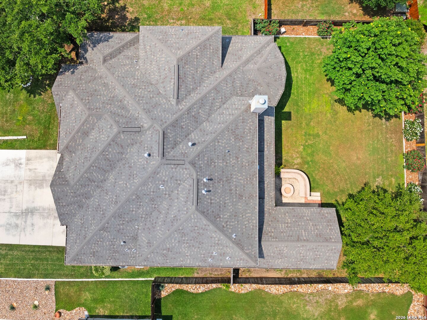 Designed for both grand entertaining and everyday comfort, this beautifully Highland Homes residence in the Summit at Canyon Springs offers a spacious multigenerational layout and exceptional indoor-outdoor living with refreshed interior paint. Step inside through the grand entry with soaring ceilings and abundant natural light, creating an immediate sense of openness and elegance. The thoughtfully designed floor plan leads into the heart of the home where the chef's kitchen features a breakfast bar, abundant cabinetry, and generous counter space, all flowing seamlessly into the expansive family room anchored by a dramatic floor-to-ceiling stone fireplace-perfect for gathering and entertaining. Tucked privately on the main level, the primary suite offers a peaceful retreat with space for a sitting area and large windows overlooking the backyard. The spa-inspired primary bathroom features a relaxing soaking tub, oversized walk-in shower, dual vanities with abundant storage, and a generously sized walk-in closet designed to accommodate extensive wardrobes with ease. Also on the main level is a secondary bedroom with a private en-suite bath, offering excellent flexibility for guests, multigenerational living, or a secondary private home office. Upstairs, the home becomes a true entertainment and recreation hub. Three spacious bedrooms feature walk-in closets and abundant natural light, with two connected by a convenient Jack-and-Jill bath and the third located near a full hall bath. The upper level also features a dedicated media room designed for immersive movie nights, along with an expansive game room ideal for billiards, gaming, or gathering. Just beyond, a hidden bonus space featuring a built-in rock-climbing wall adds a unique adventure-inspired element-perfect for an active playroom, home gym, or creative retreat. Step outside to your private backyard retreat designed for unforgettable gatherings, where mature trees provide shade and privacy. Enjoy outdoor living with a covered patio and pergola, a fully equipped outdoor kitchen, and a distinctive built-in sand fire pit, creating the perfect setting for relaxing evenings or lively entertaining under the Texas sky. Residents of Canyon Springs enjoy access to premier community amenities including a pool, parks, and recreation areas. The home is conveniently located near top-rated Comal ISD schools including Pieper High School, along with shopping, dining, medical facilities, and San Antonio International Airport.