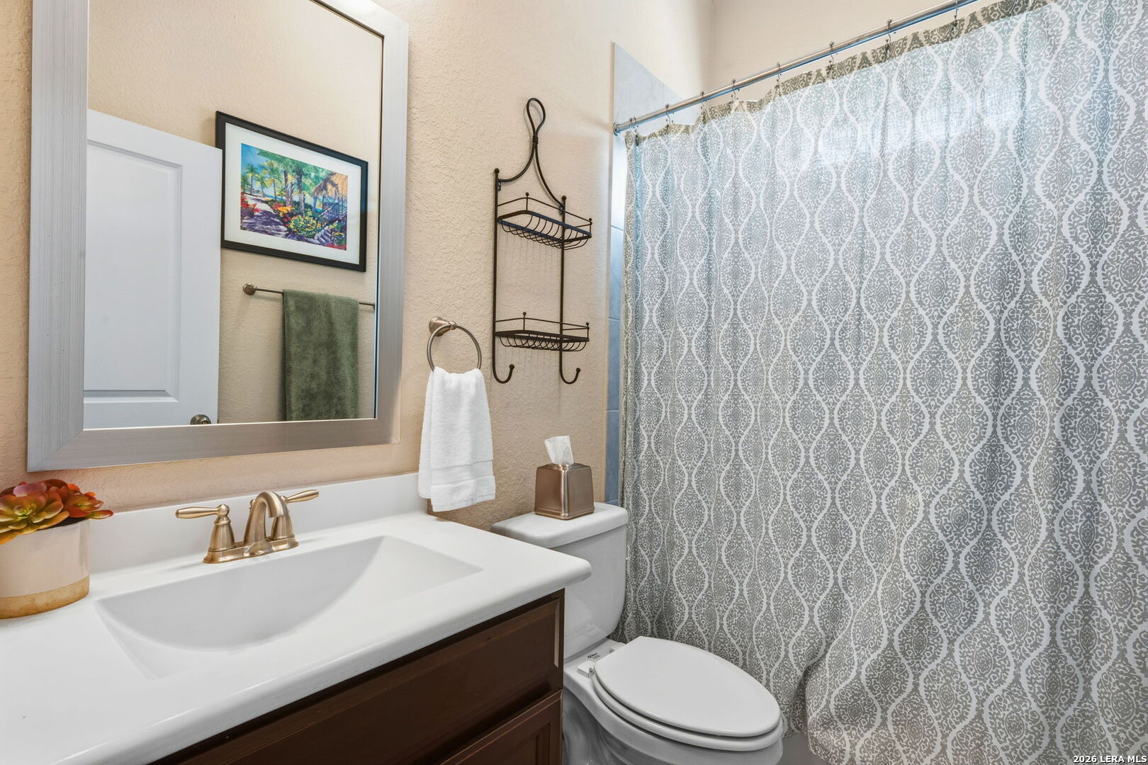Lovely home in popular & convenient Heights @ Two Creeks in Leon Springs is now on the market...featuring an easy living floorplan with Office, 2 Bedrooms and bathrooms on the main level plus 2 bedrooms and small loft upstairs. Situated on a cul de sac-leading lot, this home features an oversized backyard with extended deep covered patio w/gas hookup + a HOT TUB! Beautiful gleaming wood floors, modern-style fireplace, built-in server cabinetry in Dining area and a large open kitchen are just a few of the features in this entertainer's home. The Primary Suite is situated at the back of the home and has an expansive walk-in closet and huge shower plus double sinks. There is plenty of attic space for storage with convenient access points. The Neighborhood elementary plus nearby Daycare and shopping make this the perfect location. A wonderful neighborhood amenity center features sport court/basketball, pool and playground. 25810 Velvet Creek in Two Creeks is ready for you!