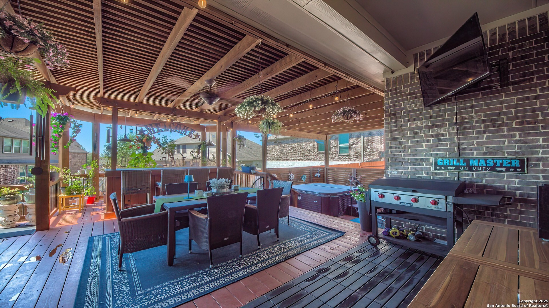 Gorgeous four bedroom, three bath, single story home with courtyard entry; 3 car tandem garage, culdesac and privacy; beautiful rotundra entry; fabulously updated rear patio and deck inclusive of bar with a built-in refrigerator. Over $60k in an upgraded deck complete with a hot tub for relaxation! Custom touches thru-out! Amazing kitchen with large island. The list could go on! Wonderful neighborhood pool and park!