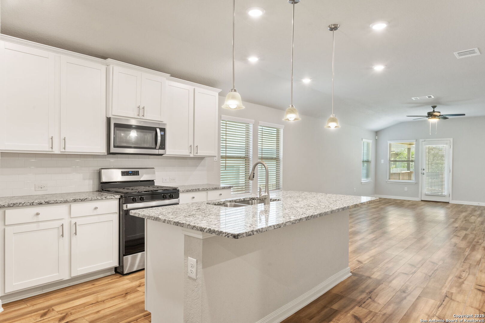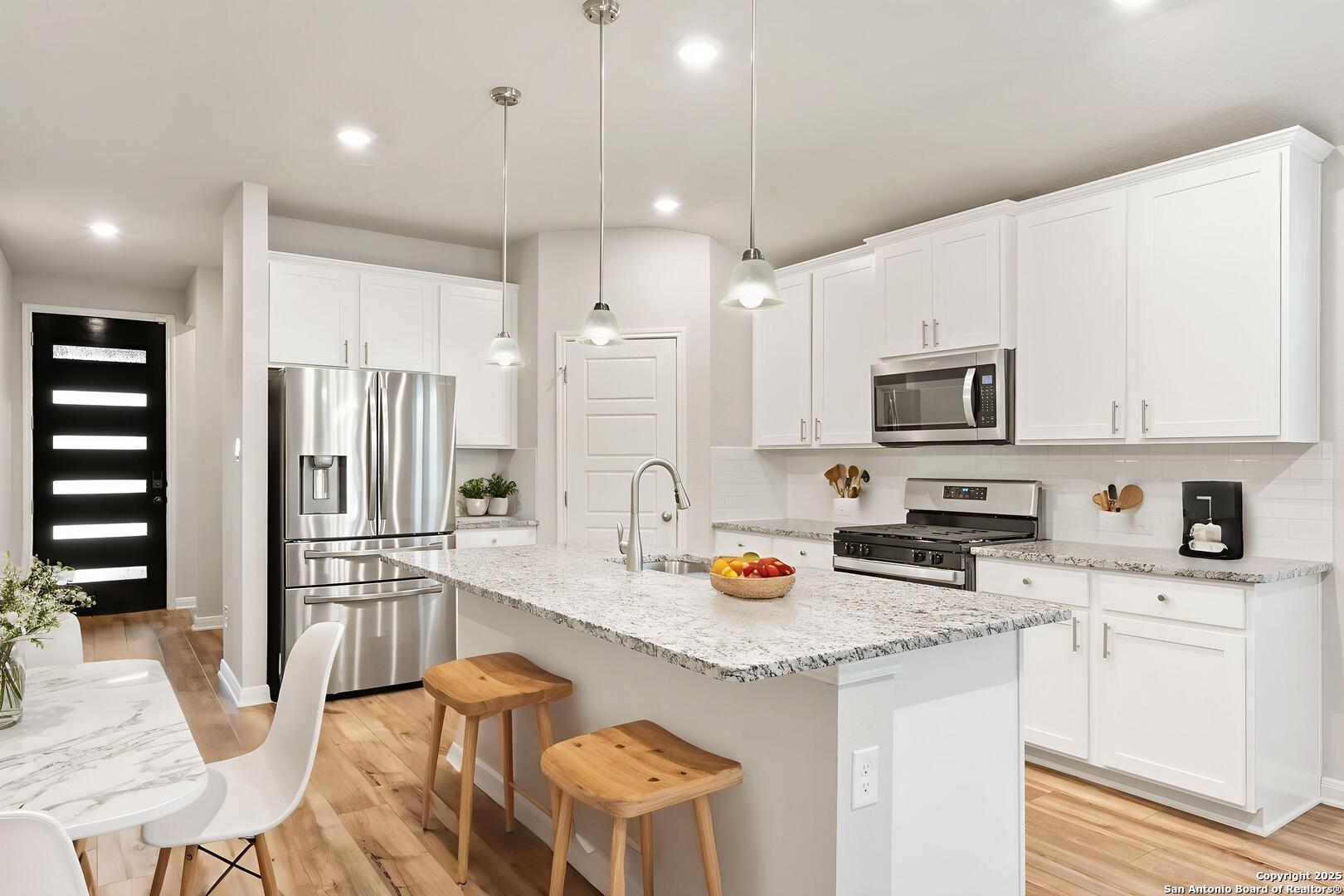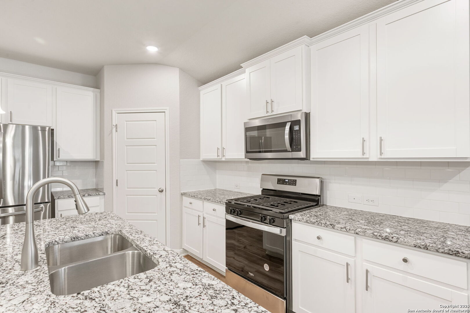 If you're looking for a NEARLY BRAND NEW home without having to wait for it to be built, look no further! This stunning Meritage home single story has all the creature comforts you've looking for in a floor plan that just makes sense. From the wide open great room (kitchen, dining area, and living room all flow into each other) to the comfortable and accommodating guest suite (separate from secondary & primary bedrooms), this house was thoughtfully designed and every square foot is used with purpose! The secondary bedrooms have their own living space, perfect for a playroom, workout area, or craft space away from the main living area of the home. The kitchen is extremely well appointed with gas cooking, beautiful granite counters, stunning white cabinetry, and plenty of storage space. The primary suite (split from secondary bedrooms) is spacious and features a luxurious full bath ensuite with a generous walk in closet. Step out onto the covered patio and enjoy the neatly manicured (and fully fenced) backyard before you rush off to make your offer on this like-new home! Schedule your showing today!