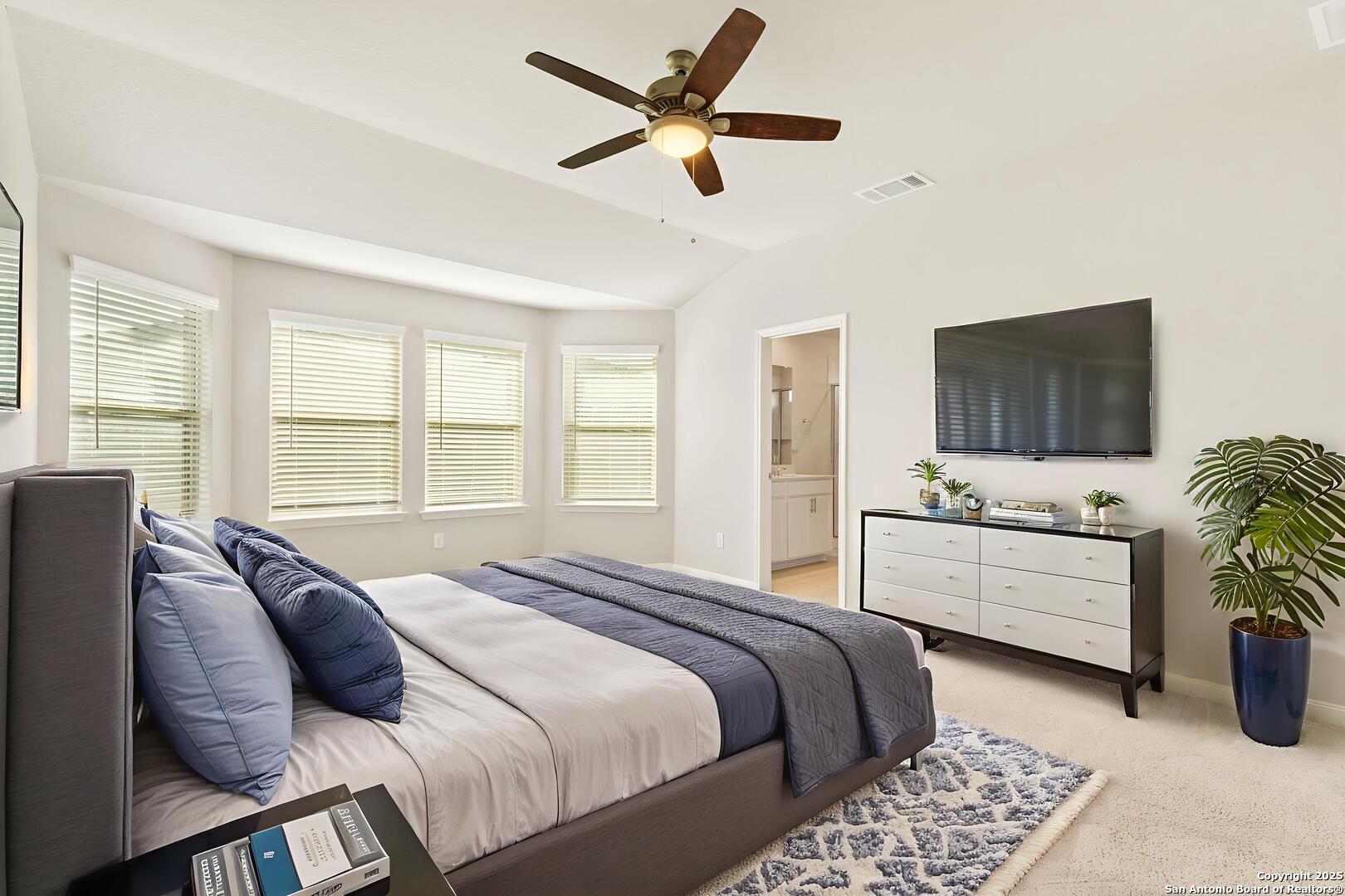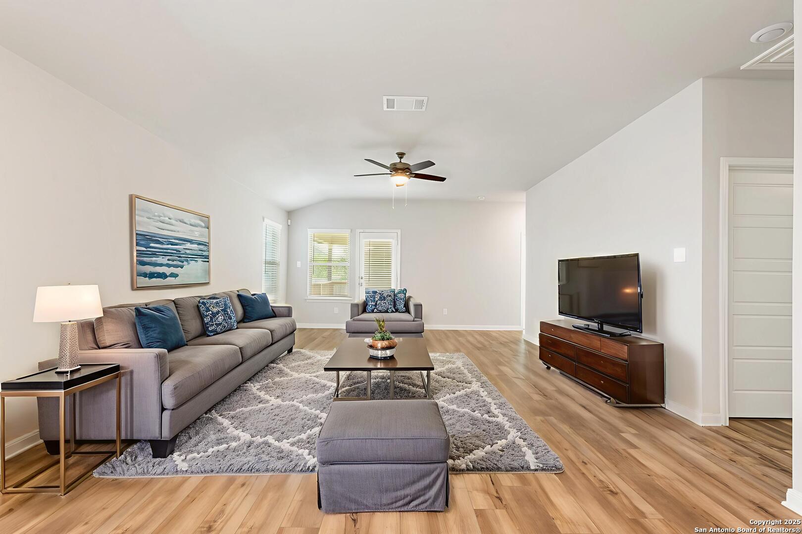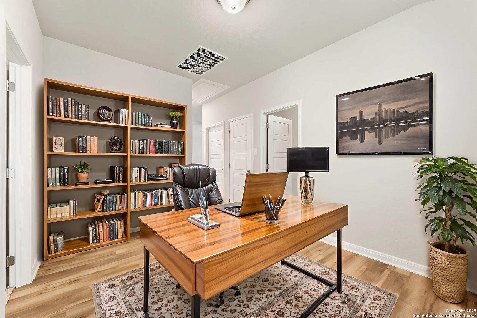If you're looking for a NEARLY BRAND NEW home without having to wait for it to be built, look no further! This stunning Meritage home single story has all the creature comforts you've looking for in a floor plan that just makes sense. From the wide open great room (kitchen, dining area, and living room all flow into each other) to the comfortable and accommodating guest suite (separate from secondary & primary bedrooms), this house was thoughtfully designed and every square foot is used with purpose! The secondary bedrooms have their own living space, perfect for a playroom, workout area, or craft space away from the main living area of the home. The kitchen is extremely well appointed with gas cooking, beautiful granite counters, stunning white cabinetry, and plenty of storage space. The primary suite (split from secondary bedrooms) is spacious and features a luxurious full bath ensuite with a generous walk in closet. Step out onto the covered patio and enjoy the neatly manicured (and fully fenced) backyard before you rush off to make your offer on this like-new home! Schedule your showing today!