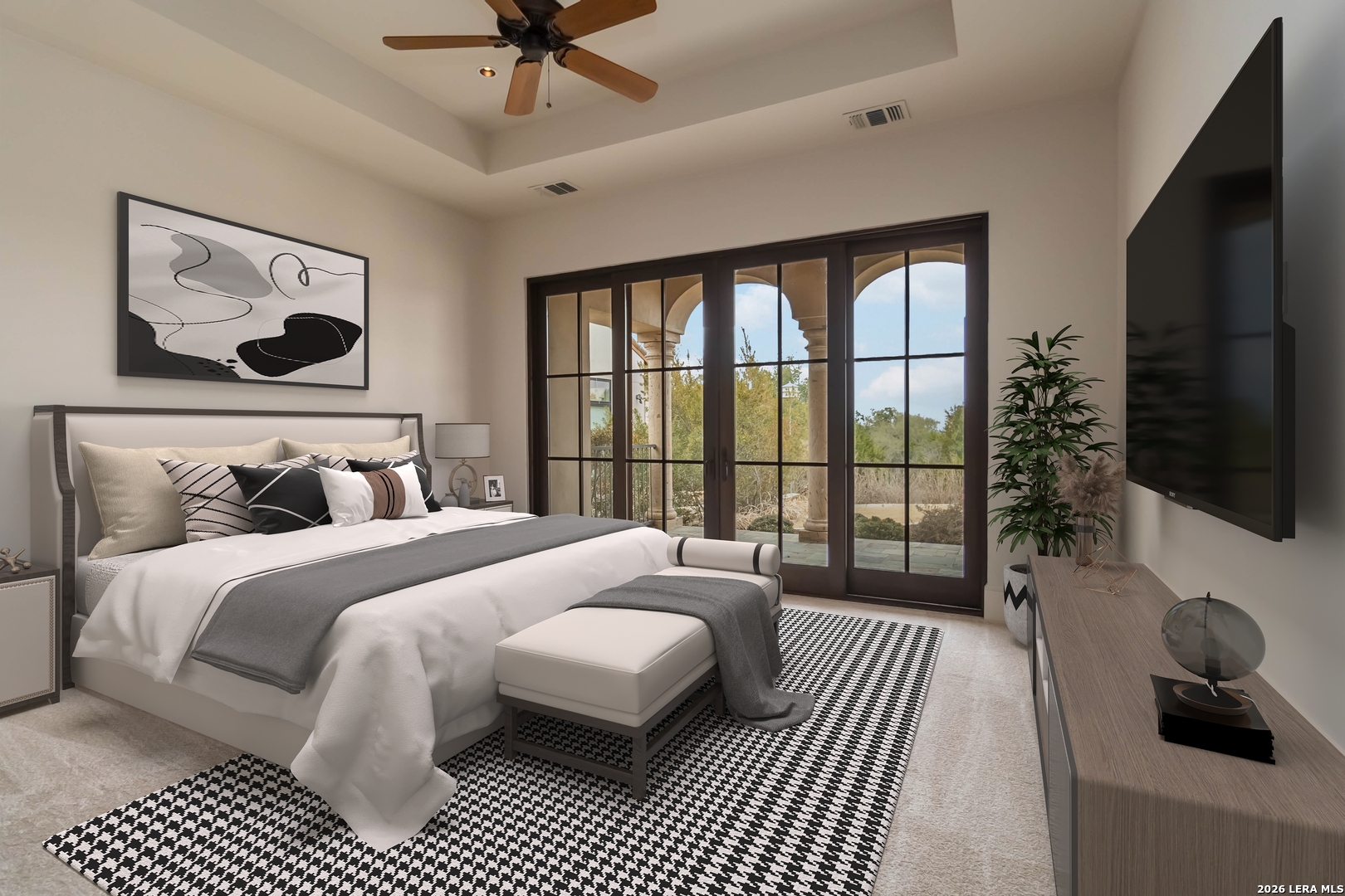 Discover the perfect blend of Hill Country charm and modern comfort in this thoughtfully designed one-story home, ideally situated within the private, secondary gated enclave of Di Lusso in the highly sought-after Cordillera Ranch community. Set on a premier private lot, this residence offers a rare sense of seclusion while maintaining effortless access to world-class amenities. The brick cobble stone style driveway and huge gated courtyard beckons a European ambience. Spanning 2,772 square feet, the home features three spacious bedrooms, two and a half baths, and a two-car garage sitting on over 1/4 acre. Warm wood flooring flows throughout the main living areas, creating a timeless foundation that complements the home's inviting design, while brand-new carpet in all bedrooms adds comfort and a fresh, move-in-ready feel. Designed for both relaxation and entertaining, the open-concept layout is anchored by a stunning great room with vaulted ceilings and a dramatic fireplace. The wall of windows accessing the expansive patio provides endless entertaining options. The space transitions seamlessly into the gourmet kitchen and dining area, where top-of-the-line appliances, a large center island, breakfast bar seating, and a walk-in pantry make everyday living and hosting a pleasure. The serene primary suite is a true retreat, offering peaceful views of the private backyard, a spa-inspired ensuite bath, and a generous walk-in closet. Two additional bedrooms (one with an ensuite) provide flexibility for guests, family, or a home office (3rd bedroom currently functions as a home office). Outdoors, mature landscaping frames the expansive lot, enhancing privacy and providing endless potential to create your own backyard oasis. A covered patio extends the living space outdoors-perfect for dining al fresco, unwinding to the soothing sounds of the fountain, or enjoying quiet evenings in the Hill Country breeze. Welcome to refined Hill Country living in one of the area's most desirable communities-where privacy, elegance, and natural beauty come together in a home designed for the way you live.