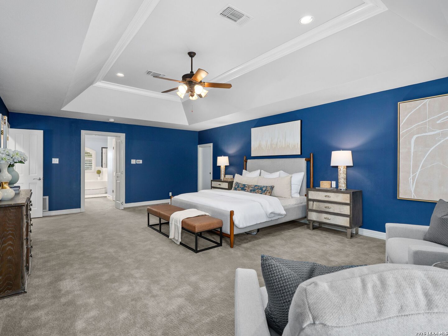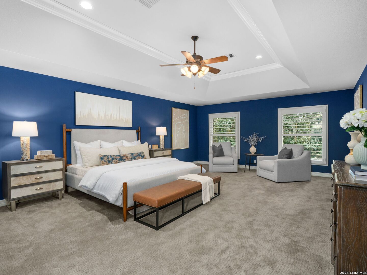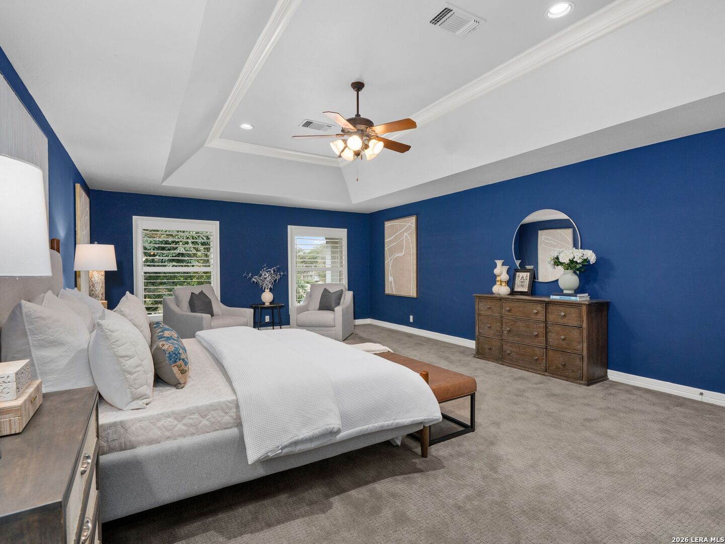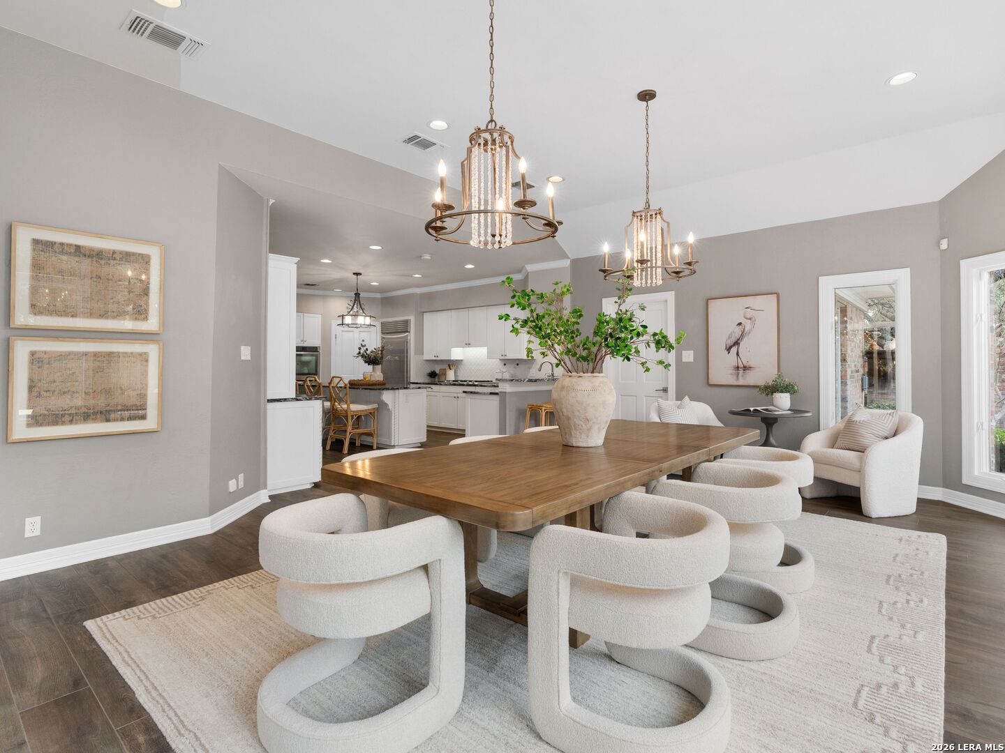 This stately 5-bed, 4.5-bath home on a corner lot in the gated Waters at Deerfield offers upscale living with functional design. A dramatic two-story entry and sweeping staircase set the tone for elegance throughout. Enjoy a gourmet kitchen with Sub-Zero fridge, double ovens, gas cooktop, and oversized granite island. The open family room overlooks a sparkling pool, lush yard, and outdoor kitchen-perfect for entertaining. The main level features formal living/dining, a wood-paneled office, a second living area, and a guest suite with full bath. Upstairs boasts a luxurious primary suite with two walk-in closets, whirlpool tub, sitting area, and workout space. Also upstairs you will find three additional bedrooms and two full bathrooms. Zoned to top-tier schools, this exceptional property combines luxury, space, and location for the ultimate lifestyle in one of the city's most sought-after neighborhoods.