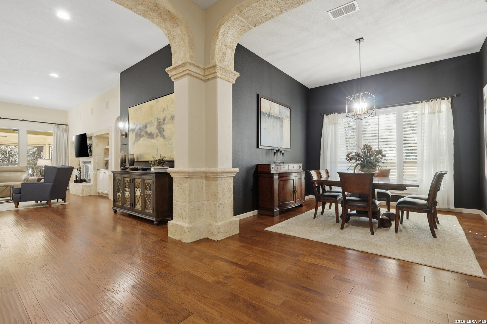 One of the nicest homes in the community, this beautifully updated residence offers an open, elegant layout designed for both everyday living and effortless entertaining. Wood flooring flows throughout the home, complemented by plantation shutters and a bright, open floor plan. The gourmet kitchen and bathrooms have all been beautifully updated, with the kitchen serving as the true heart of the home, featuring abundant cabinetry, a spacious pantry, and a layout ideal for hosting and gathering. The private, covered back patio with built-in grilling overlooks peaceful trails where deer and turkey are often seen, extending the sense of serenity found throughout the neighborhood. This gated community is known for its quiet setting, natural surroundings, and well-maintained amenities. Thoughtfully improved and meticulously cared for, this home delivers quality, comfort, and a lifestyle that stands apart. Opportunities like this are rare.