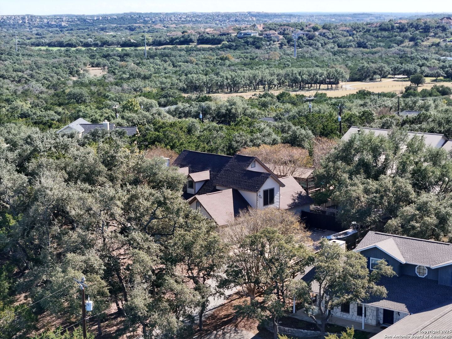 Gorgeous Hill Country custom home on one of the prettiest elevated homesites in Timberwood Park, w/ a view that is truly one in a million. You will love this home from the moment you drive down the quiet cul-de-sac street & see it above the road, nestled among beautiful mature oaks. It offers a 2-car side-entry garage, a big front porch, & a private, exceptionally landscaped backyard w/ a stone sitting area, garden/potting shed, rose bushes, & many other thoughtful landscaping touches. Enjoy your morning coffee & listen to the birds sing while relaxing under the well-designed covered back patio, which is also perfect for evening BBQs & social gatherings. When you step inside, it instantly feels like home. Tall ceilings, an impressive wood-burning fireplace, abundant windows, hardwood floors & light, neutral colors all stand out-along w/ the home's meticulously maintained condition. The kitchen is second to none, featuring custom cabinetry, a very large island, an undermount farmhouse sink, beautiful hard-surface countertops & quality stainless steel appliances. The spacious primary bedroom is located downstairs w/ private access to the patio & includes a large walk-in closet, separate tub & shower & a double vanity. Upstairs you'll find three generously sized bedrooms & two full baths. Beautifully updated & showing pride of ownership throughout. Located in highly rated Comal ISD & within a wonderful neighborhood offering an abundance of amenities, including a 30-acre private park w/ a lake, a 6-hole golf course, tennis courts, basketball court, volleyball court, junior Olympic swimming pool, kiddie splash pad, walking trails, pavilion & clubhouse. This home has it all!