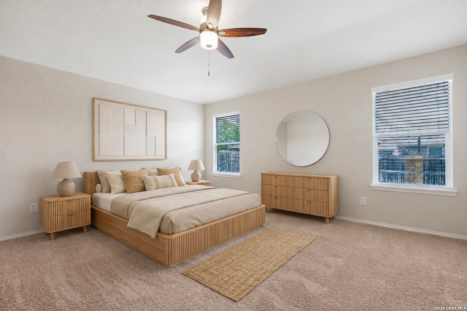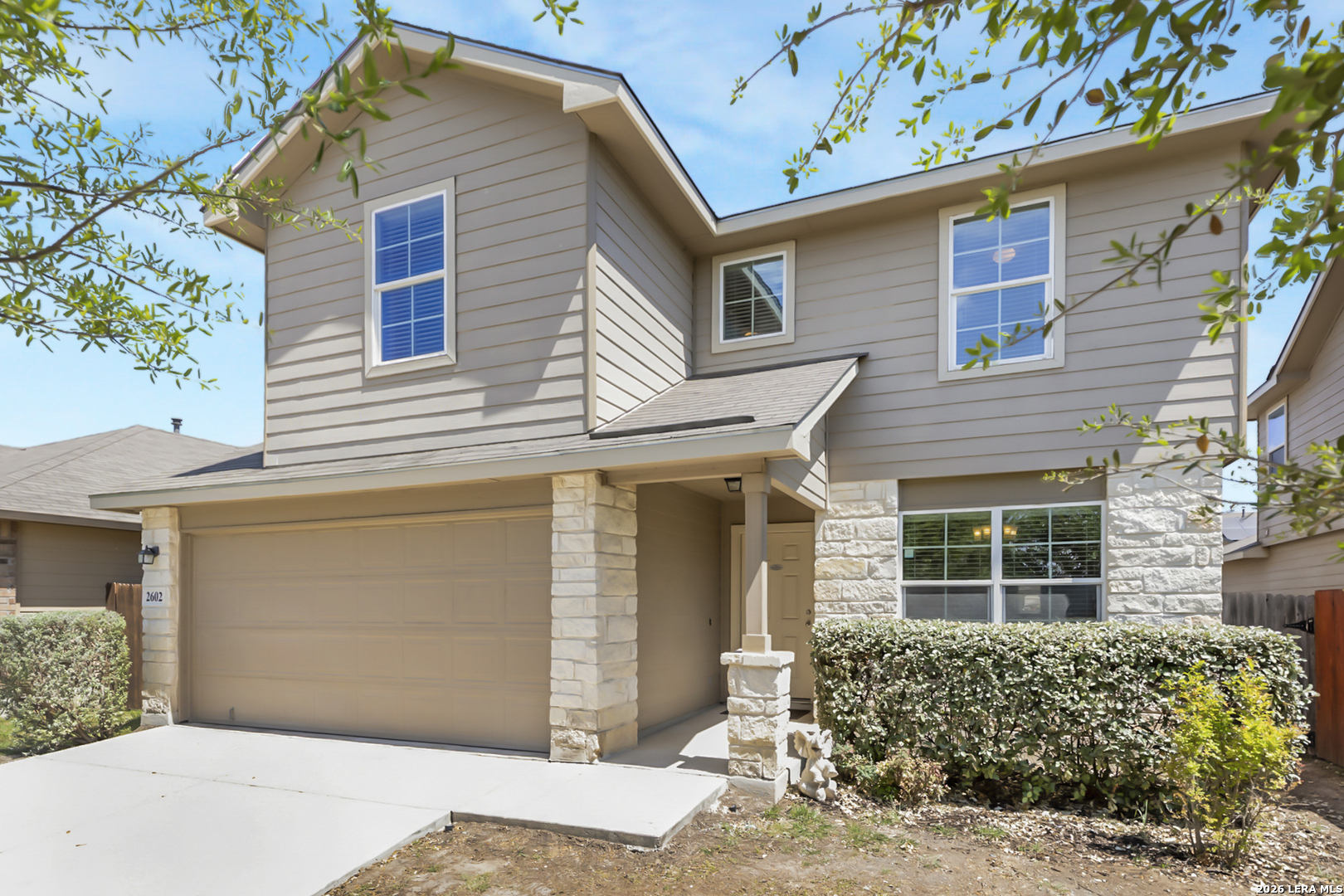 Welcome to 2602 Indian Forest, a spacious and well-designed two-story home offering 5 bedrooms, 2.5 baths, and 2,539 square feet of comfortable living. The main level features an inviting entry that opens into a seamless dining, kitchen, and living space, creating a functional layout ideal for both everyday living and entertaining. The oversized kitchen flows effortlessly into the living room, while the private primary suite downstairs offers a relaxing retreat with a separate tub, shower, and a large walk-in closet. Upstairs, you'll find a versatile loft perfect for a game room, office, or second living area, along with four generously sized bedrooms, most with walk-in closets, and a full bath. Step outside to enjoy the covered patio and backyard space, ideal for gatherings or quiet evenings. Conveniently located with easy access to major highways, shopping, dining, and Randolph Air Force Base, this home offers the perfect combination of space, layout, and location.