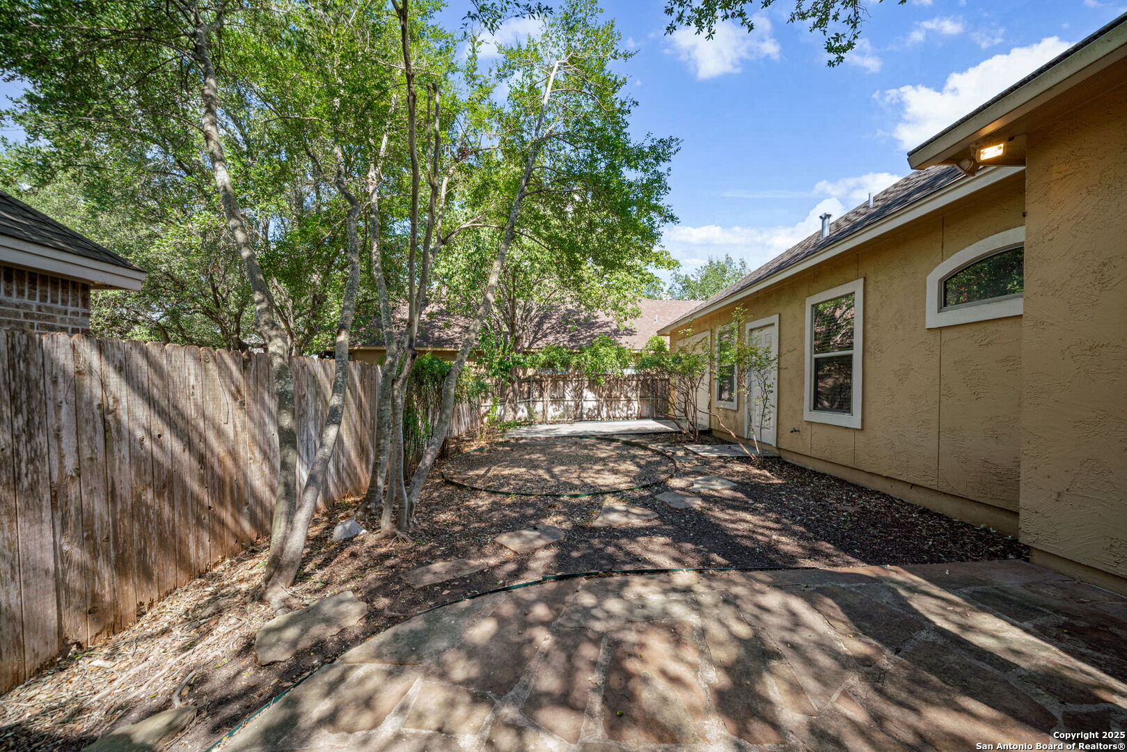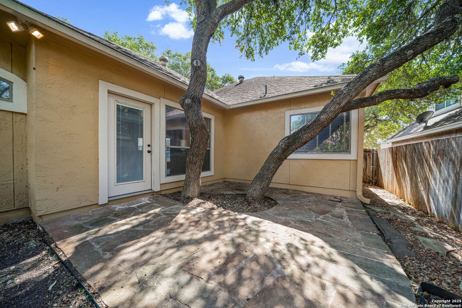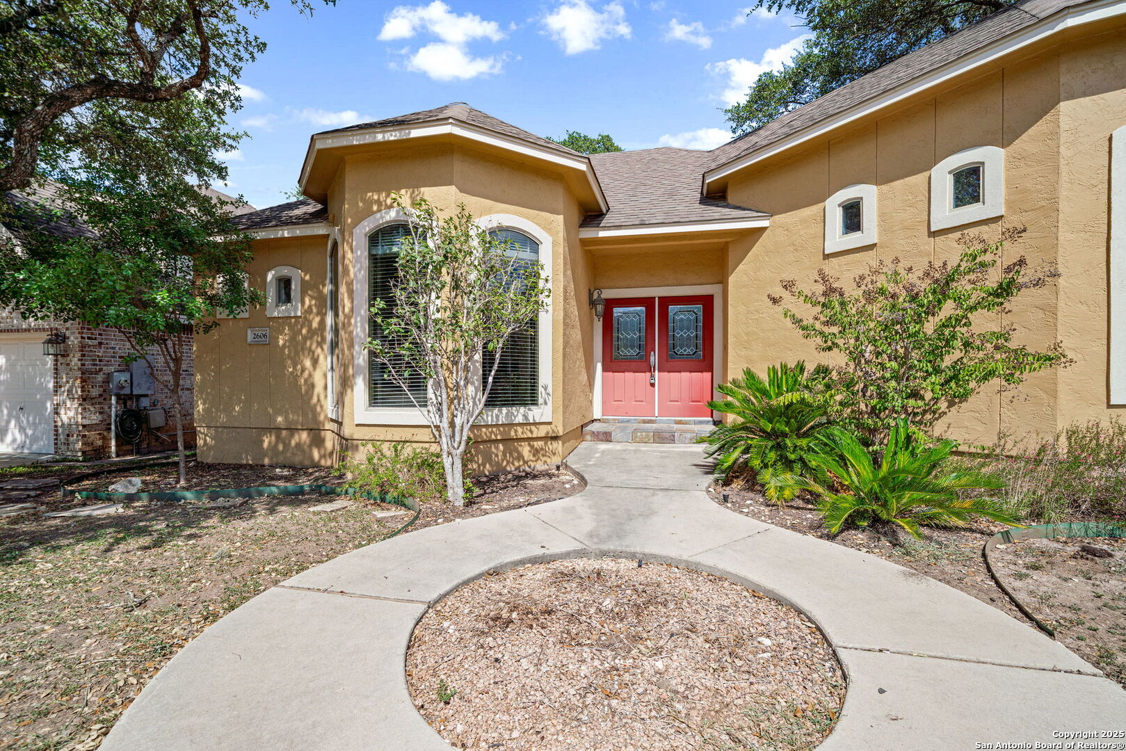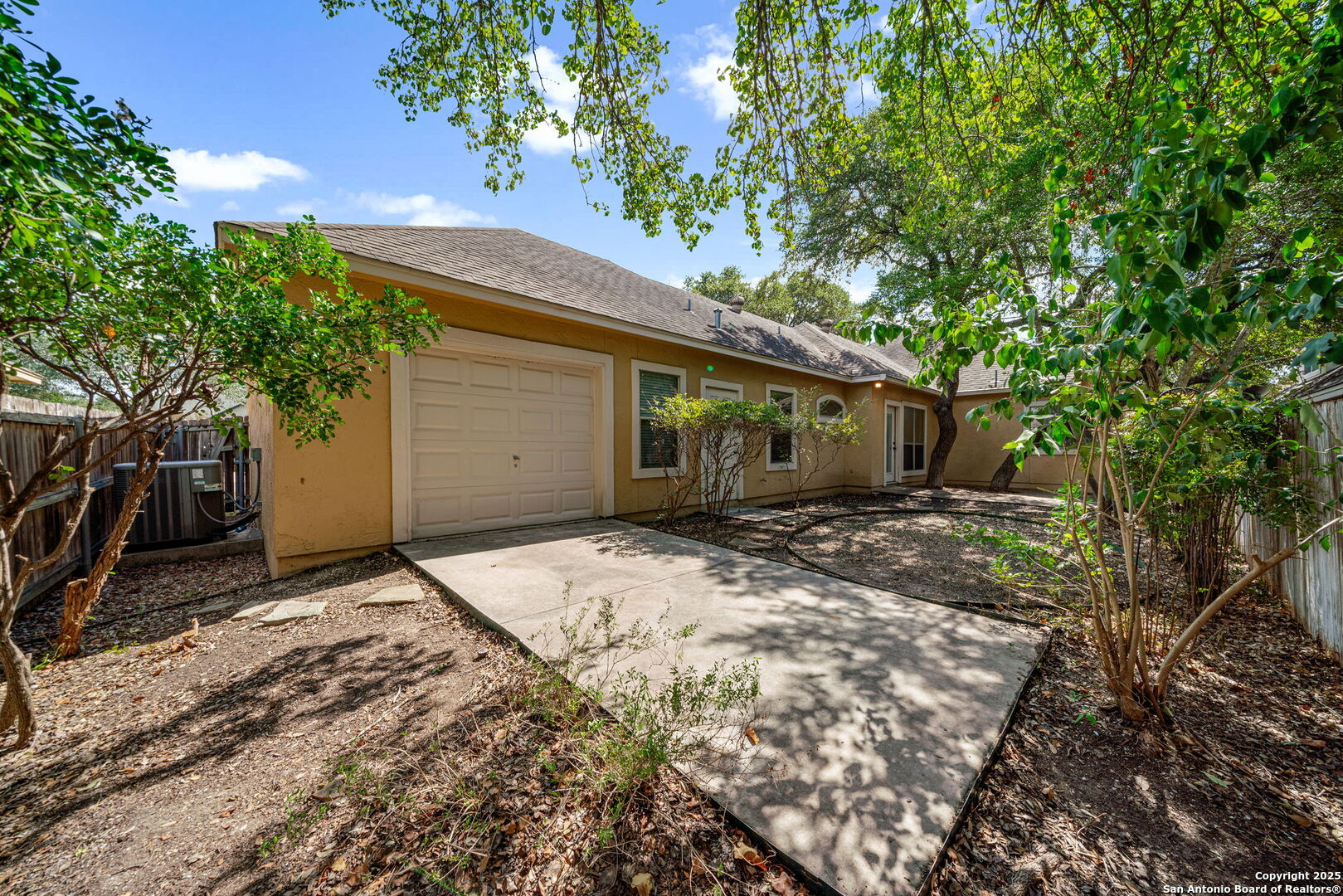 Located in the beautiful gated community of Champions Village, this 1-story home offers exceptional curb appeal with mature trees and a welcoming front patio. Inside, you'll find an open floor plan designed for both comfort and entertaining. The home features 3 spacious bedrooms, all with rich wood flooring, and 3 full bathrooms. The oversized primary suite is a true retreat, complete with a large bathroom and walk-in closet. Step outside to enjoy a private, shaded backyard with a back patio-perfect for relaxing evenings or weekend gatherings. A side-entry garage with backyard access adds convenience and functionality. Combining charm, privacy, and location, this home is an ideal opportunity to enjoy the New Braunfels lifestyle in a highly desirable neighborhood.
