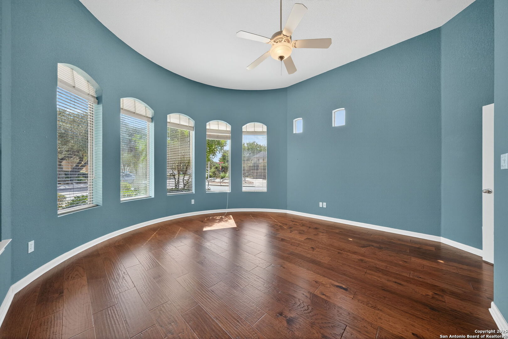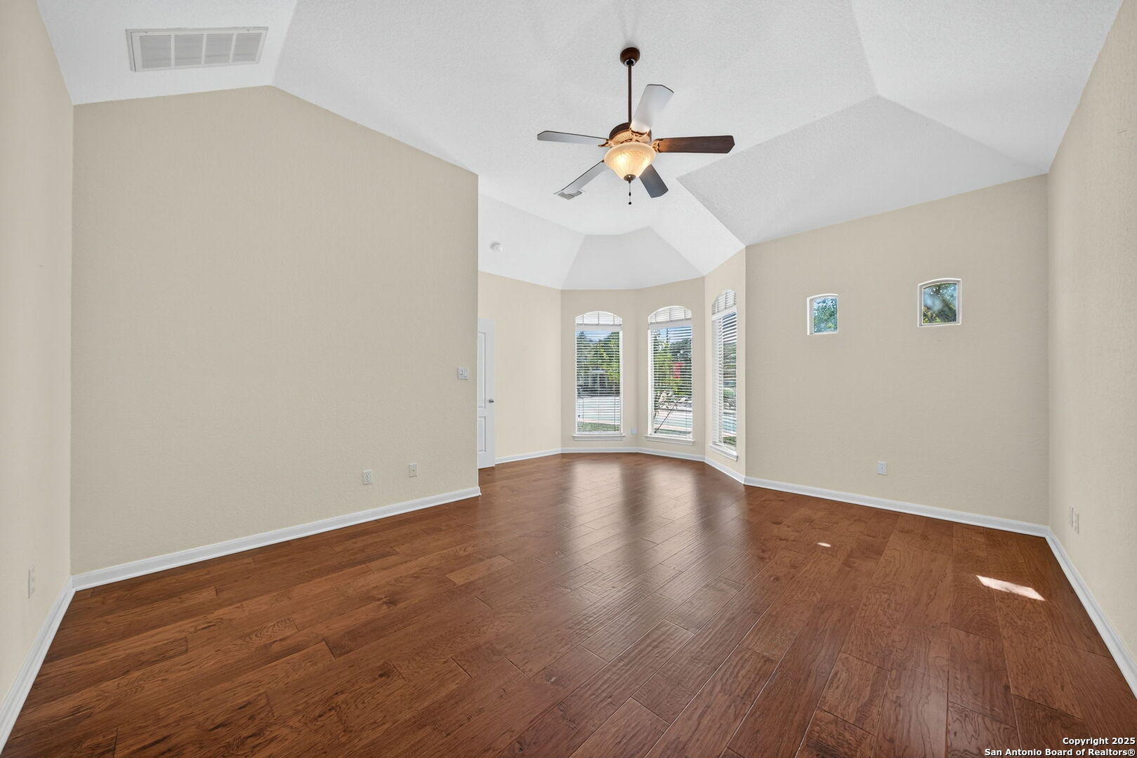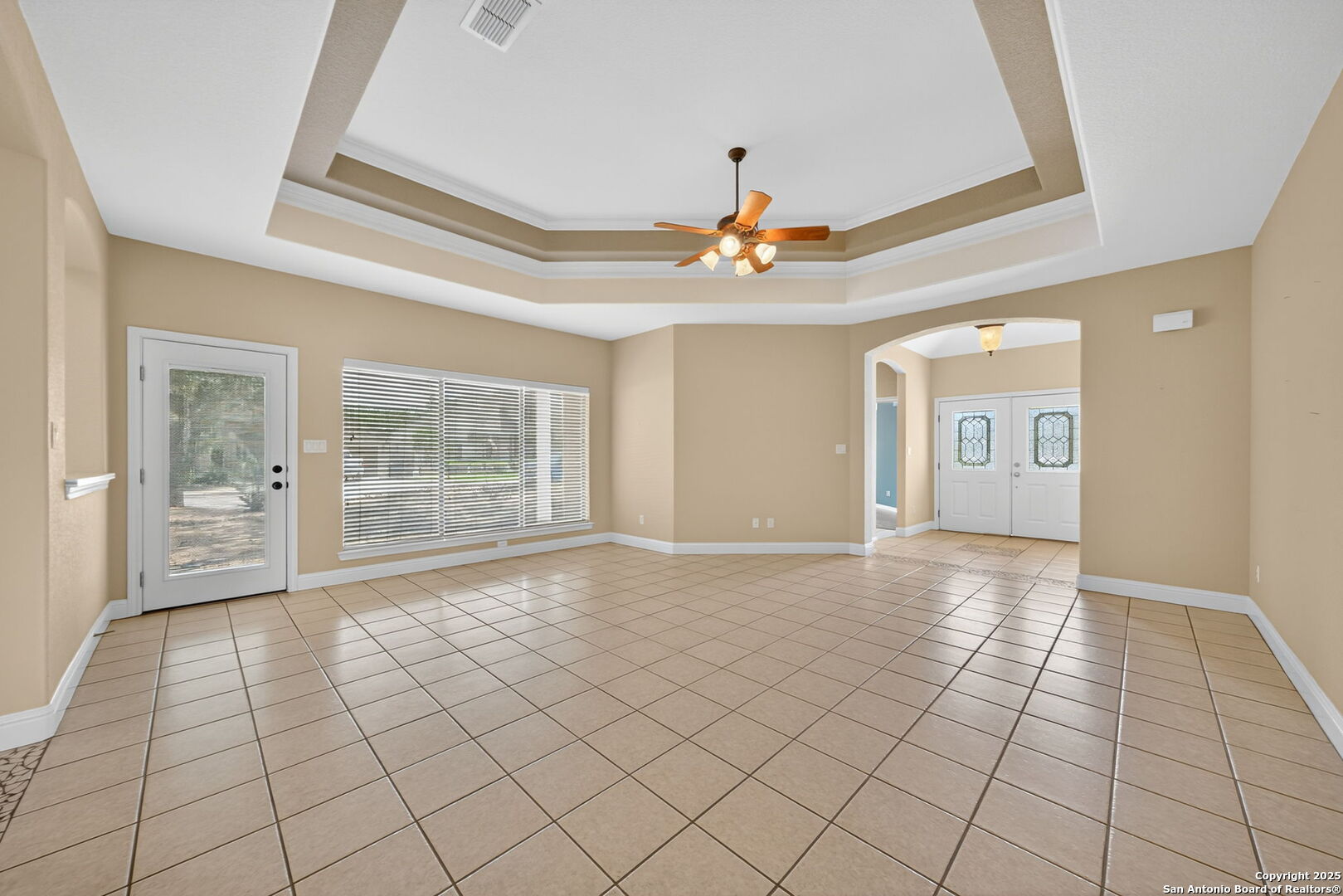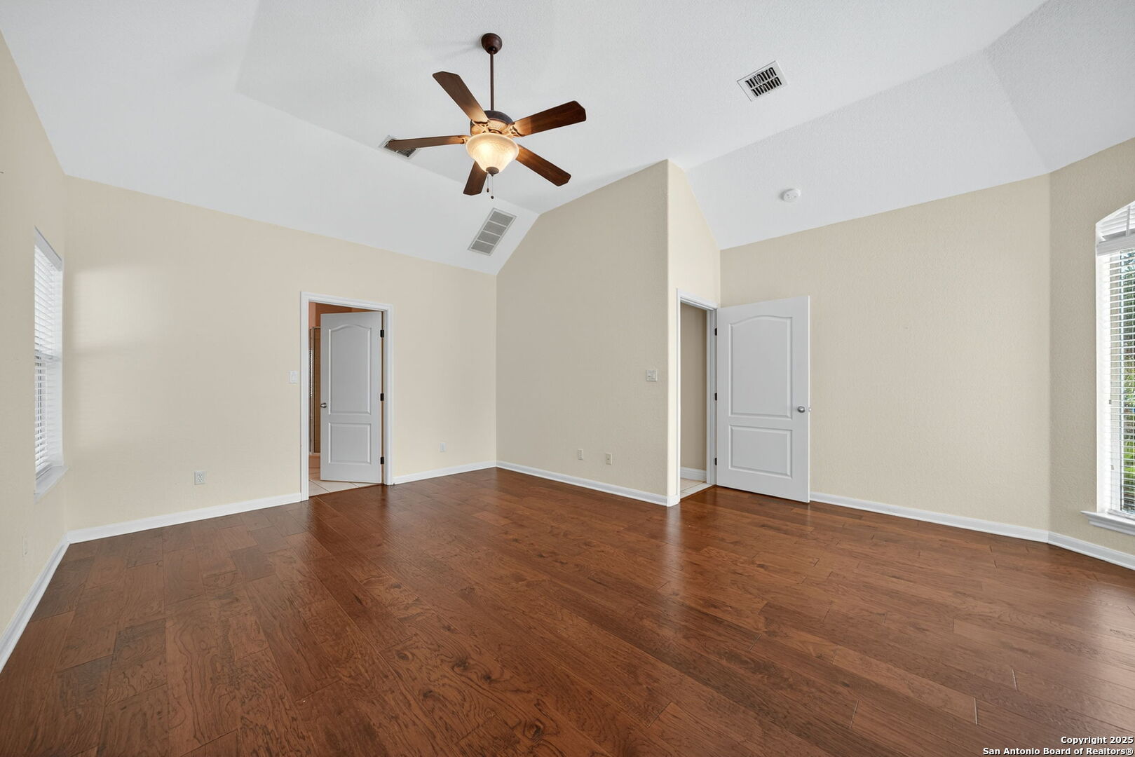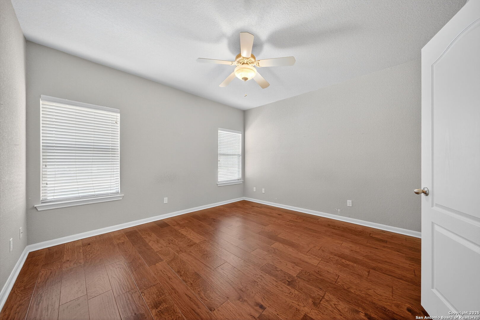 Located in the beautiful gated community of Champions Village, this 1-story home offers exceptional curb appeal with mature trees and a welcoming front patio. Inside, you'll find an open floor plan designed for both comfort and entertaining. The home features 3 spacious bedrooms, all with rich wood flooring, and 3 full bathrooms. The oversized primary suite is a true retreat, complete with a large bathroom and walk-in closet. Step outside to enjoy a private, shaded backyard with a back patio-perfect for relaxing evenings or weekend gatherings. A side-entry garage with backyard access adds convenience and functionality. Combining charm, privacy, and location, this home is an ideal opportunity to enjoy the New Braunfels lifestyle in a highly desirable neighborhood.
