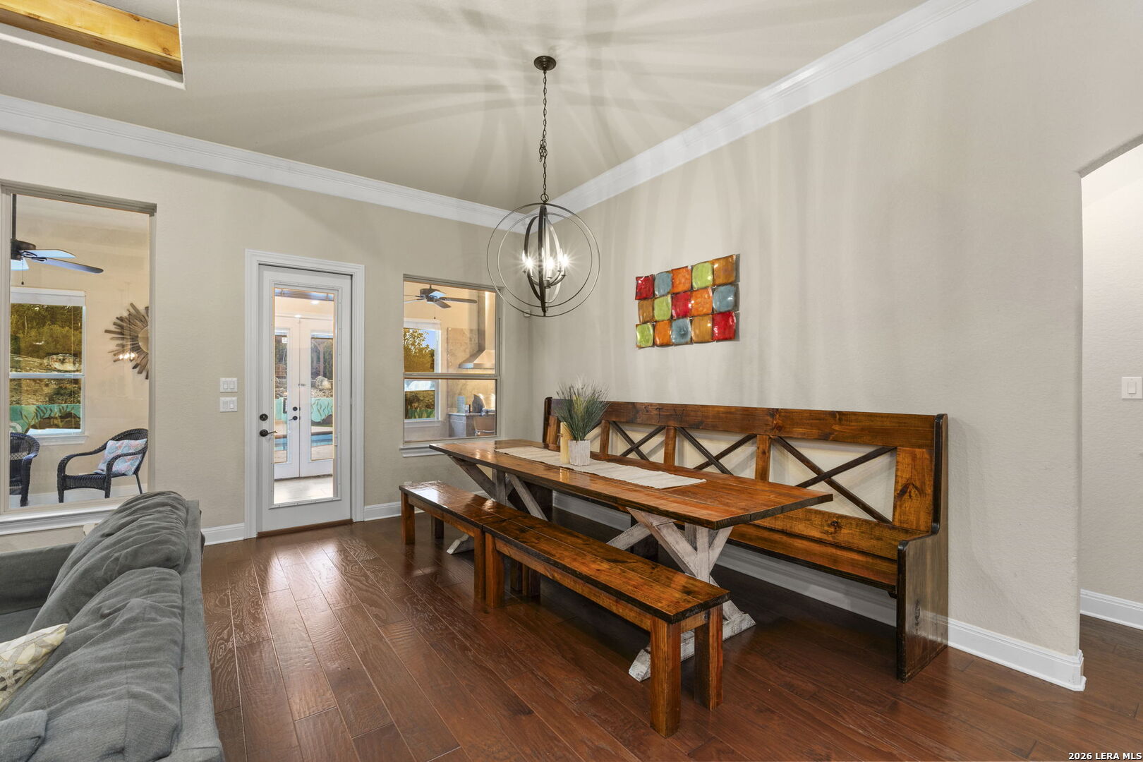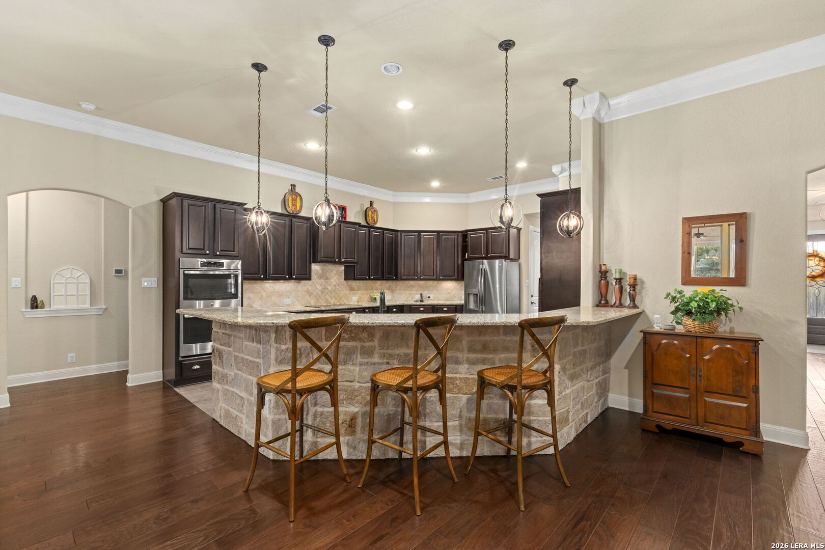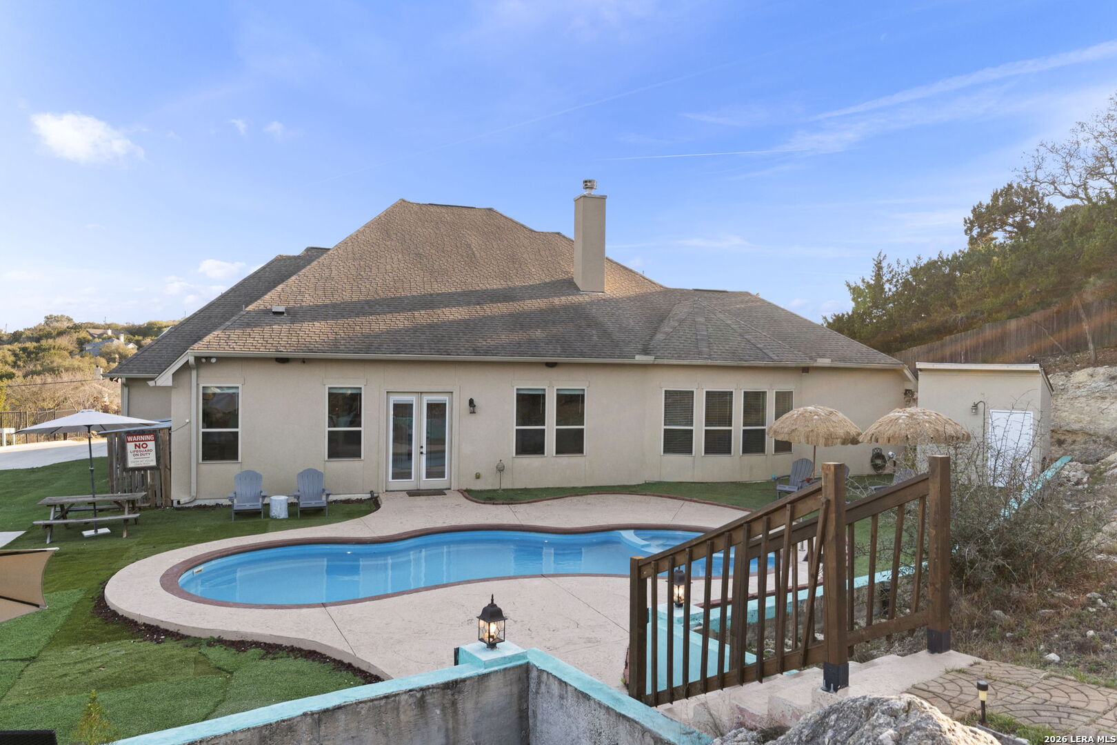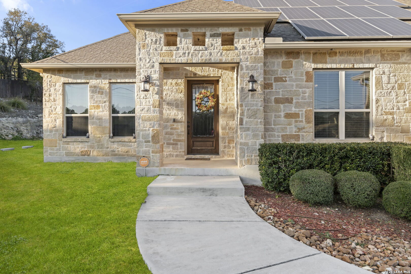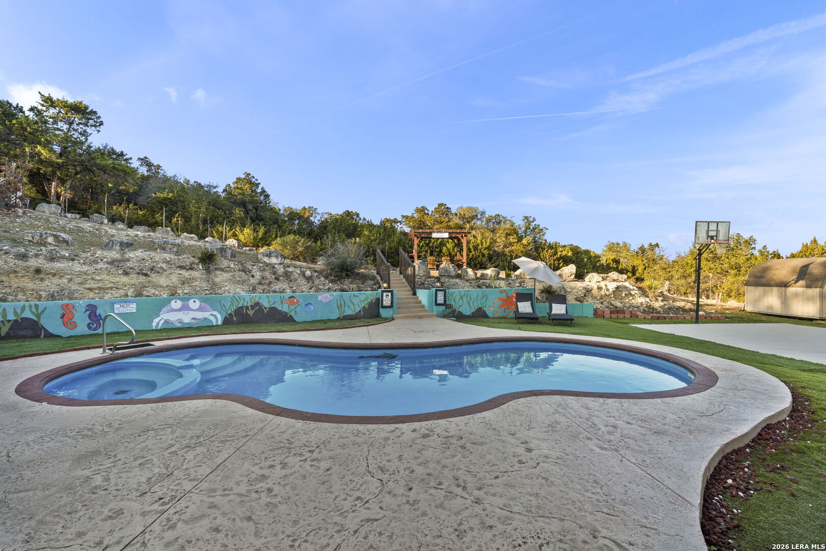 Behind private gates in the community of Scenic Hills Estates, this exceptional one-story Hill Country estate offers a rare blend of luxury and tranquility. Set on .77 acres and backing to a protected 600 acre greenbelt, the 3,789-square-foot residence delivers sweeping views, unmatched privacy, and the feeling of your own secluded retreat. Thoughtfully designed for elevated everyday living, the home features 4 bedrooms, 4.5 baths, a private study, media room, formal dining, and a versatile flex space with its own kitchen and bar. The open-concept chef's kitchen anchors the home, seamlessly connecting gathering spaces for effortless entertaining. Outdoors, a true resort lifestyle awaits - heated saltwater pool, spa, gazebo, sport court (convertible to pickleball), and a dedicated pool bath create the ultimate setting for sunset evenings and weekend celebrations. Private. Peaceful. Distinctly Hill Country luxury.