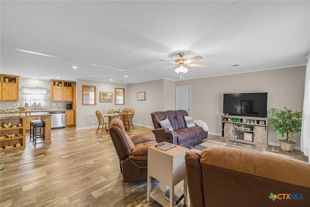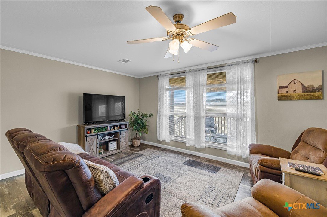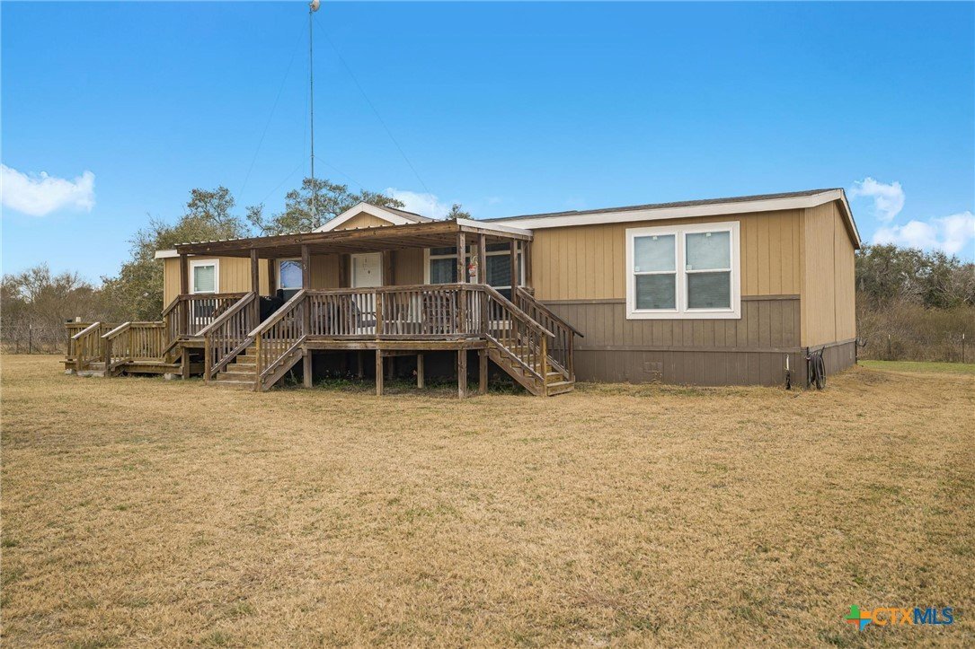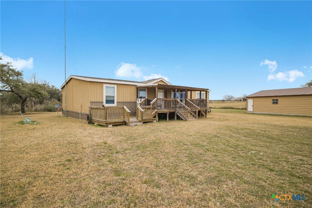 Peaceful Country Living on 1.295 Acres in Meyersville, Texas Welcome to this beautifully maintained 2019 Titan Manufactured double-wide home situated on 1.295 acres in the quiet countryside of Meyersville in DeWitt County. This property offers space, privacy, and thoughtful improvements—perfect for those seeking a serene rural lifestyle with modern comforts. The home features 3 bedrooms, 2 full baths, plus a dedicated office, providing flexibility for work-from-home or guest space. A large laundry room offers plenty of space for additional freezer or a second refrigerator, adding convenience and extra storage. The kitchen is well designed with a walk-in pantry, dishwasher, built-in microwave, and electric range—ideal for both everyday living and entertaining. A large covered front porch invites you to relax and enjoy the peaceful surroundings, with the backyard bordered by larger acreage that creates a truly tranquil, wide-open view. Additional highlights include a Hague WaterMax owned water softener and the pride of single ownership—the home has been lovingly cared for and well maintained. Outside, you’ll find a 30’ x 30’ shop with electricity, perfect for projects, storage, or hobbies. The water well, drilled in 2019 by Friedel Drilling, is protected by a pump house, and the aerobic septic system, installed in 2019 by Lee Backhoe, adds to the property’s reliability. A new survey completed January 16, 2026 by Mustang Engineering offers added peace of mind for buyers. Originally purchased from Titan Manufactured and later moved to this property, the home is thoughtfully placed to maximize space and usability, with room to garden, expand, or simply enjoy the quiet country atmosphere. If you’re looking for pride of ownership, open space, and peaceful views, this Meyersville property is one you won’t want to miss.