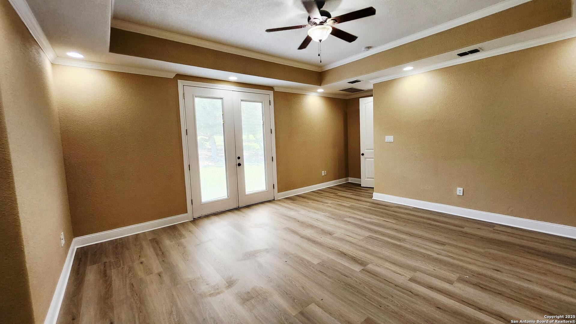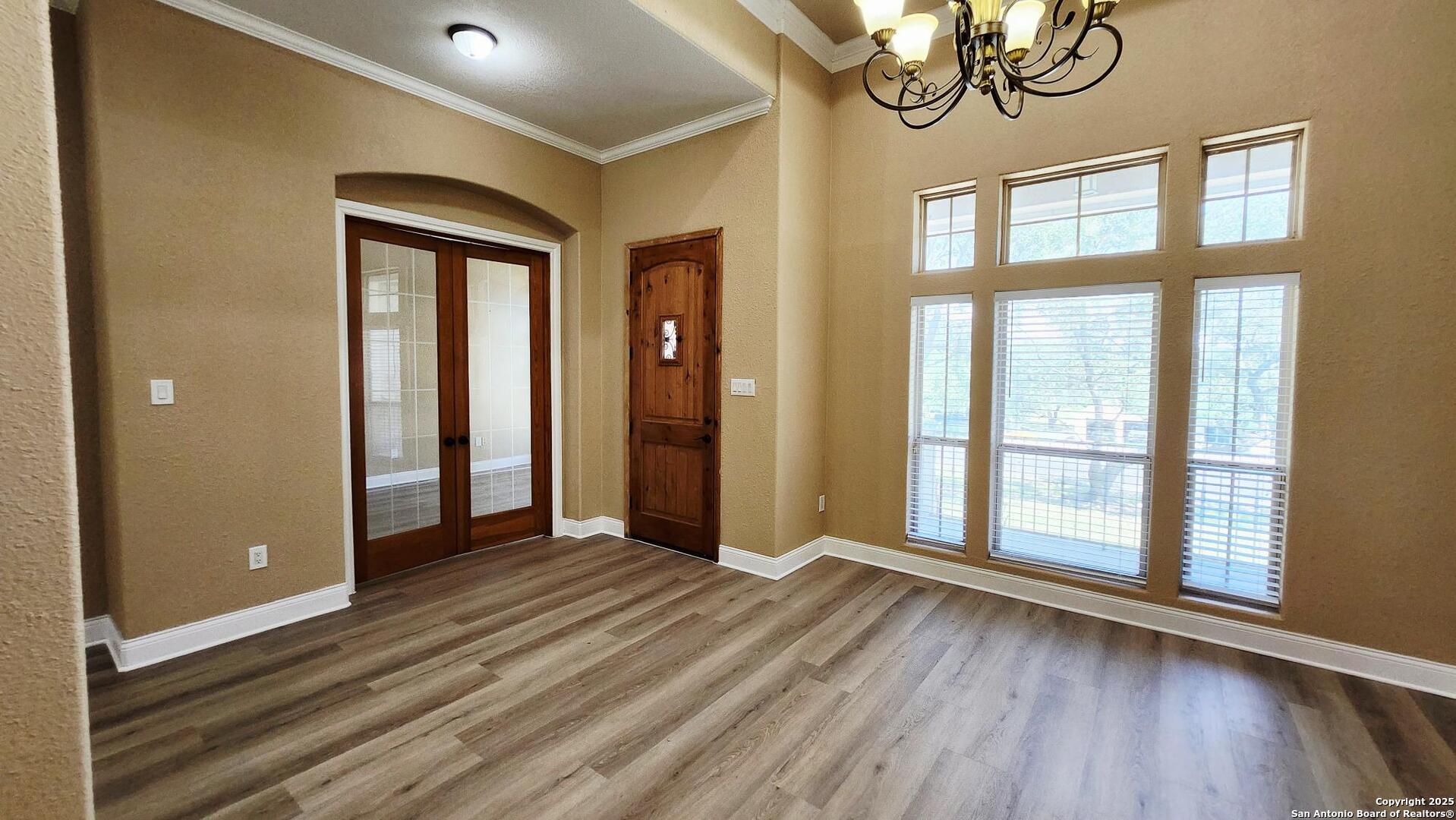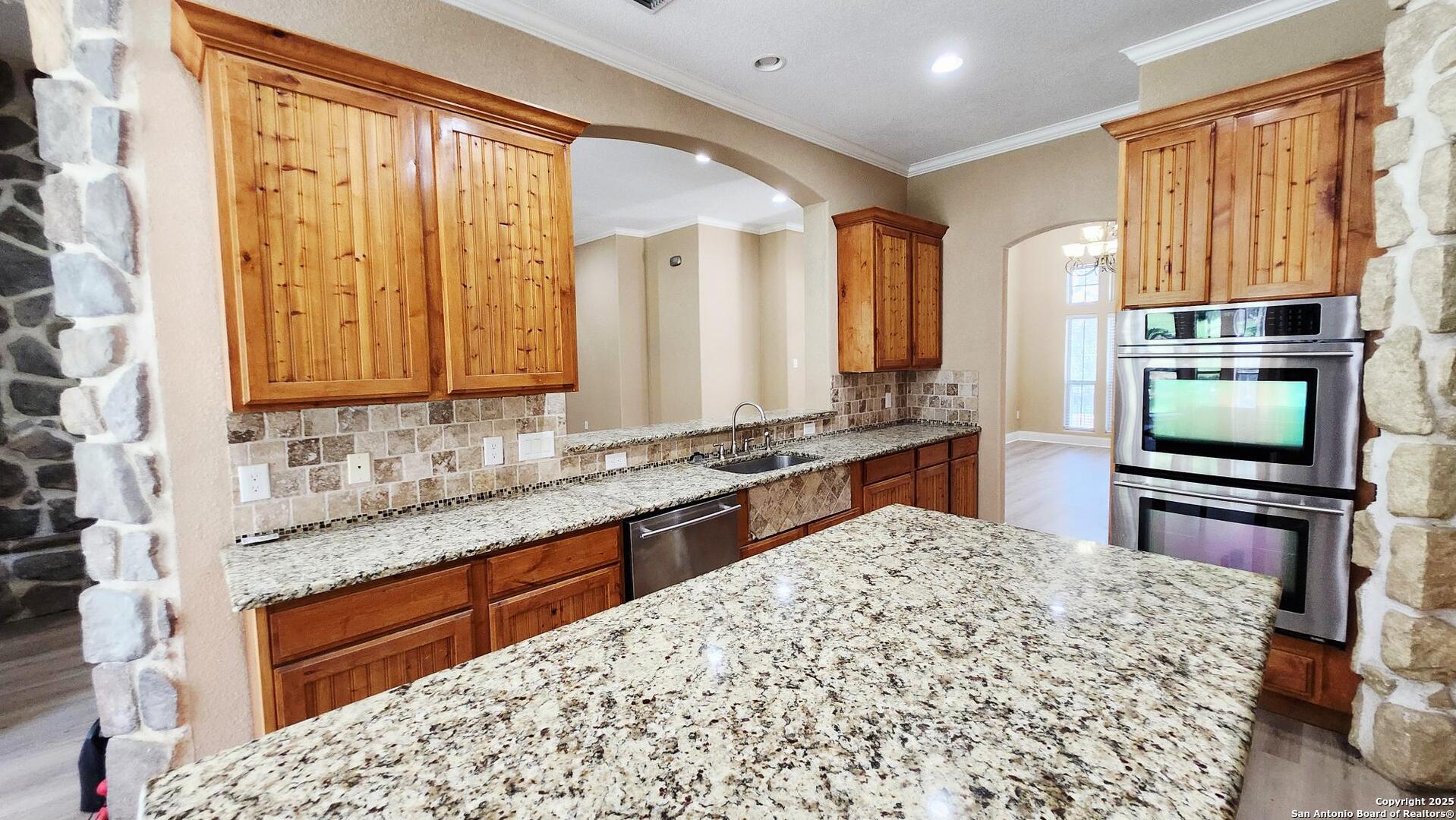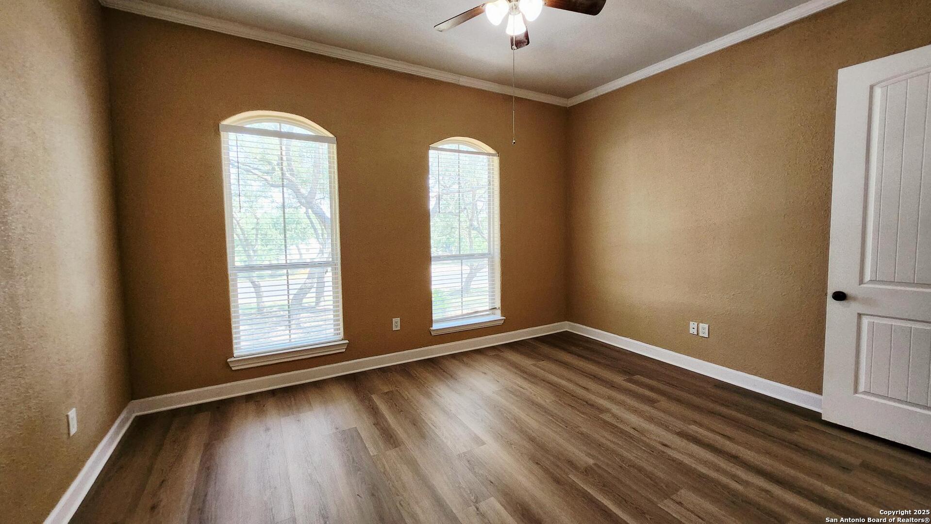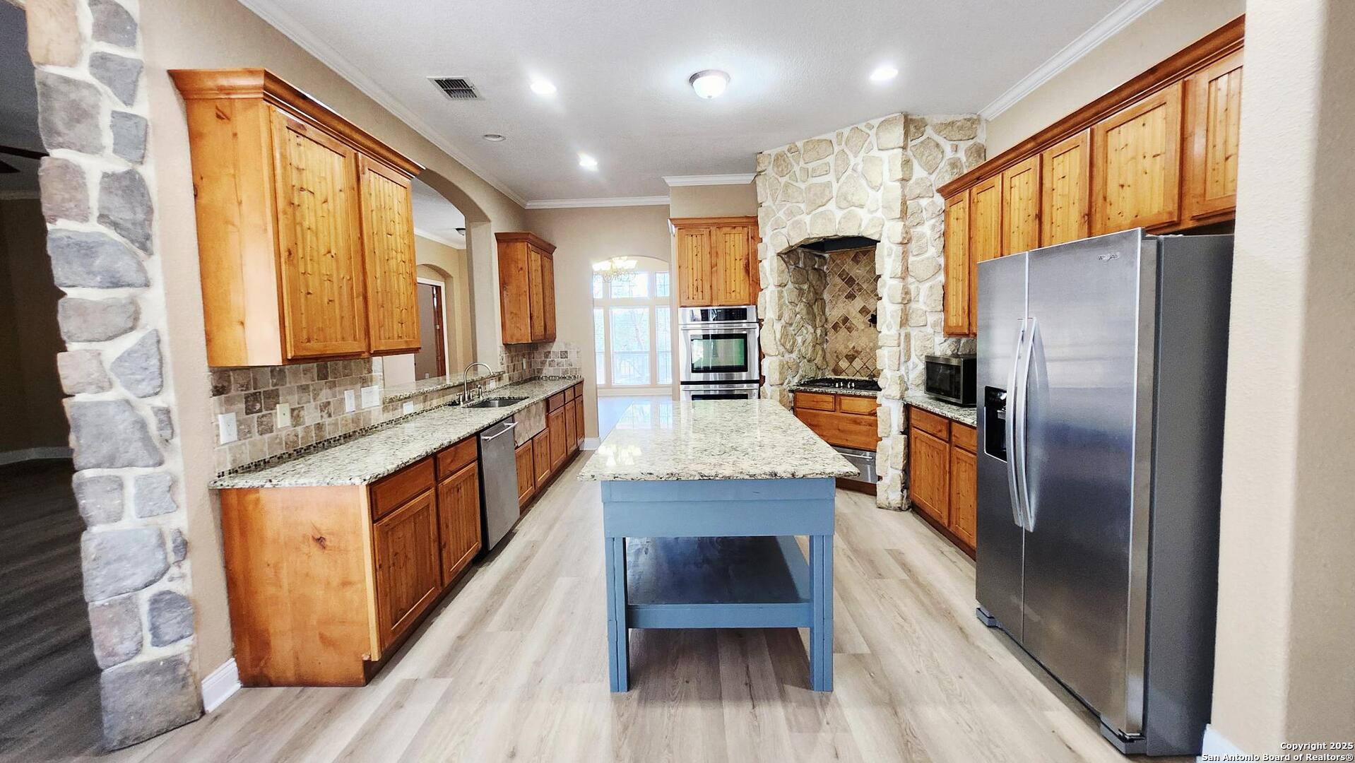 Stunning Timberwood Park Home, zoned for Piper High School, Pipler Ranch Middle School and Timberwood Elementary. Welcome to this beautiful four-bedroom, four-bath home, nestled in the picturesque Timberwood Slumber Park subdivision. This two-story gem spans 3,954 square feet and features elegant wood vinyl floors. The master bedroom is a true retreat, boasting coffered ceilings, a luxurious stone shower, dual sinks, and a spacious walk-in closet. The kitchen is designed for convenience and style, featuring granite countertops, wood cabinetry, a built-in oven and microwave, a movable island, and a water softener. The home also includes a versatile office that can serve as a fourth bedroom, complete with French glass doors for added elegance and privacy. Entertainment and comfort are seamlessly blended, with a second-floor game room or movie room that includes a full bathroom. The property also features a rock fireplace both inside and on the covered patio, along with a large backyard surrounded by mature trees, perfect for family gatherings. Additional highlights include three separate air conditioning units, two gas water heaters, and a side-entry three-car garage. The property sits on a generous 0.59-acre lot and features a welcoming front porch. The Timberwood Park neighborhood offers an abundance of amenities, including jogging trails, a playground, barbecue and picnic areas, a golf course, tennis courts, sports courts, basketball courts, a volleyball court, a dog park, and a beautiful lake.