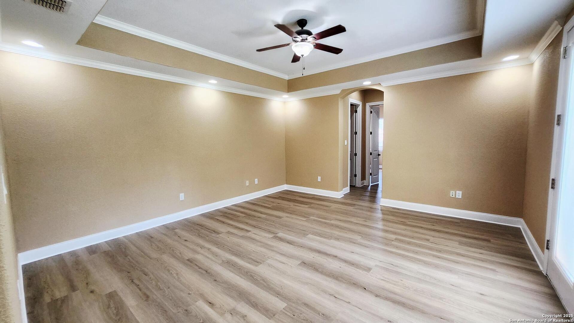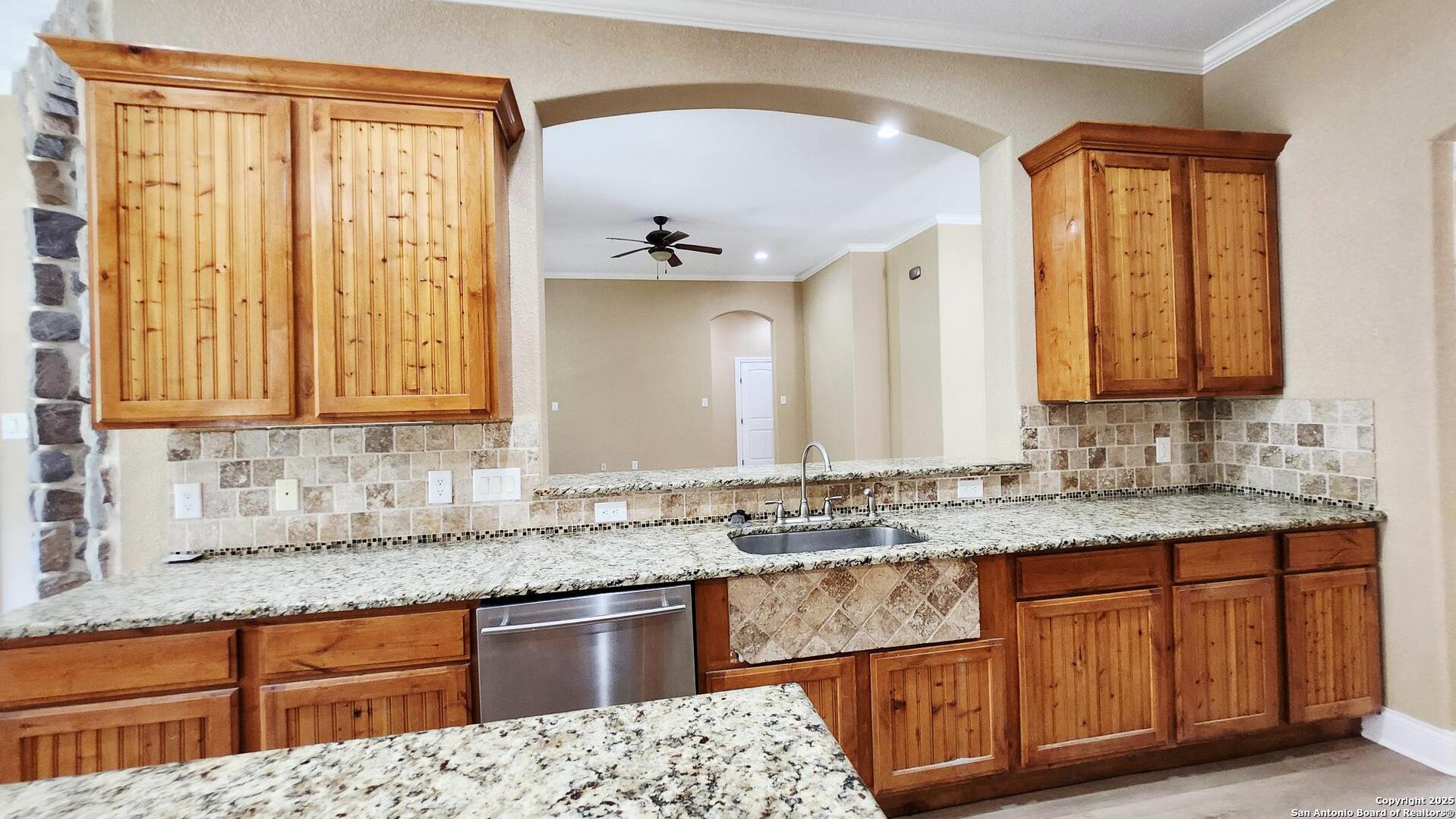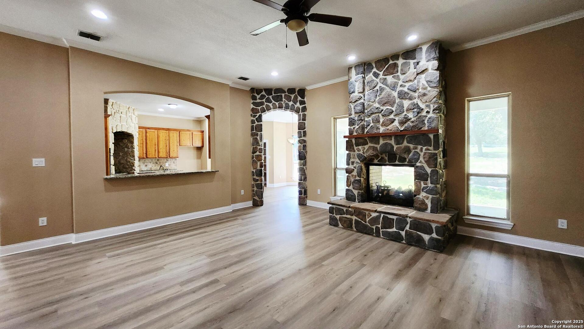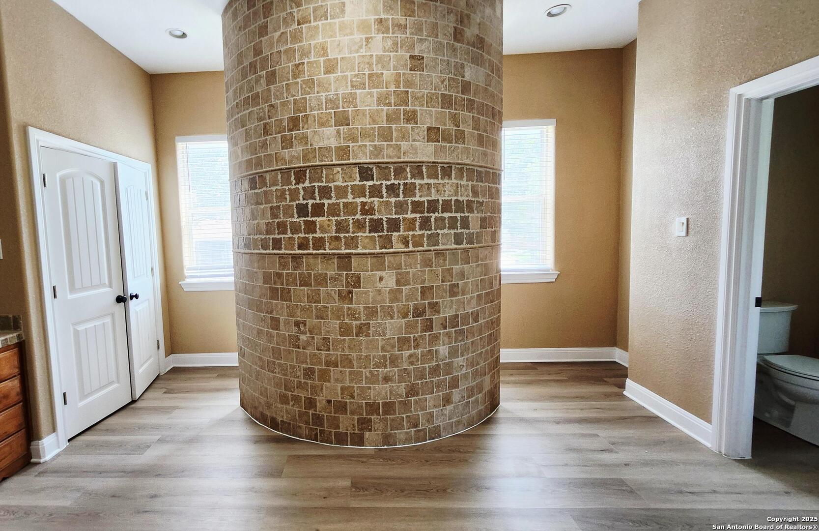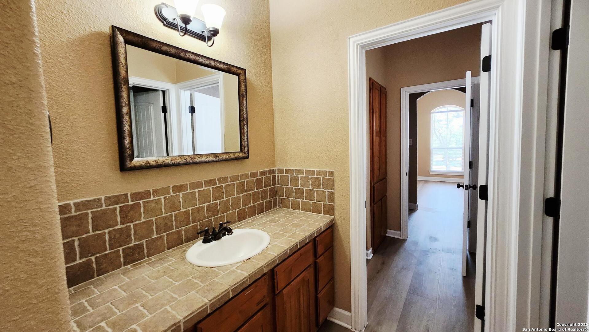 Stunning Timberwood Park Home, zoned for Piper High School, Pipler Ranch Middle School and Timberwood Elementary. Welcome to this beautiful four-bedroom, four-bath home, nestled in the picturesque Timberwood Slumber Park subdivision. This two-story gem spans 3,954 square feet and features elegant wood vinyl floors. The master bedroom is a true retreat, boasting coffered ceilings, a luxurious stone shower, dual sinks, and a spacious walk-in closet. The kitchen is designed for convenience and style, featuring granite countertops, wood cabinetry, a built-in oven and microwave, a movable island, and a water softener. The home also includes a versatile office that can serve as a fourth bedroom, complete with French glass doors for added elegance and privacy. Entertainment and comfort are seamlessly blended, with a second-floor game room or movie room that includes a full bathroom. The property also features a rock fireplace both inside and on the covered patio, along with a large backyard surrounded by mature trees, perfect for family gatherings. Additional highlights include three separate air conditioning units, two gas water heaters, and a side-entry three-car garage. The property sits on a generous 0.59-acre lot and features a welcoming front porch. The Timberwood Park neighborhood offers an abundance of amenities, including jogging trails, a playground, barbecue and picnic areas, a golf course, tennis courts, sports courts, basketball courts, a volleyball court, a dog park, and a beautiful lake.
