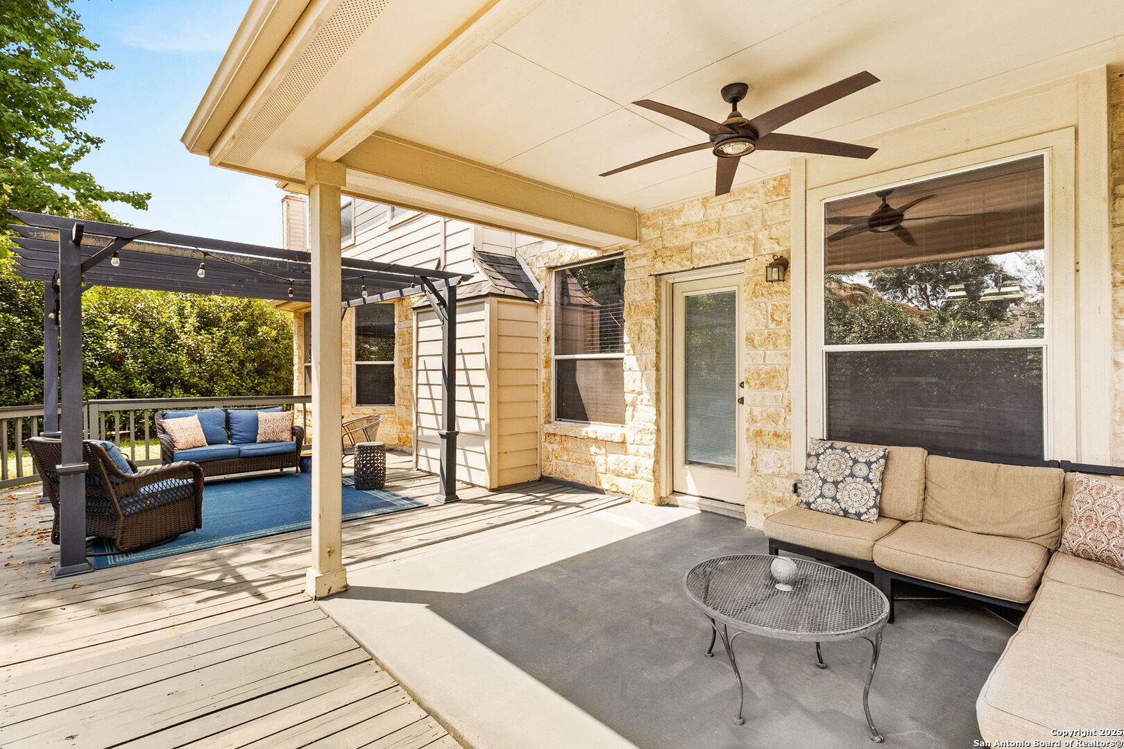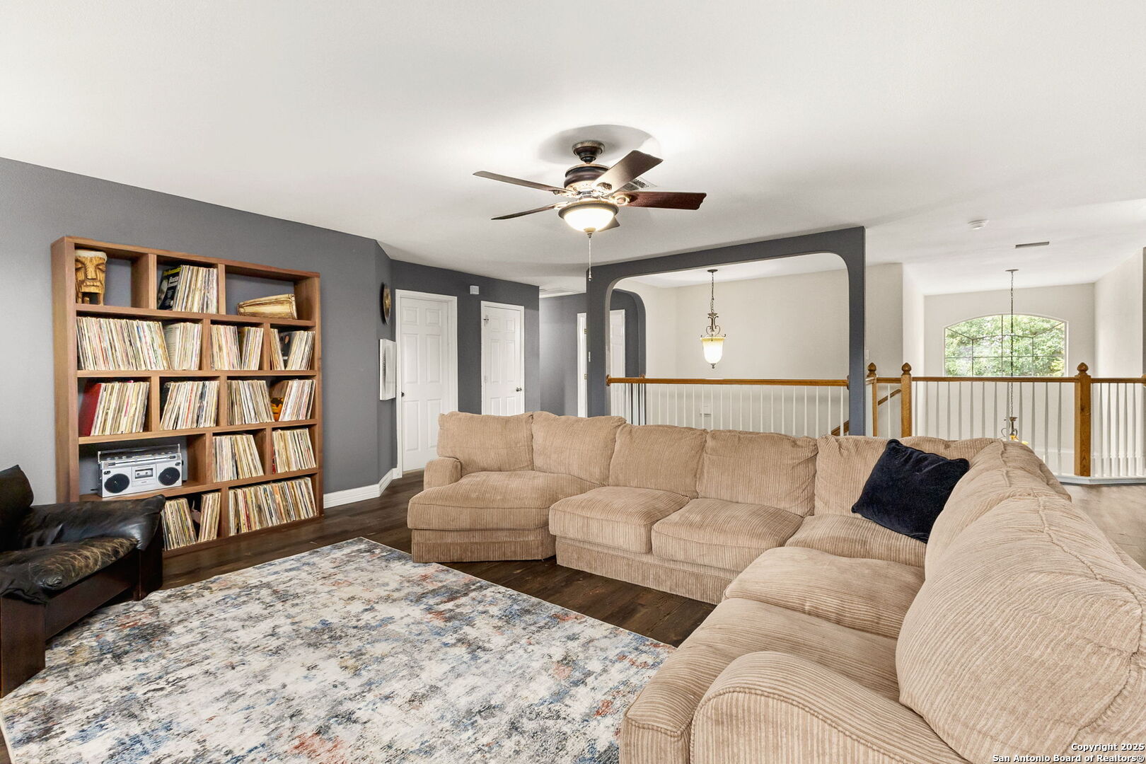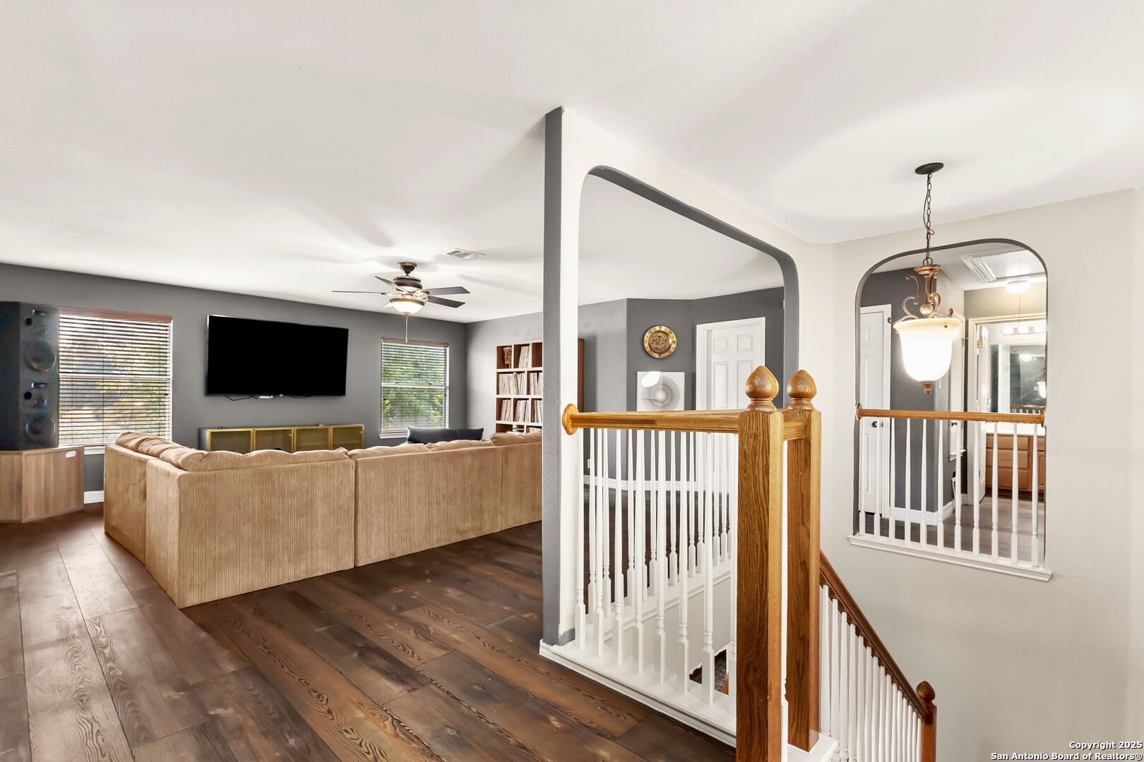 Step into 2616 Patron Vil and discover a layout designed for everyday living. A spacious kitchen connects easily to the main living areas, creating a natural hub for meals and conversation. The primary suite is located downstairs, while all secondary bedrooms and a versatile second living area or gameroom are upstairs. Out back, a wide deck overlooks a lawn surrounded by mature landscaping-offering room to gather, play, or simply unwind in privacy.
