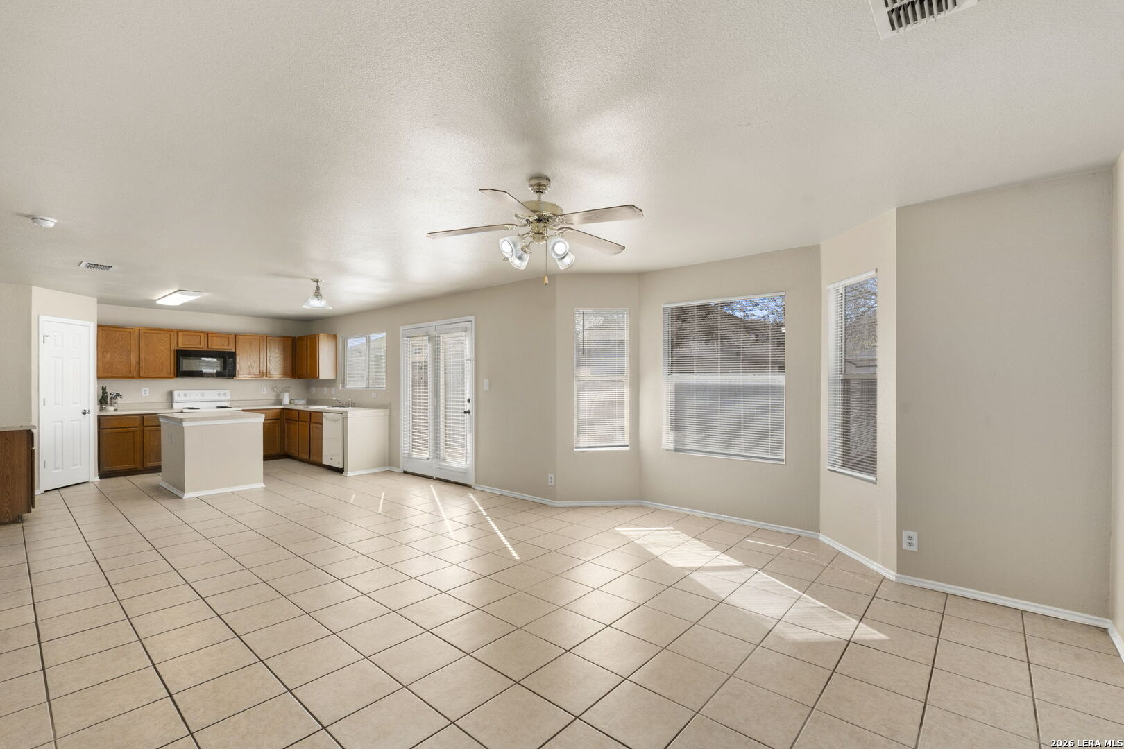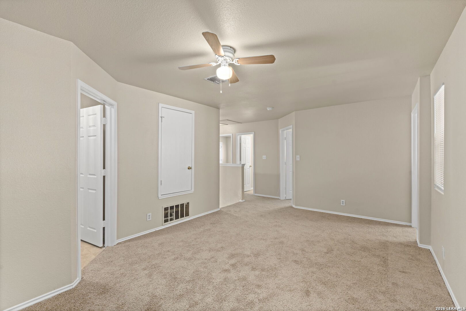 If Space is what you need, this 5 bedroom home is the one! Located minutes from Lackland AFB, Gato Del Sol offers a great floorplan with plenty of room for living, relaxing and entertaining. Large living room and Dining Room combo offer plenty of flexibility for furniture. Kitchen with oak cabinets, Dishwasher, microwave and a window over sink for natural ight and fresh air. Island perfect for those who love to cook and room for a breakfast table. 2nd Living room with ceiling fan off the kitchen with tile flooring throughout bottom floor. A full bedroom is downstairs with a half bathroom Upstairs you have a loft perfect for a reading nook, game room or crafts. 4 bedrooms are upstairs and a full bathroom. Primary Suite has a a great flex area that opens to the bedroom perfect for a study, exercise area or seating in your own primary bedroom. Backyard offers plenty of playing area and a patio slab perfect for BBQ's. This home is ready for move in. Ceiling fans in most rooms and laundry room upstairs.