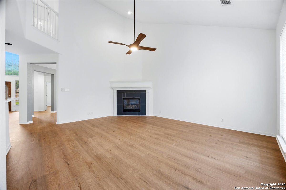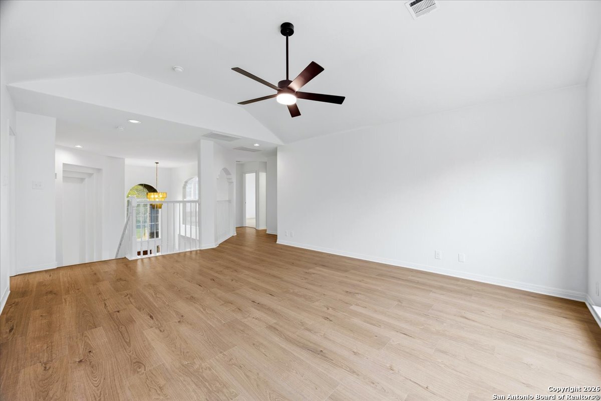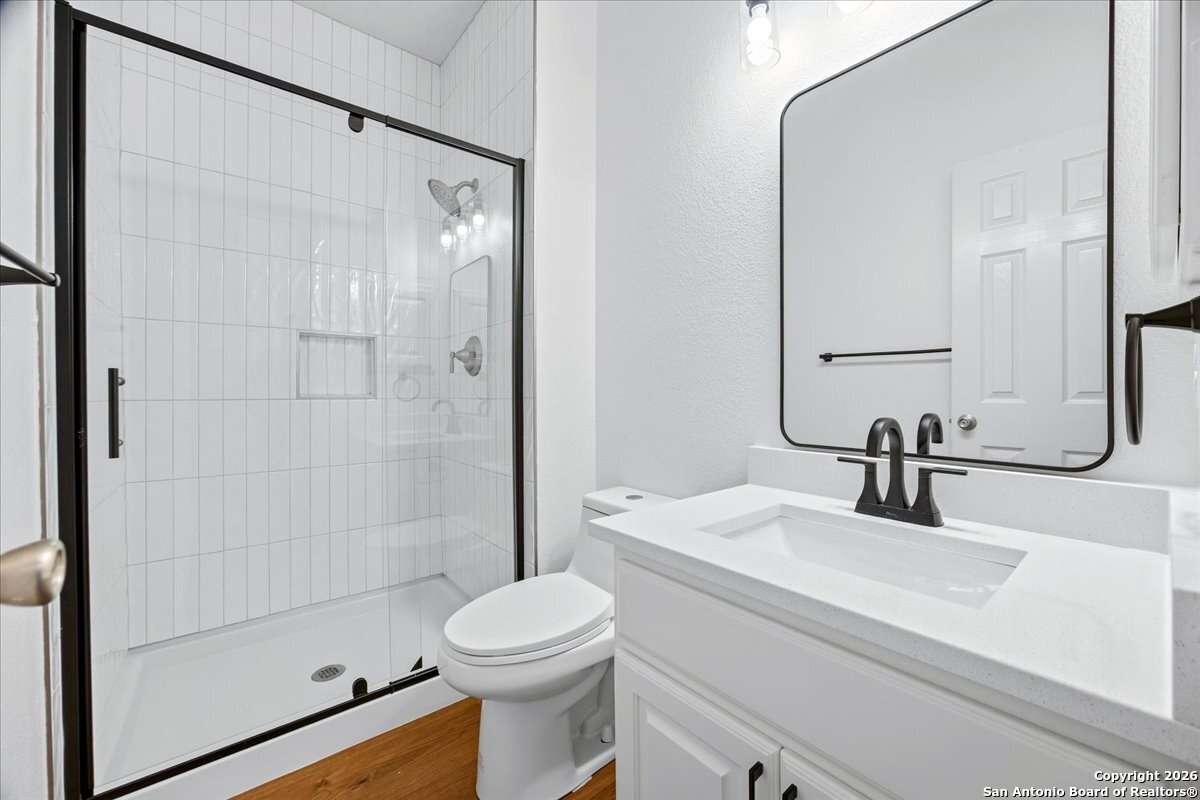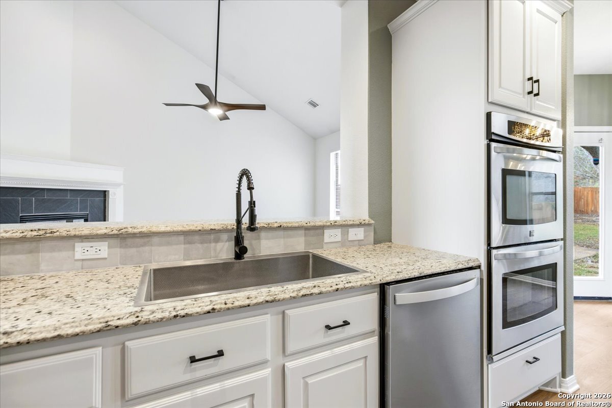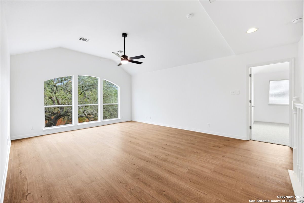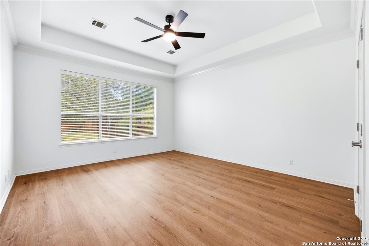 Looking for space, privacy, and zero "to-do" lists? This is the one. This 5-bedroom, 4-bath beauty is fresh off a makeover and sits right against a peaceful greenbelt-so no backyard neighbors, just mature oaks and vibes. Tucked behind the prestigious guarded gates of The Heights at Stone Oak, this community offers some of the best amenities in town (pool, tennis, soccer fields-you name it!). As you step inside, your eyes are immediately drawn upward by the soaring high ceilings that create an atmosphere of grand, airy freedom. The entire home has been reborn with a meticulous renovation: fresh paint and wide-plank luxury vinyl wood flooring flow seamlessly through the main living areas, while plush, brand-new carpet provides a soft touch in the bedrooms. The heart of the home is a culinary sanctuary. Imagine preparing meals on gleaming granite countertops using your stainless steel double ovens and gas cooktop. The layout is a winner: You've got the primary suite plus a second bedroom downstairs (perfect for a WFH office). Plus, the big stuff is already handled-the roof and HVAC are both under 5 years old! Grab a drink, head out to the trees, and relax.