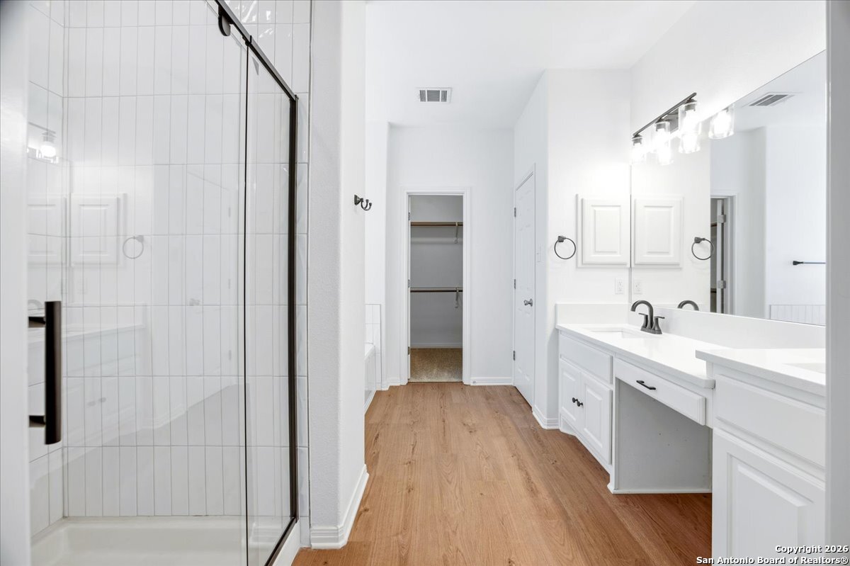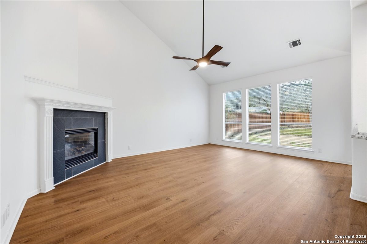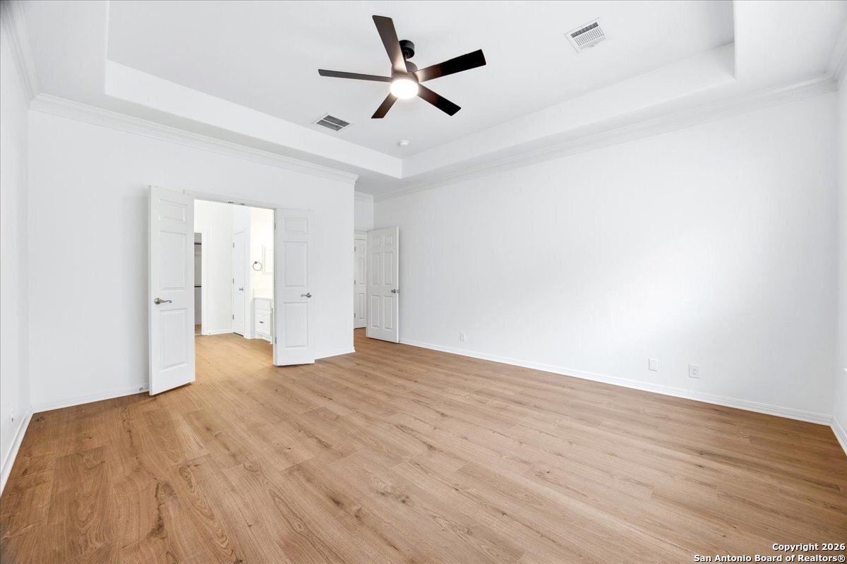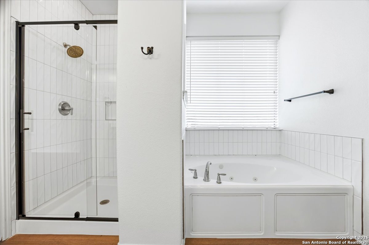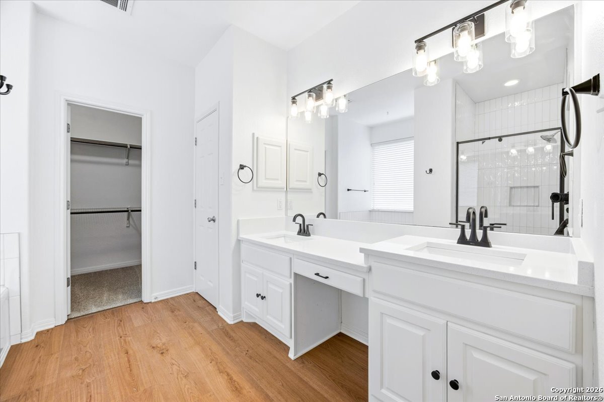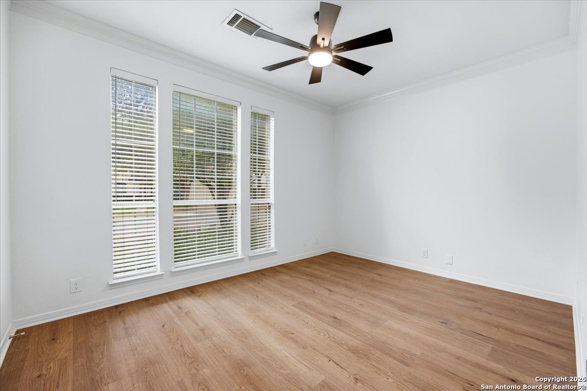 Looking for space, privacy, and zero "to-do" lists? This is the one. This 5-bedroom, 4-bath beauty is fresh off a makeover and sits right against a peaceful greenbelt-so no backyard neighbors, just mature oaks and vibes. Tucked behind the prestigious guarded gates of The Heights at Stone Oak, this community offers some of the best amenities in town (pool, tennis, soccer fields-you name it!). As you step inside, your eyes are immediately drawn upward by the soaring high ceilings that create an atmosphere of grand, airy freedom. The entire home has been reborn with a meticulous renovation: fresh paint and wide-plank luxury vinyl wood flooring flow seamlessly through the main living areas, while plush, brand-new carpet provides a soft touch in the bedrooms. The heart of the home is a culinary sanctuary. Imagine preparing meals on gleaming granite countertops using your stainless steel double ovens and gas cooktop. The layout is a winner: You've got the primary suite plus a second bedroom downstairs (perfect for a WFH office). Plus, the big stuff is already handled-the roof and HVAC are both under 5 years old! Grab a drink, head out to the trees, and relax.