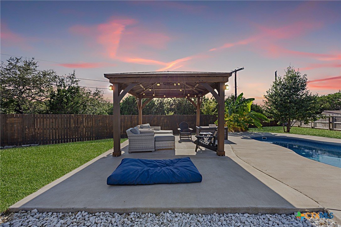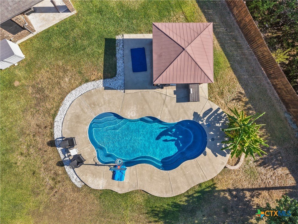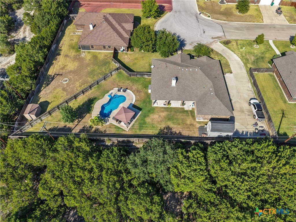 This stunning Carothers-built home sits proudly on a private half-acre corner lot with no rear neighbors and no HOA—a rare find in today’s market! Inside, you’ll find 4 spacious bedrooms, 2.5 bathrooms, two dining areas, and a dedicated office that could easily serve as a fifth bedroom or flex space. The open layout is filled with natural light and features fresh interior paint, new LVP flooring (no carpet!), and a cozy wood-burning fireplace that creates the perfect gathering space. The kitchen has been beautifully updated with quartz countertops, freshly painted cabinetry, a new dishwasher, new refrigerator, and new double ovens. Both showers have been completely retiled, with the primary bath boasting a luxurious jacuzzi soaking tub, new frameless glass shower door, double vanities, and a large walk-in closet. Step outside to your own backyard oasis complete with a large covered patio, charming pergola, and a sparkling in-ground pool surrounded by open space and peaceful privacy. The storage shed in the backyard includes electrical outlets for convenience, and the home also features a generator inlet box, allowing you to connect a generator to power the home during an outage—a thoughtful upgrade for Texas weather. Other notable updates include a new air handler, newer fiber optic internet installation, and various upgrades throughout that make this home truly move-in ready. The extended driveway offers plenty of parking, and you’re only a 10-minute drive (6 miles) to Stillhouse Lake—bring your boat, because there’s no HOA to stop you! If you’ve been searching for space, privacy, and style near the lake, 2623 Green Giant is the one to see.