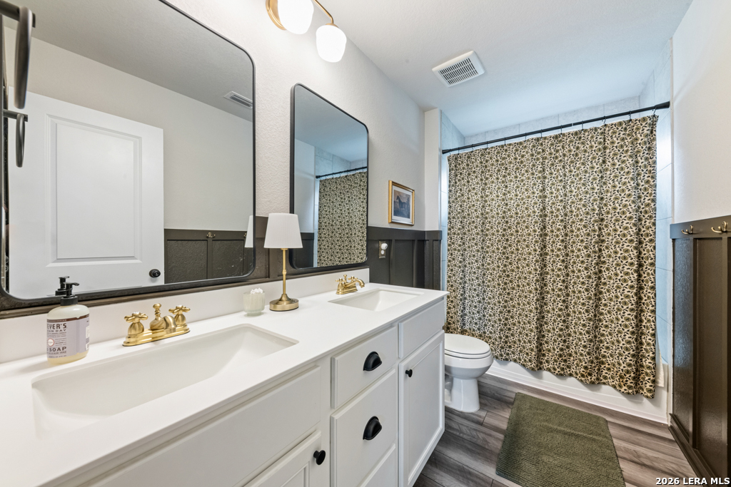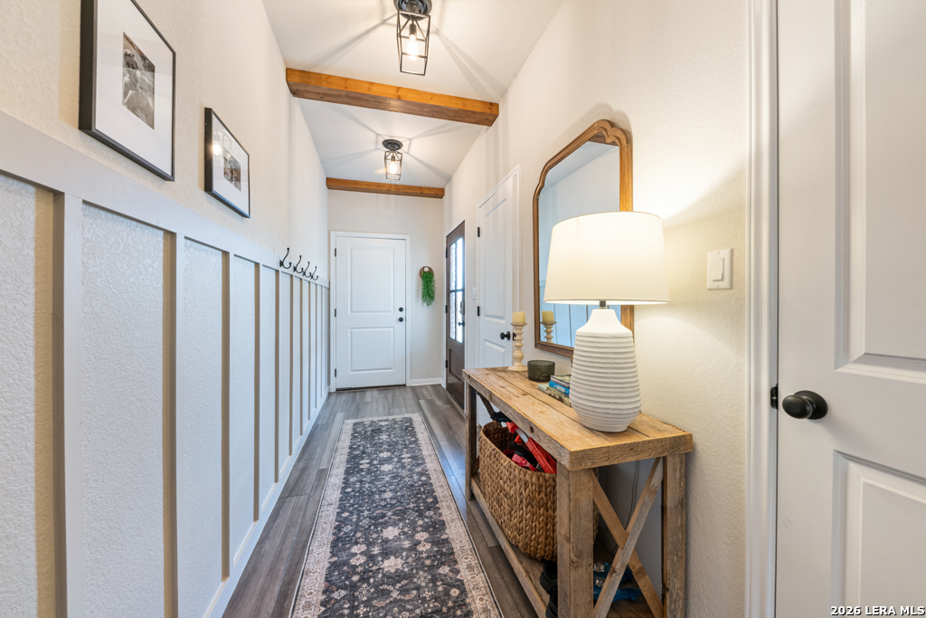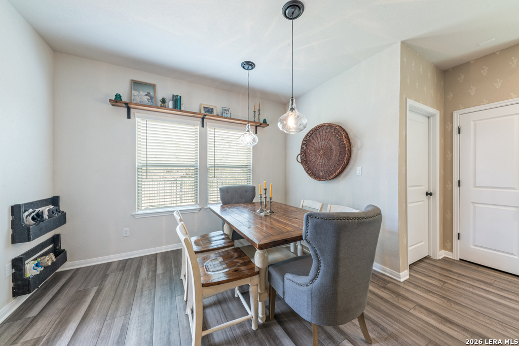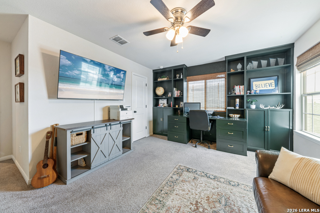 From the moment you arrive, this home welcomes you with charming curb appeal and a warm, inviting feel. Step inside to a beautifully designed entry featuring custom wainscoting, wood beam accents, and thoughtful details that immediately set this home apart. The open-concept living area is filled with natural light and anchored by a stunning custom accent wall, creating a cozy yet spacious environment perfect for both everyday living and entertaining. The kitchen shines with bright white cabinetry, generous counter space, and a large island that flows seamlessly into the dining and living areas. Throughout the home, you'll find carefully selected upgrades, designer touches, and a clear pride of ownership that make this property feel truly special. Upstairs offers spacious secondary bedrooms, a versatile game room or flex space, and a dedicated office ideal for working from home. Step outside to one of the home's standout features - a private backyard backing to a peaceful greenbelt. The added custom deck creates the perfect space for relaxing or entertaining while enjoying the serene setting. Additional highlights include an owned water softener, custom wainscoting and accent walls, upgraded lighting, and thoughtful improvements throughout. This home has been lovingly maintained and thoughtfully enhanced, making it truly move-in ready.