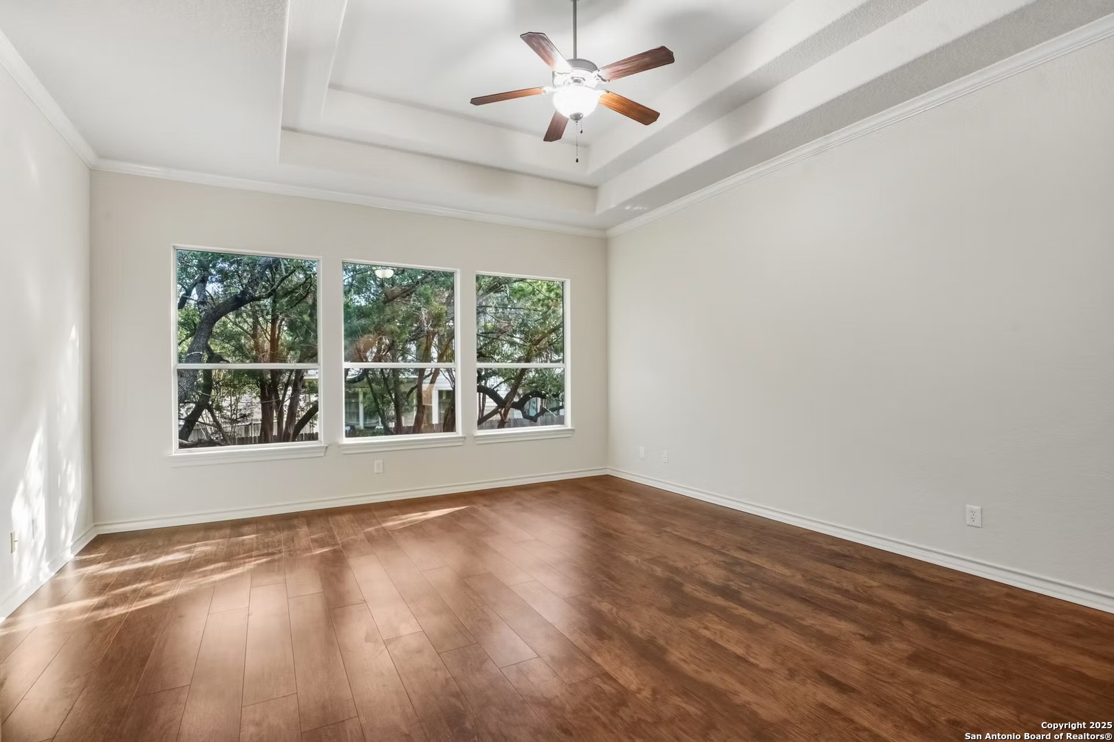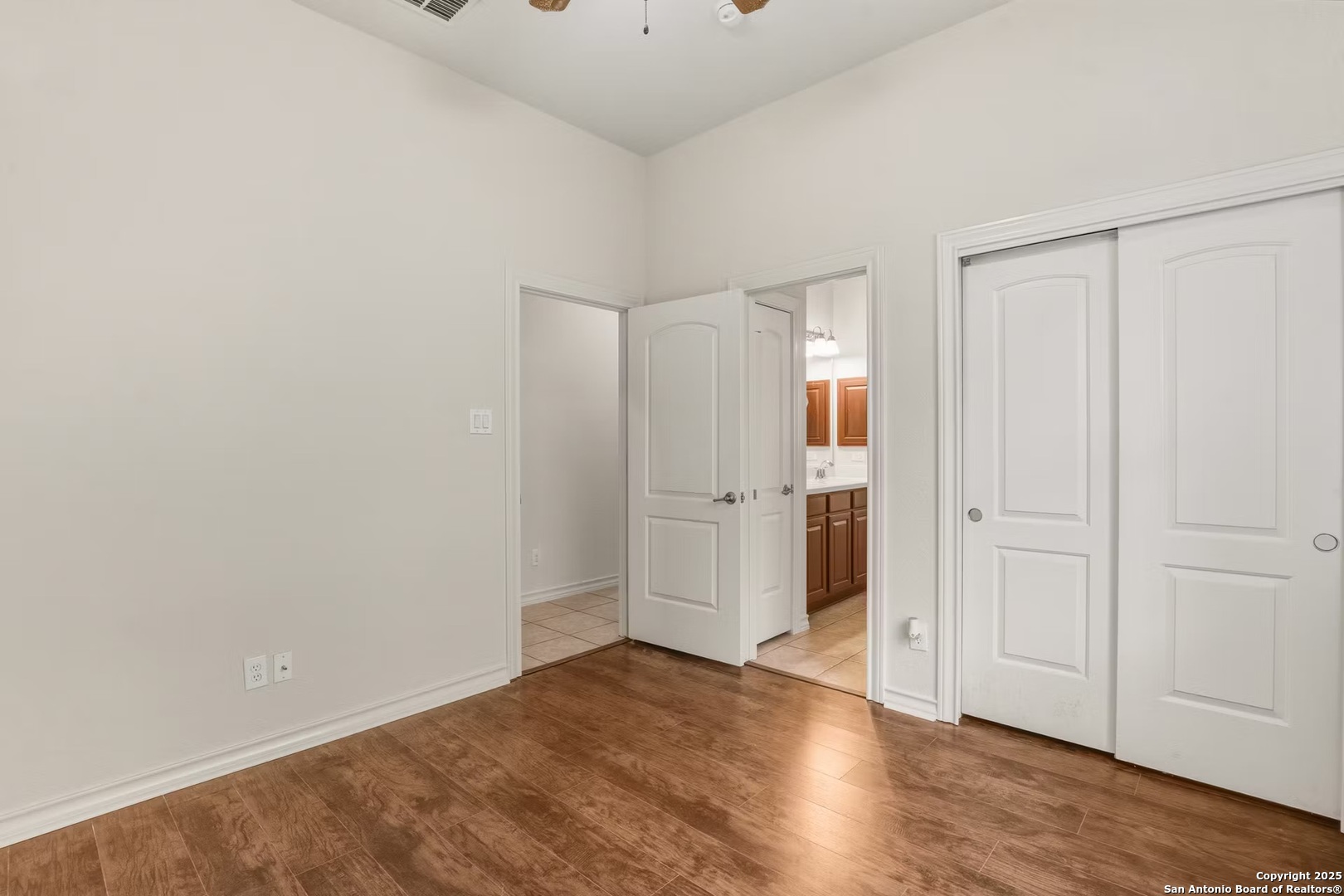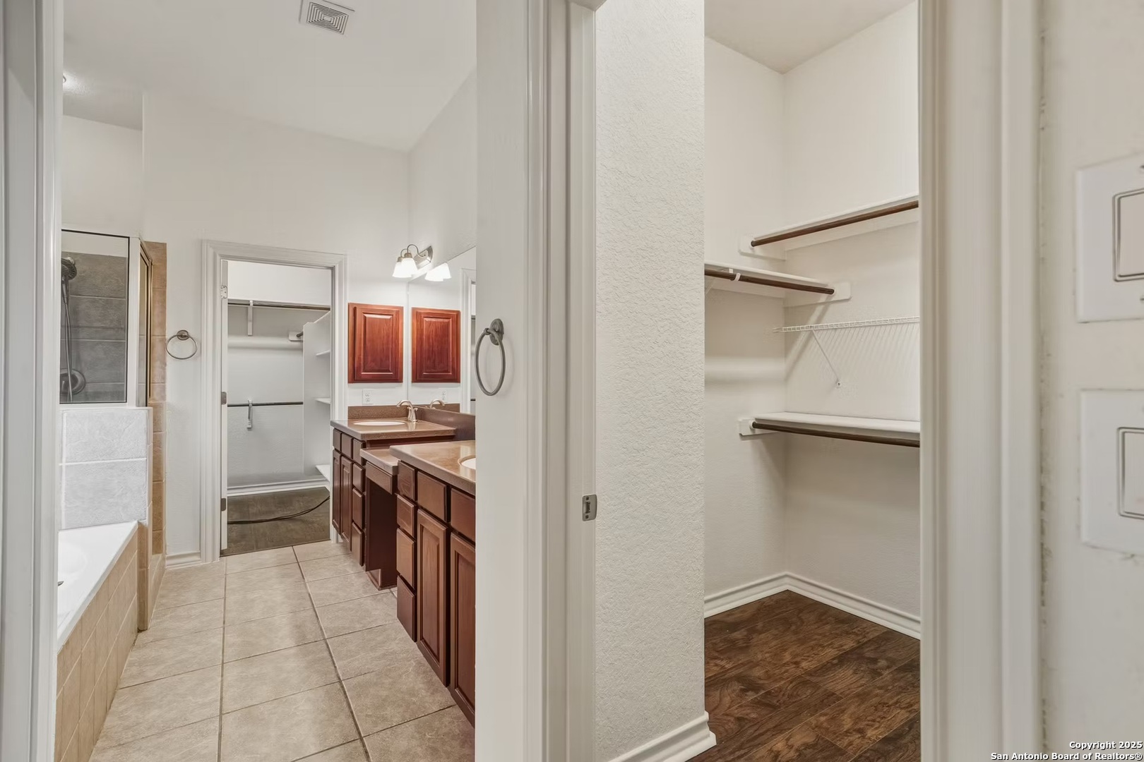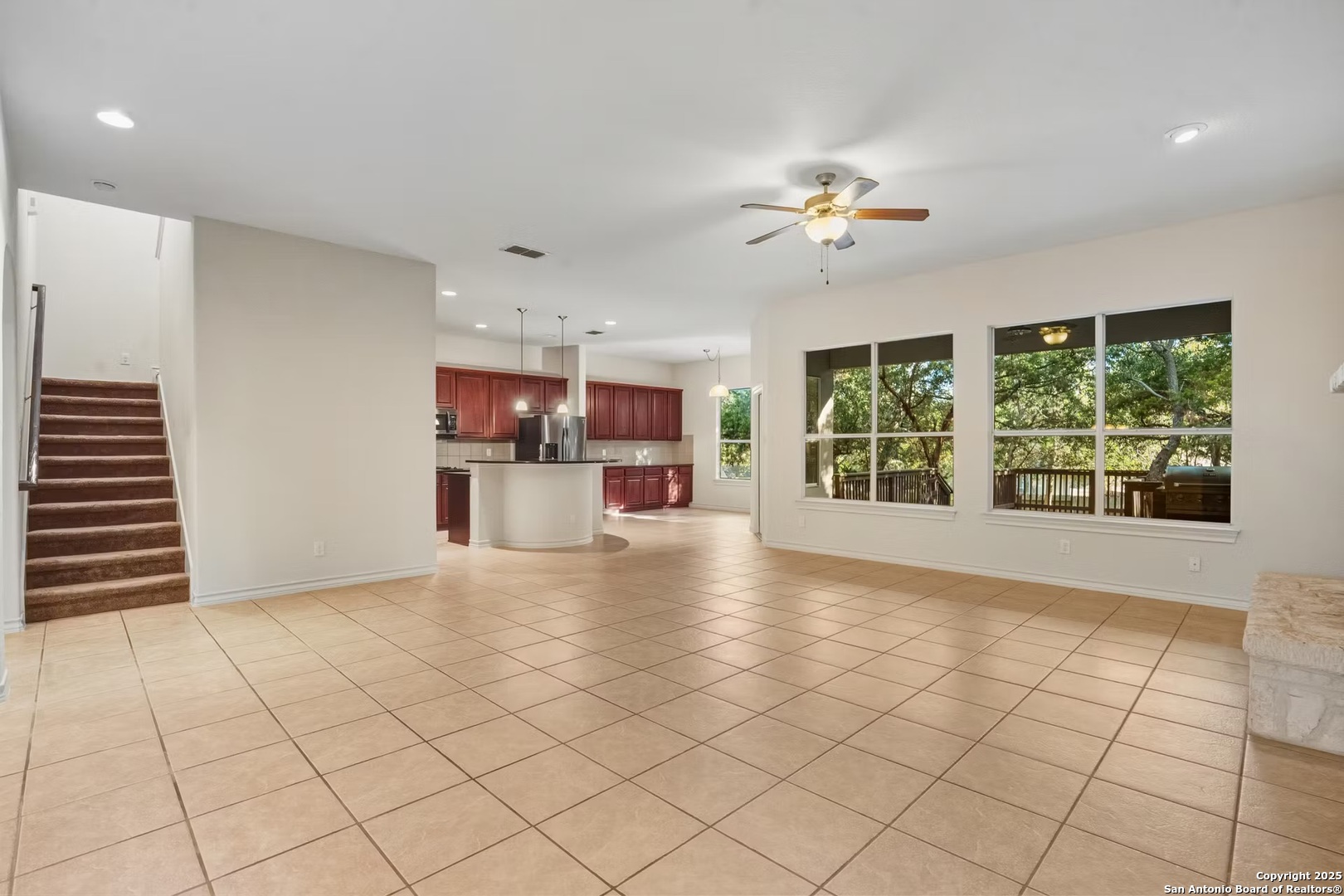 Beautifully maintained 1.5-story home in the highly desirable Trinity Oaks community! This spacious 4-bed, 2-full and 2-half bath home offers a open-concept layout filled with natural light. The kitchen features abundant cabinet storage, a large breakfast bar, generous counter space, and a huge walk-in pantry with plenty of additional storage - ideal for everyday living and entertaining. The primary suite is conveniently located on the main level and includes two separate walk-in closets and a double-vanity bath with a relaxing garden tub and separate shower. Upstairs, enjoy a versatile loft complete with its own half bath, perfect for a game room, media area, or home office. Step outside to a covered patio and extended deck surrounded by mature trees, creating a shaded and welcoming outdoor retreat. Located just minutes from shopping, dining, and Hwy 281 - this move-in-ready home offers comfort, space, and a prime North San Antonio location! Seller willing to contribute up to $10,000 toward buyer's closing costs with acceptable offer. Schedule your showing today!