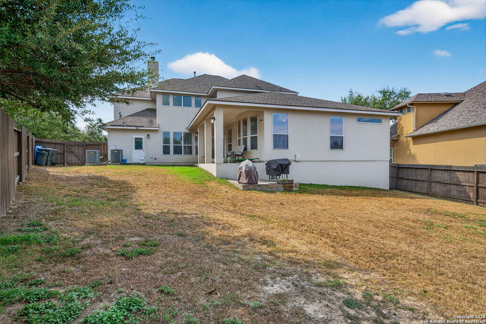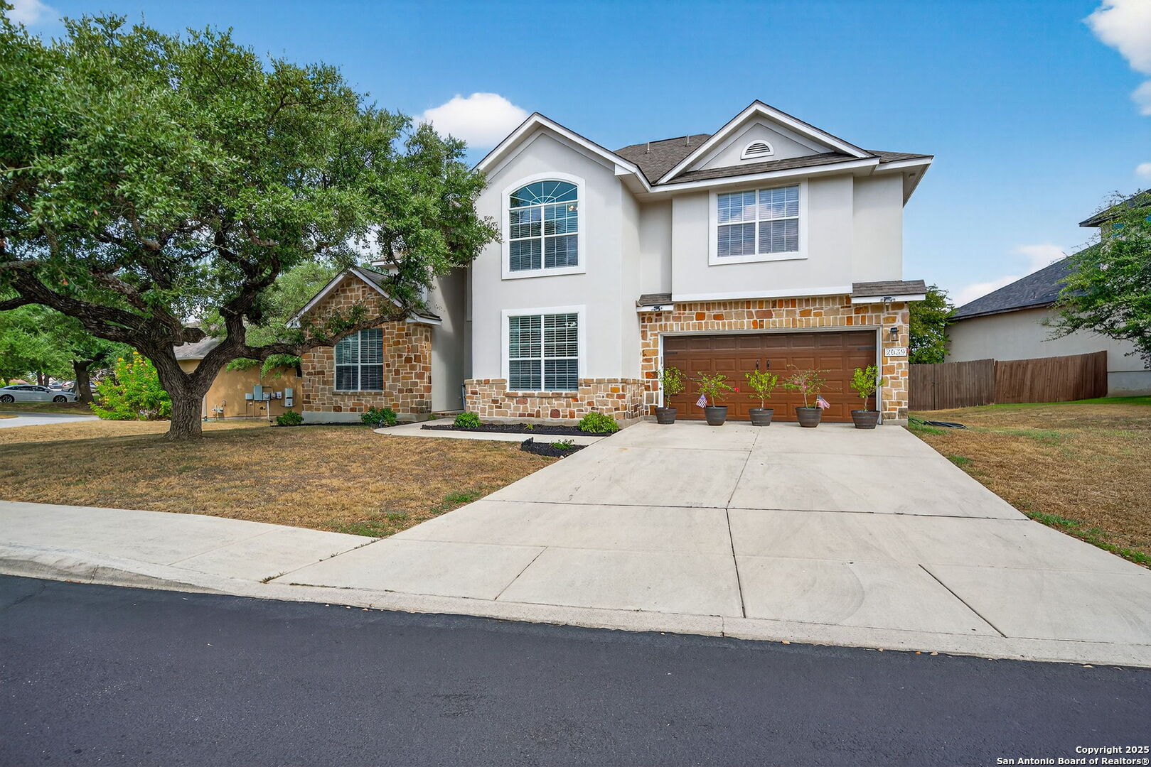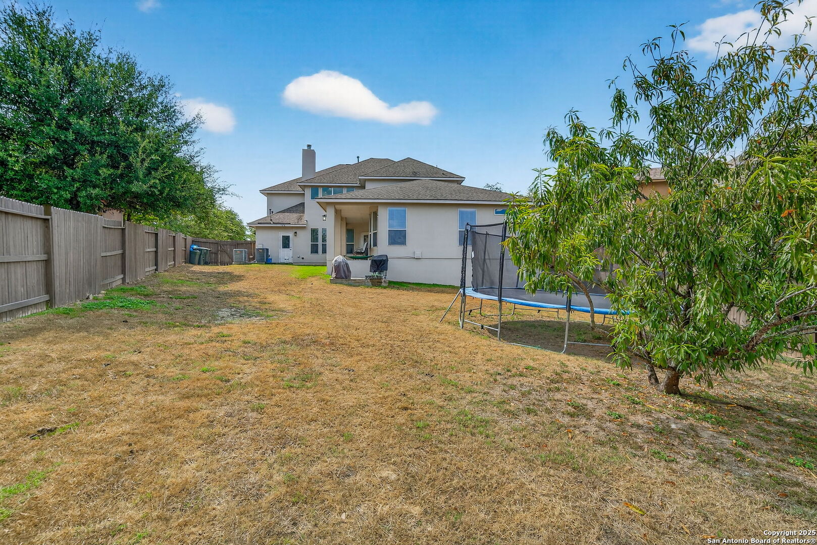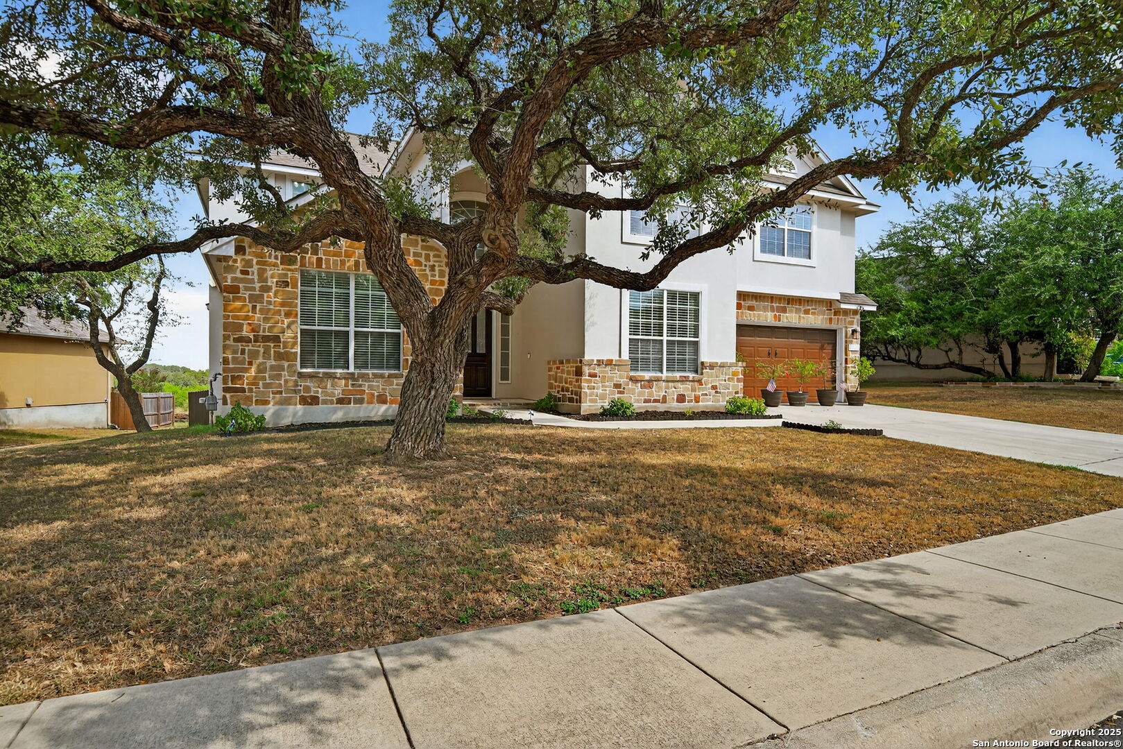 Welcome to 2639 Amber View, an exquisite two-story masterpiece nestled in the prestigious Trinity Oaks Community. This luxurious residence features five spacious bedrooms and five-and-a-half elegantly designed bathrooms, offering comfort and sophistication at every turn. Two private master suites on the first floor boast soaring tray ceilings, expansive walk-in closets, and spa-like bathrooms. An office/study on the main level provides the perfect space for working from home. Upstairs, you'll find three additional bedrooms, a large game room, and a bonus room that can serve as a media room or a sixth bedroom. The gourmet kitchen is a chef's dream, featuring granite countertops, stainless steel appliances, double oven, microwave, and a gas range. Additional highlights include a huge laundry room and food pantry. The Trinity Oaks Community offers exceptional amenities, including a sparkling pool, a charming playground, BBQ grills, and a grand pavilion for hosting unforgettable events. The property is gated, features a pool and park, and has no city taxes. Located in Comal ISD, it combines luxury, convenience, and an unbeatable community lifestyle. Experience modern living at its finest at 2639 Amber View, where every detail has been thoughtfully curated to provide an unparalleled living experience.