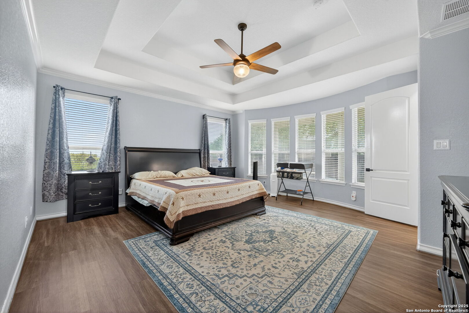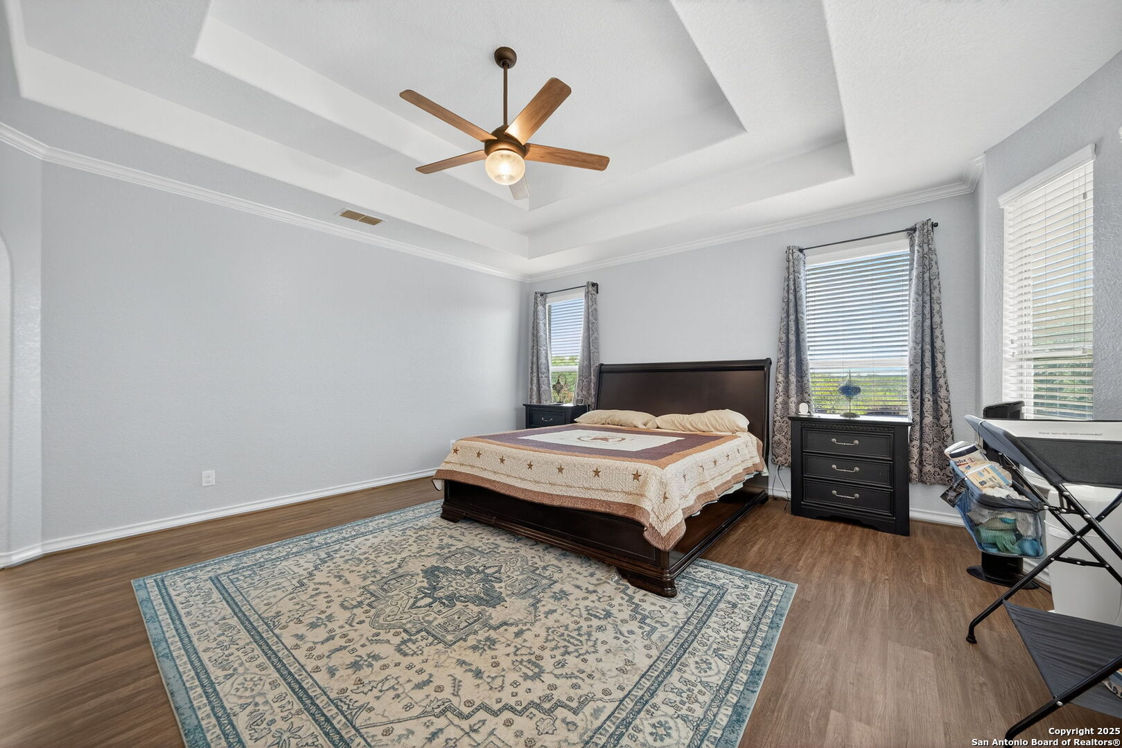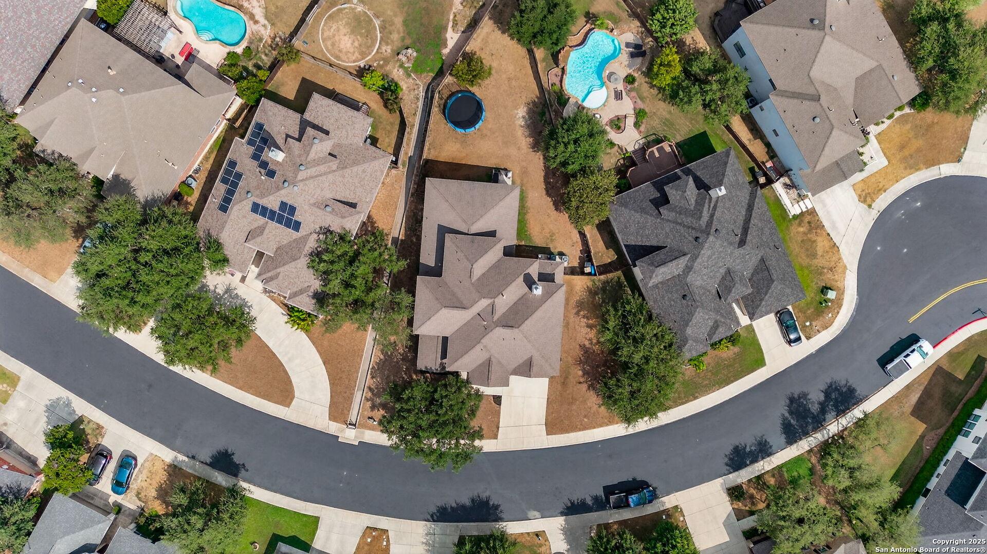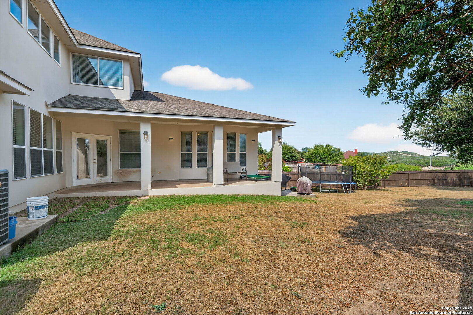 Welcome to 2639 Amber View, an exquisite two-story masterpiece nestled in the prestigious Trinity Oaks Community. This luxurious residence features five spacious bedrooms and five-and-a-half elegantly designed bathrooms, offering comfort and sophistication at every turn. Two private master suites on the first floor boast soaring tray ceilings, expansive walk-in closets, and spa-like bathrooms. An office/study on the main level provides the perfect space for working from home. Upstairs, you'll find three additional bedrooms, a large game room, and a bonus room that can serve as a media room or a sixth bedroom. The gourmet kitchen is a chef's dream, featuring granite countertops, stainless steel appliances, double oven, microwave, and a gas range. Additional highlights include a huge laundry room and food pantry. The Trinity Oaks Community offers exceptional amenities, including a sparkling pool, a charming playground, BBQ grills, and a grand pavilion for hosting unforgettable events. The property is gated, features a pool and park, and has no city taxes. Located in Comal ISD, it combines luxury, convenience, and an unbeatable community lifestyle. Experience modern living at its finest at 2639 Amber View, where every detail has been thoughtfully curated to provide an unparalleled living experience.