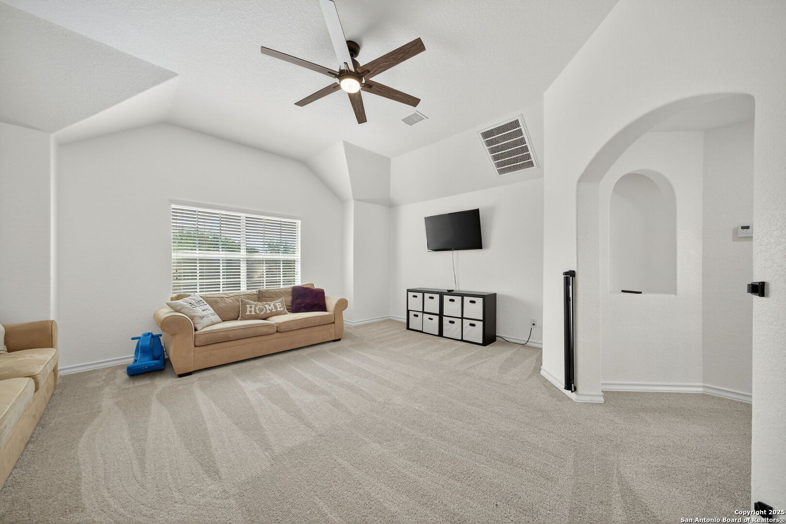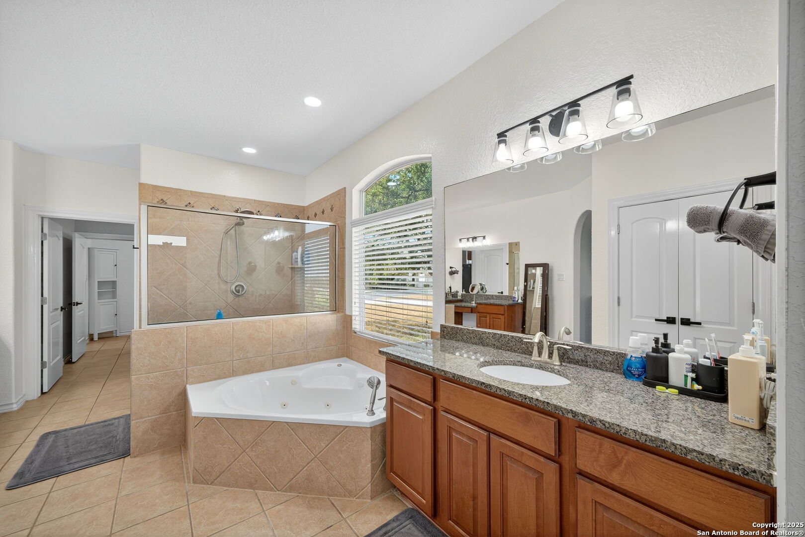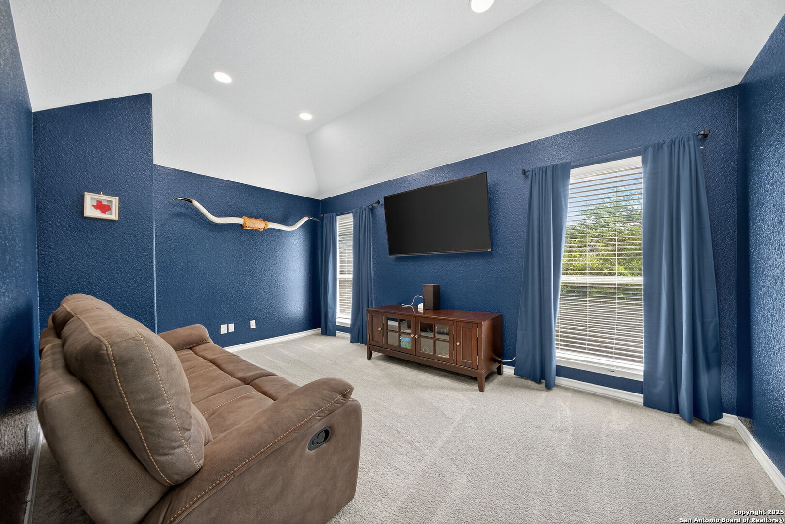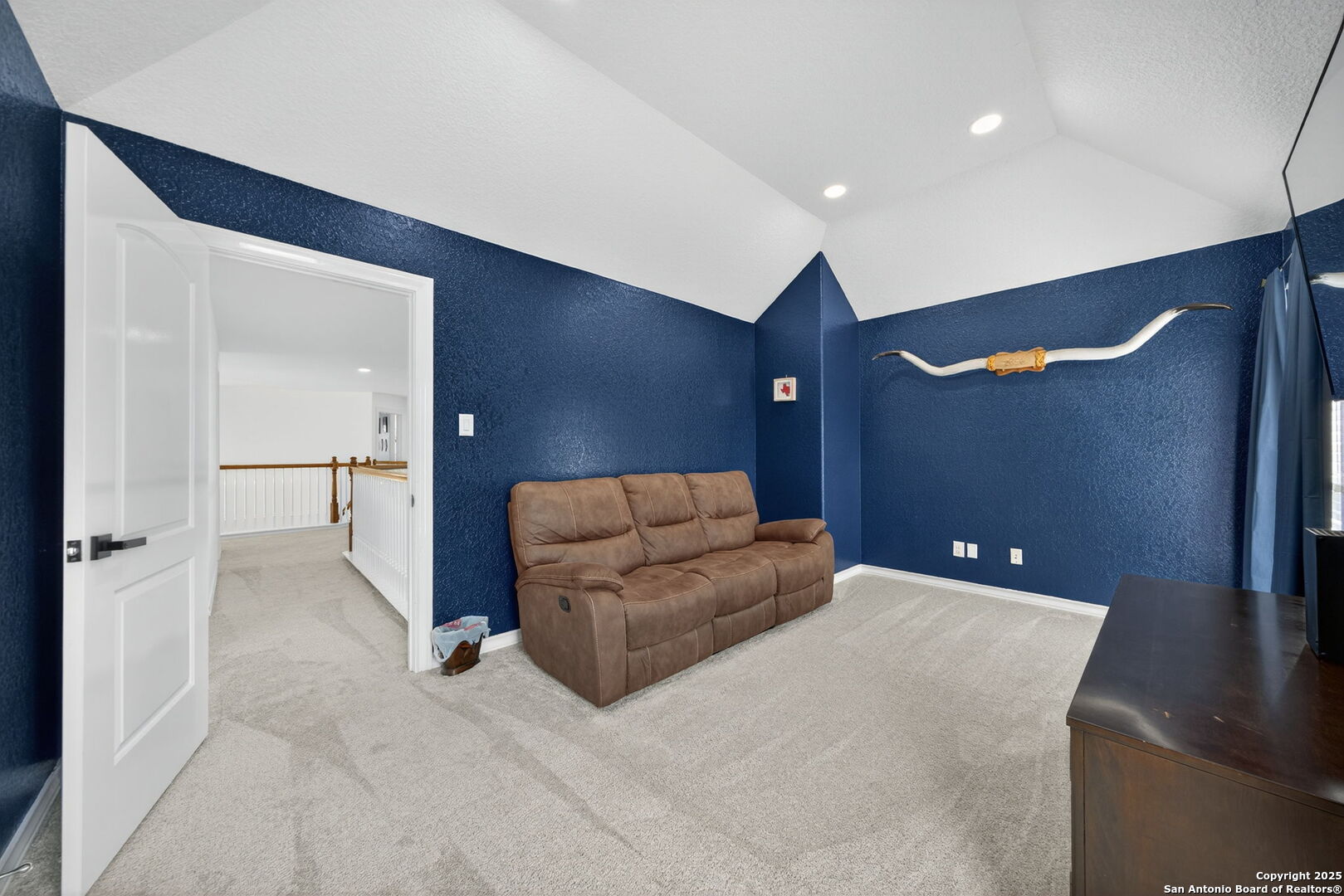 Welcome to 2639 Amber View, an exquisite two-story masterpiece nestled in the prestigious Trinity Oaks Community. This luxurious residence features five spacious bedrooms and five-and-a-half elegantly designed bathrooms, offering comfort and sophistication at every turn. Two private master suites on the first floor boast soaring tray ceilings, expansive walk-in closets, and spa-like bathrooms. An office/study on the main level provides the perfect space for working from home. Upstairs, you'll find three additional bedrooms, a large game room, and a bonus room that can serve as a media room or a sixth bedroom. The gourmet kitchen is a chef's dream, featuring granite countertops, stainless steel appliances, double oven, microwave, and a gas range. Additional highlights include a huge laundry room and food pantry. The Trinity Oaks Community offers exceptional amenities, including a sparkling pool, a charming playground, BBQ grills, and a grand pavilion for hosting unforgettable events. The property is gated, features a pool and park, and has no city taxes. Located in Comal ISD, it combines luxury, convenience, and an unbeatable community lifestyle. Experience modern living at its finest at 2639 Amber View, where every detail has been thoughtfully curated to provide an unparalleled living experience.