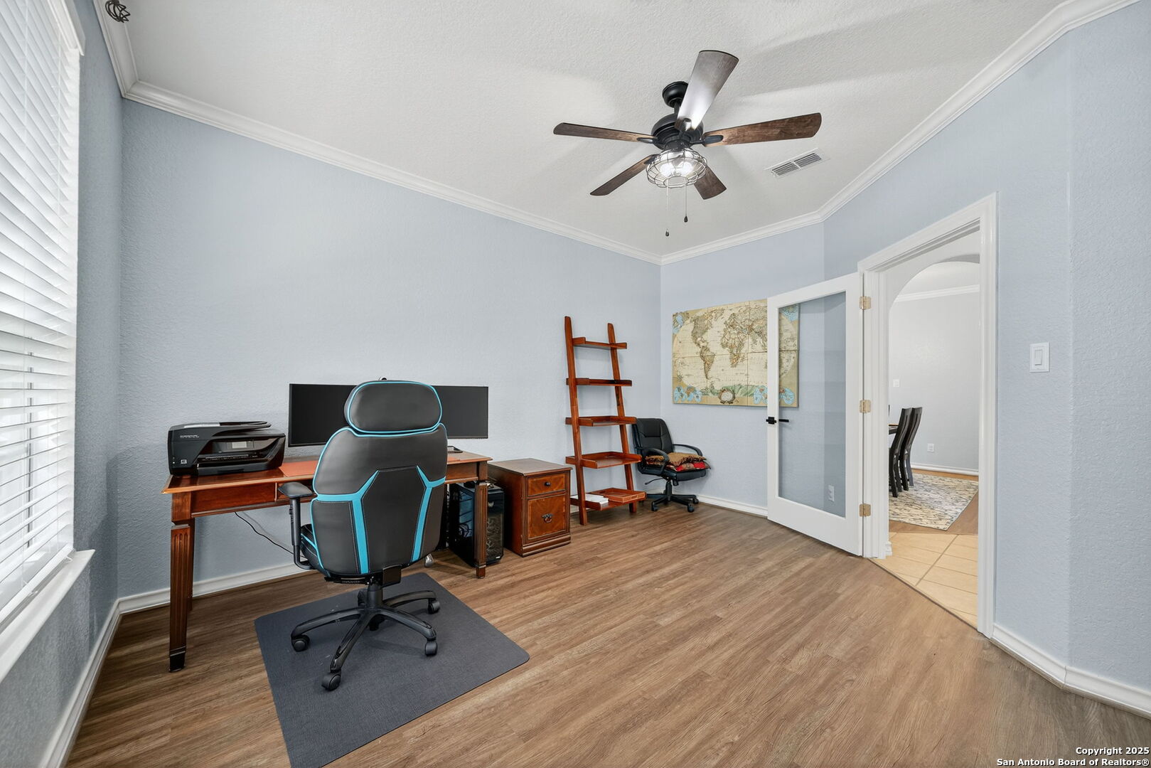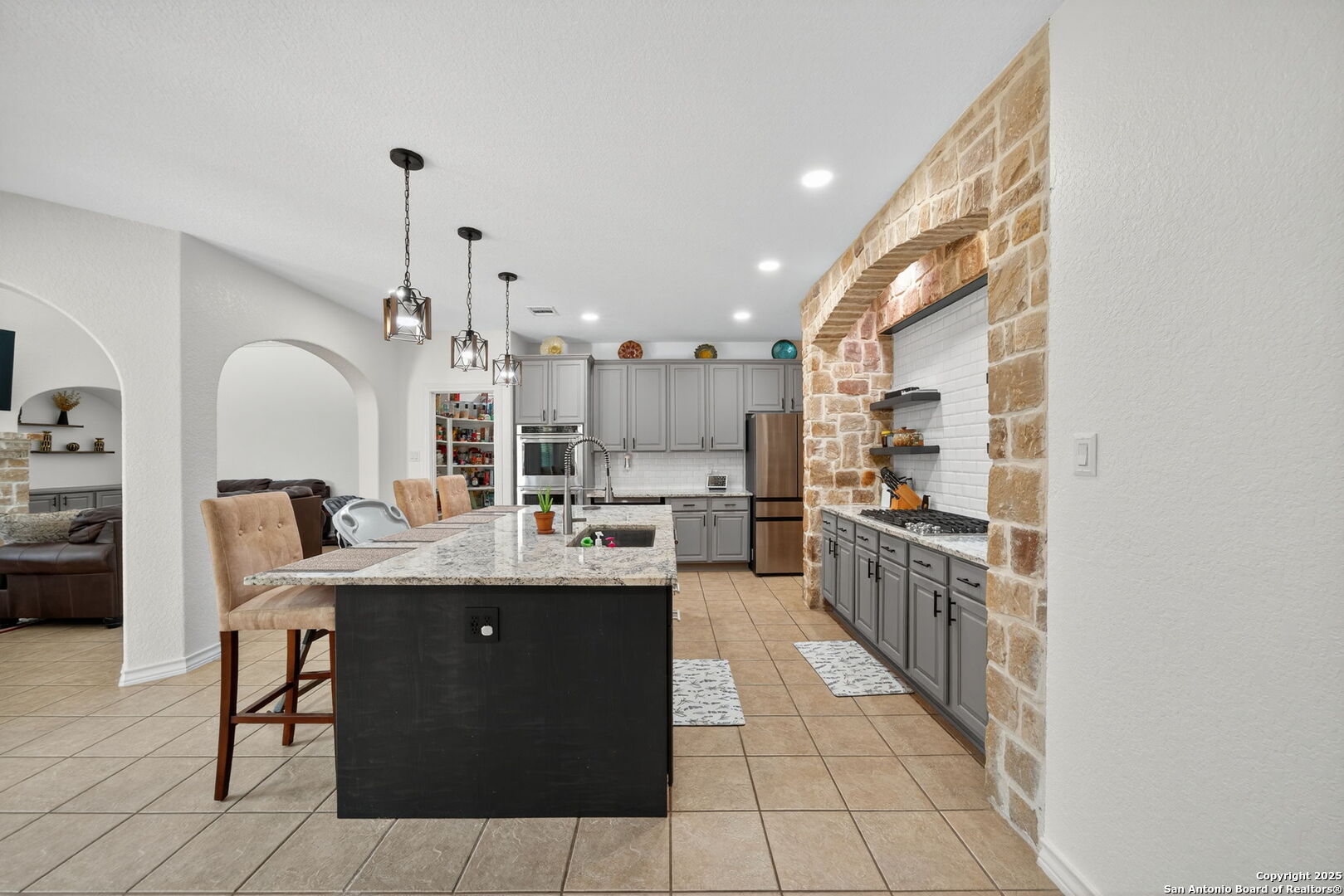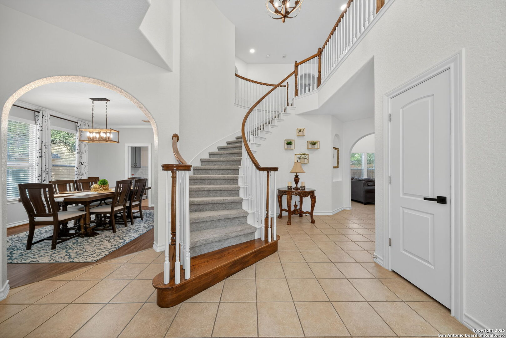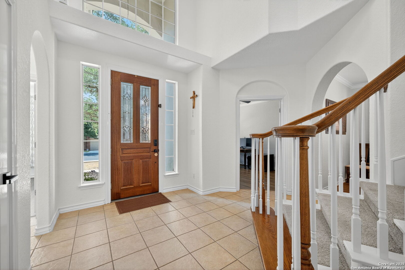 Welcome to 2639 Amber View, an exquisite two-story masterpiece nestled in the prestigious Trinity Oaks Community. This luxurious residence features five spacious bedrooms and five-and-a-half elegantly designed bathrooms, offering comfort and sophistication at every turn. Two private master suites on the first floor boast soaring tray ceilings, expansive walk-in closets, and spa-like bathrooms. An office/study on the main level provides the perfect space for working from home. Upstairs, you'll find three additional bedrooms, a large game room, and a bonus room that can serve as a media room or a sixth bedroom. The gourmet kitchen is a chef's dream, featuring granite countertops, stainless steel appliances, double oven, microwave, and a gas range. Additional highlights include a huge laundry room and food pantry. The Trinity Oaks Community offers exceptional amenities, including a sparkling pool, a charming playground, BBQ grills, and a grand pavilion for hosting unforgettable events. The property is gated, features a pool and park, and has no city taxes. Located in Comal ISD, it combines luxury, convenience, and an unbeatable community lifestyle. Experience modern living at its finest at 2639 Amber View, where every detail has been thoughtfully curated to provide an unparalleled living experience.