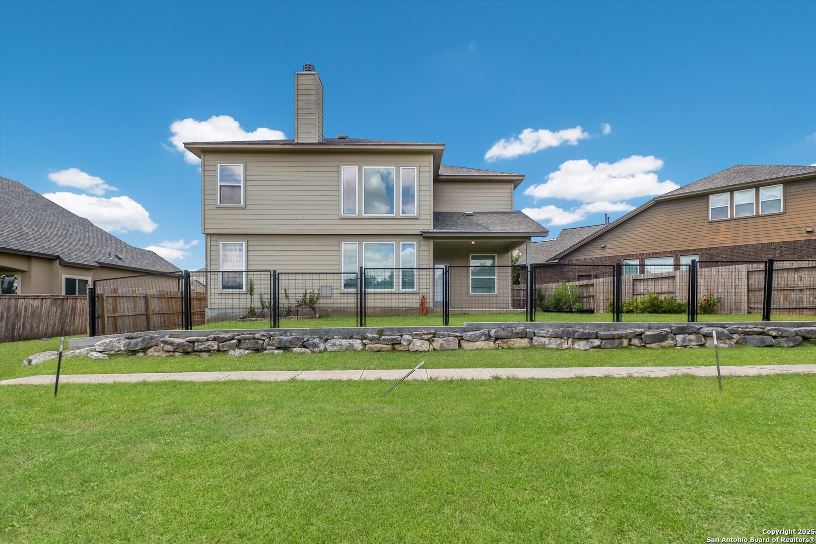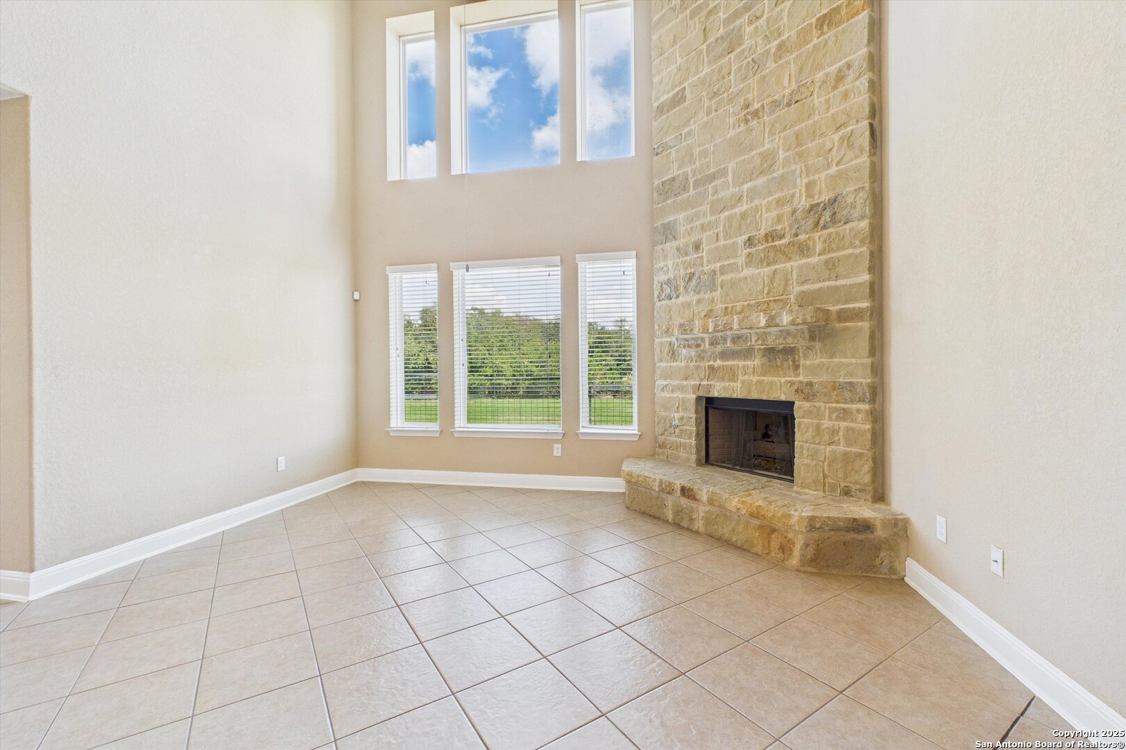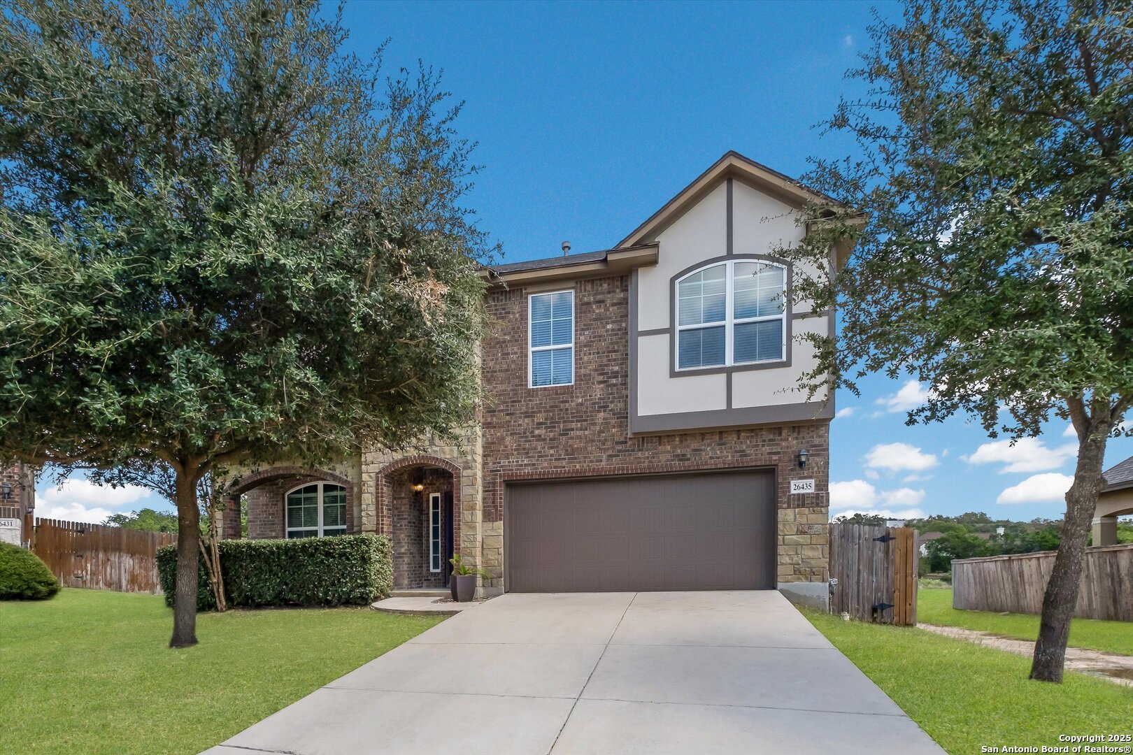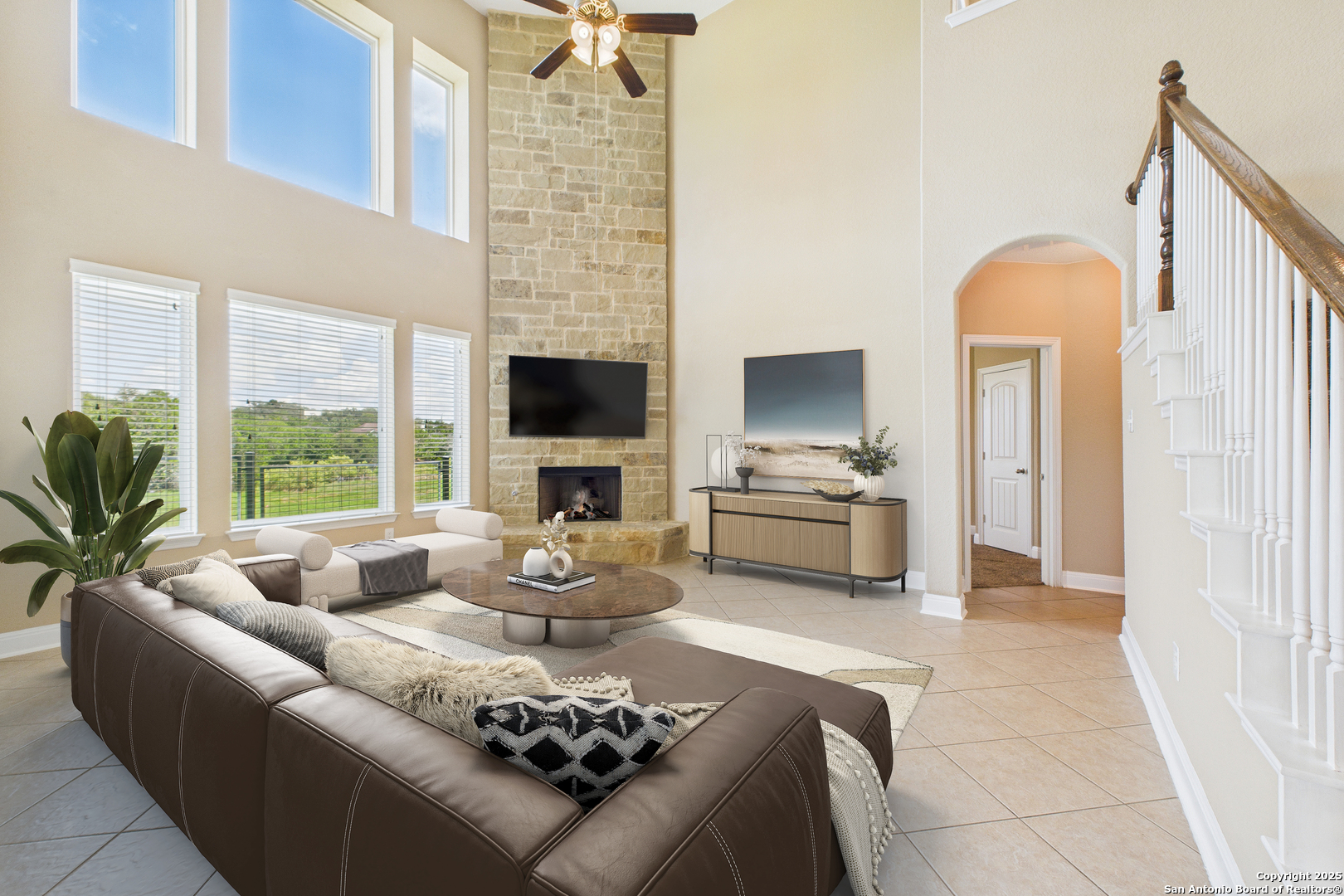 Your Retreat Awaits in The Villas at Timberwood! Nestled in the heart of the coveted Timberwood Park Subdivision, this five-bedroom, three-bath home offers more than a place to live-it offers a lifestyle. Step inside to soaring 20-foot ceilings, a dramatic wall of windows, and a stunning floor-to-ceiling stone fireplace that creates a warm and inviting centerpiece. The open-concept main floor makes daily life effortless, with a stunning kitchen with island seating, breakfast nook, and seamless flow into the living room. A formal dining room provides an elegant space for gatherings, while a first-floor guest room doubles as the perfect home office. Upstairs, the primary suite is a true retreat with a vaulted ceiling, generous walk-in closet, dual vanities, garden tub, and walk-in shower. Four additional bedrooms, a loft-style family room, and a convenient laundry room complete the thoughtful layout. Step outside to a covered patio with a built-in gas connection, ideal for evening grilling while deer and wildlife wander the greenbelt beyond. It's a private escape that feels connected to nature. The location is just as special-set on a quiet knuckle sac and only steps from Timberwood Park's 30-acre private park. Enjoy a clubhouse and pavilion, fitness center, junior Olympic-sized pool, courts for tennis, pickleball, basketball, and volleyball, a six-hole golf course, a stocked fishing pond, and scenic walking trails. This is more than a house-it's a home designed for connection, relaxation, and the joy of everyday living.