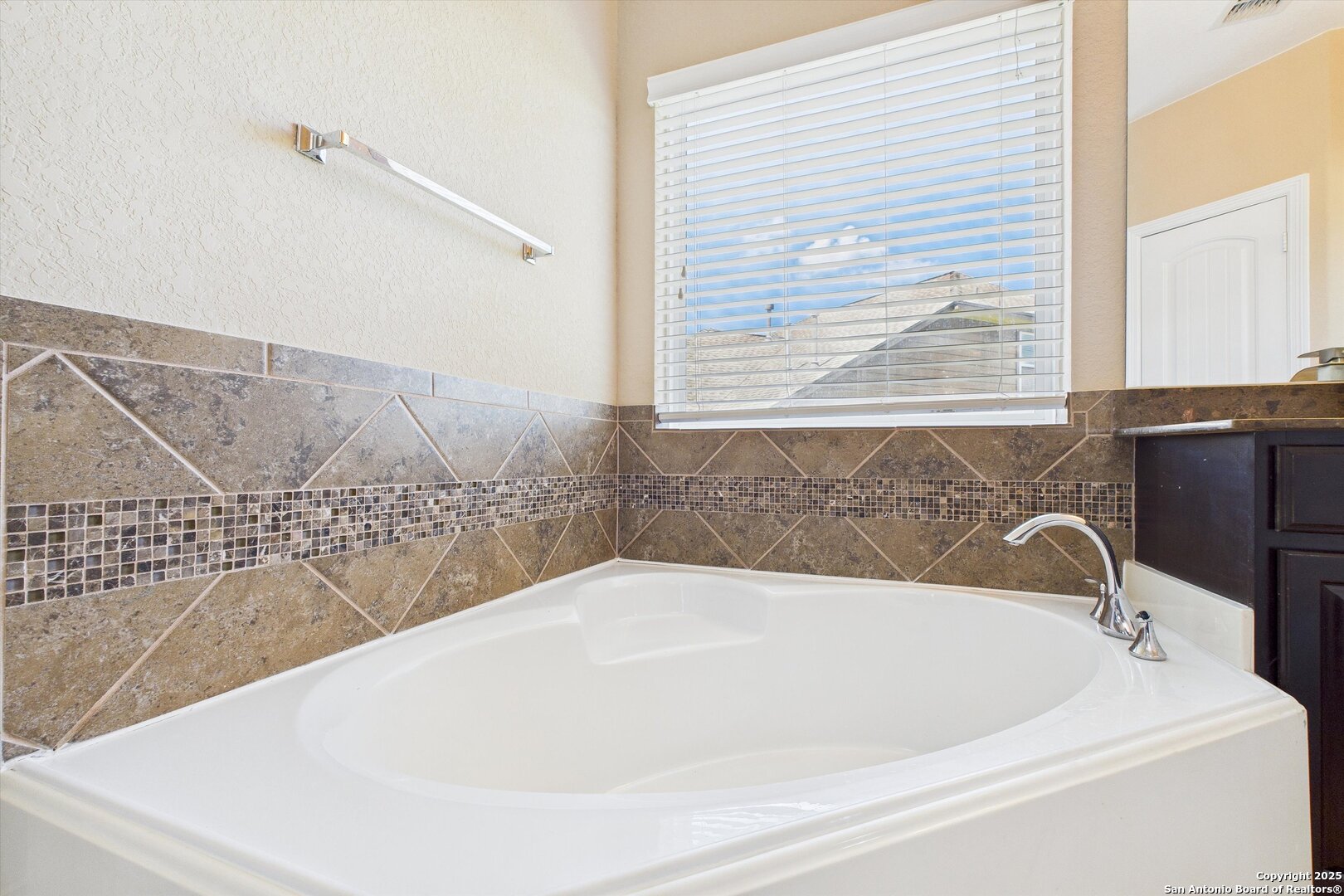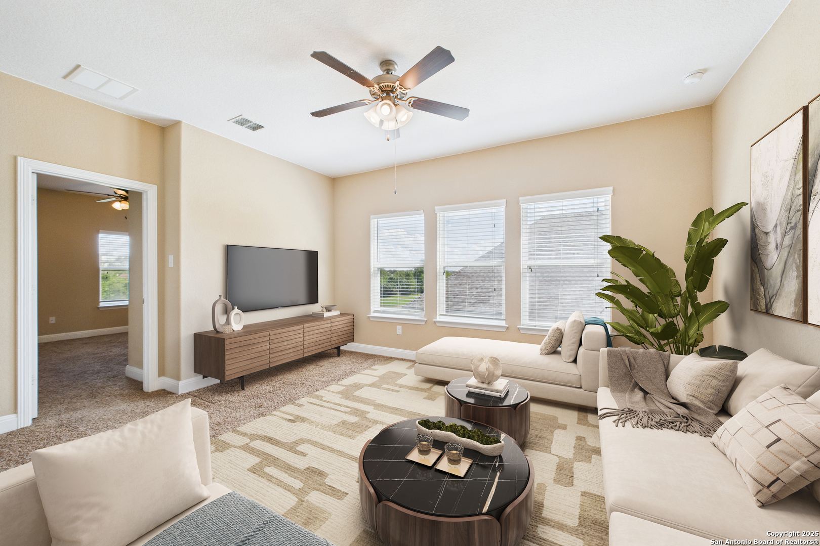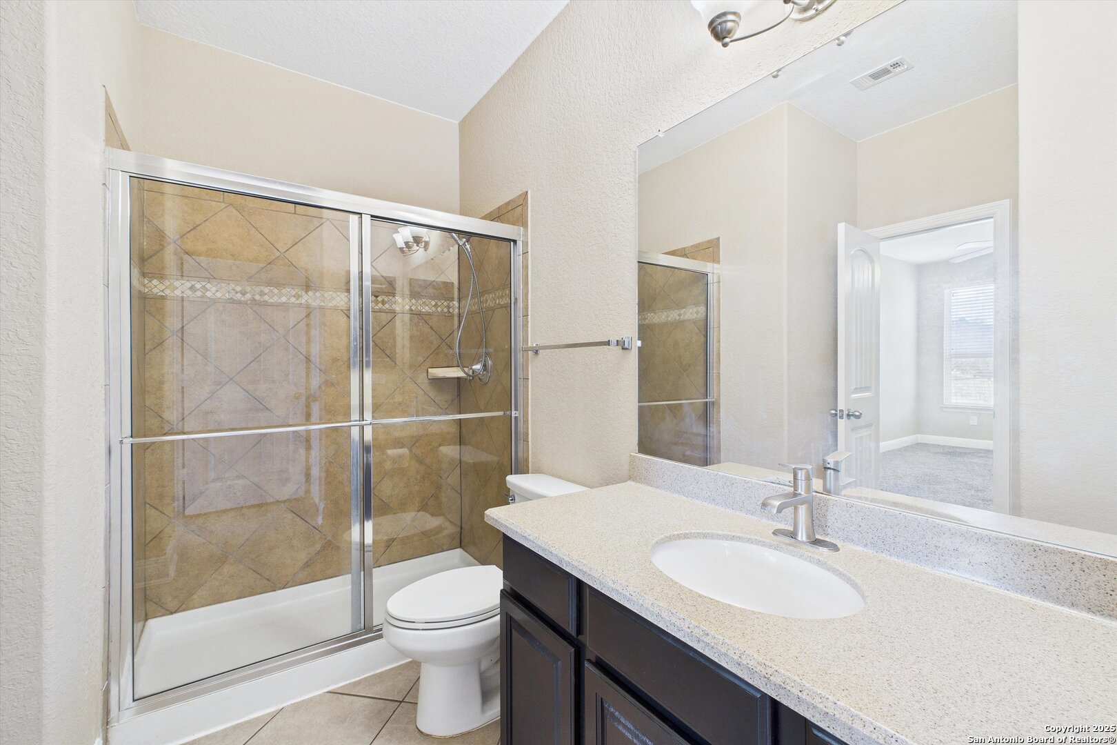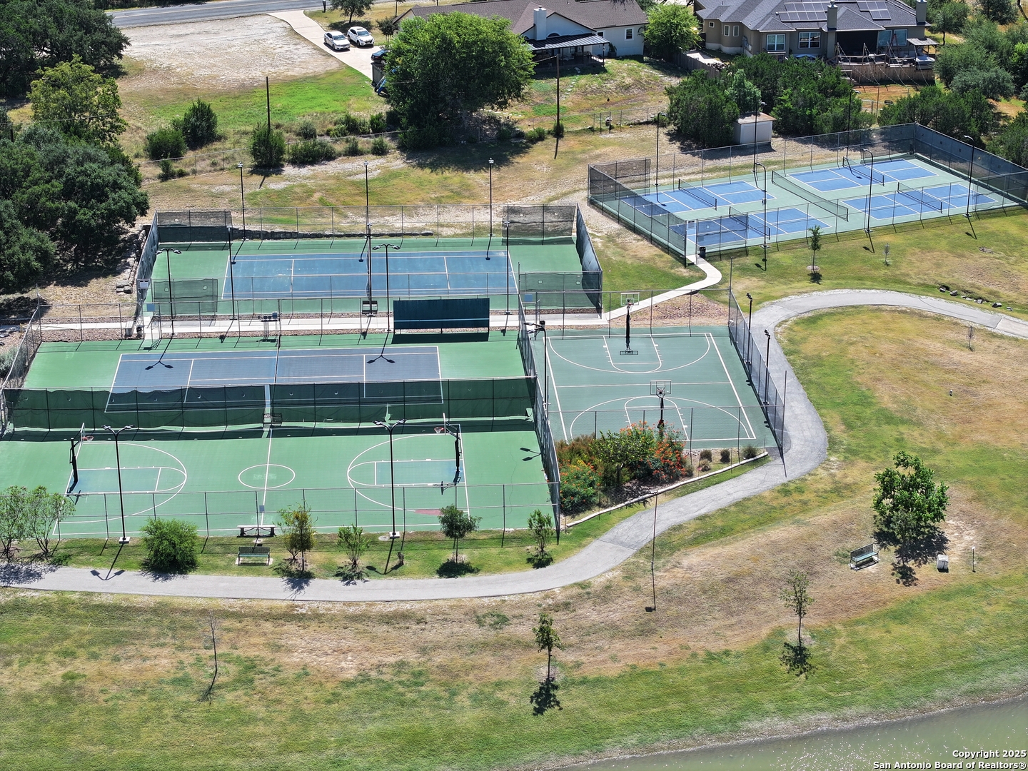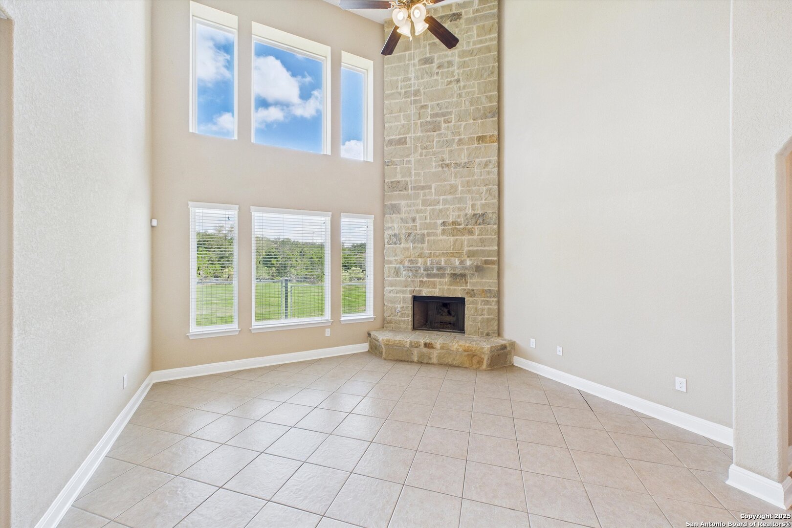 Your Retreat Awaits in The Villas at Timberwood! Nestled in the heart of the coveted Timberwood Park Subdivision, this five-bedroom, three-bath home offers more than a place to live-it offers a lifestyle. Step inside to soaring 20-foot ceilings, a dramatic wall of windows, and a stunning floor-to-ceiling stone fireplace that creates a warm and inviting centerpiece. The open-concept main floor makes daily life effortless, with a stunning kitchen with island seating, breakfast nook, and seamless flow into the living room. A formal dining room provides an elegant space for gatherings, while a first-floor guest room doubles as the perfect home office. Upstairs, the primary suite is a true retreat with a vaulted ceiling, generous walk-in closet, dual vanities, garden tub, and walk-in shower. Four additional bedrooms, a loft-style family room, and a convenient laundry room complete the thoughtful layout. Step outside to a covered patio with a built-in gas connection, ideal for evening grilling while deer and wildlife wander the greenbelt beyond. It's a private escape that feels connected to nature. The location is just as special-set on a quiet knuckle sac and only steps from Timberwood Park's 30-acre private park. Enjoy a clubhouse and pavilion, fitness center, junior Olympic-sized pool, courts for tennis, pickleball, basketball, and volleyball, a six-hole golf course, a stocked fishing pond, and scenic walking trails. This is more than a house-it's a home designed for connection, relaxation, and the joy of everyday living.
