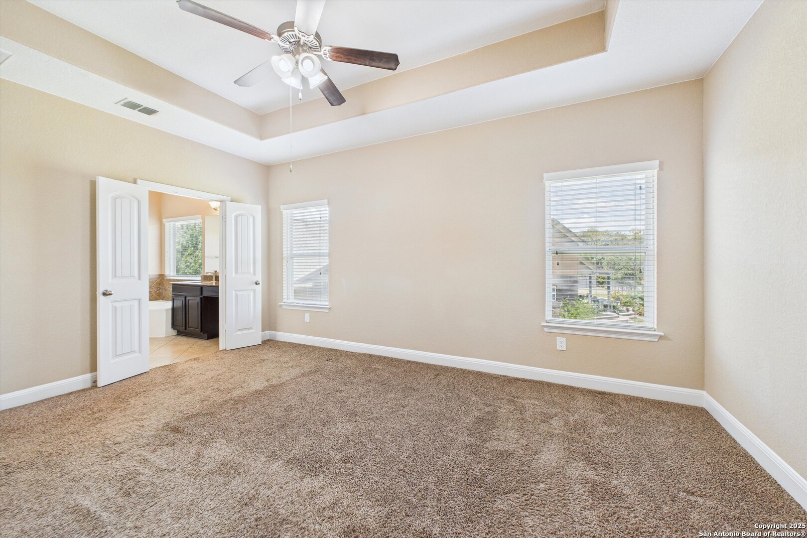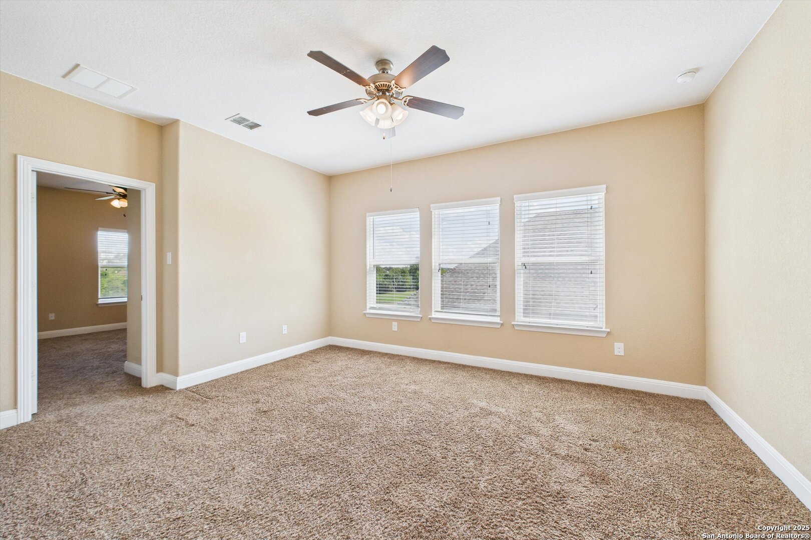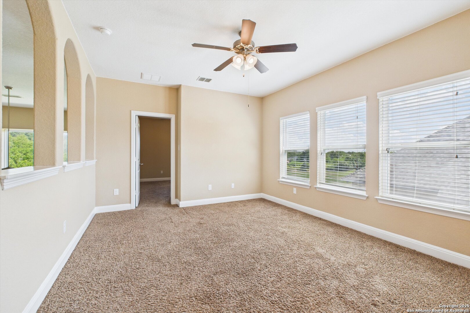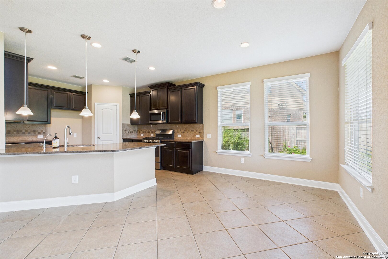 Your Retreat Awaits in The Villas at Timberwood! Nestled in the heart of the coveted Timberwood Park Subdivision, this five-bedroom, three-bath home offers more than a place to live-it offers a lifestyle. Step inside to soaring 20-foot ceilings, a dramatic wall of windows, and a stunning floor-to-ceiling stone fireplace that creates a warm and inviting centerpiece. The open-concept main floor makes daily life effortless, with a stunning kitchen with island seating, breakfast nook, and seamless flow into the living room. A formal dining room provides an elegant space for gatherings, while a first-floor guest room doubles as the perfect home office. Upstairs, the primary suite is a true retreat with a vaulted ceiling, generous walk-in closet, dual vanities, garden tub, and walk-in shower. Four additional bedrooms, a loft-style family room, and a convenient laundry room complete the thoughtful layout. Step outside to a covered patio with a built-in gas connection, ideal for evening grilling while deer and wildlife wander the greenbelt beyond. It's a private escape that feels connected to nature. The location is just as special-set on a quiet knuckle sac and only steps from Timberwood Park's 30-acre private park. Enjoy a clubhouse and pavilion, fitness center, junior Olympic-sized pool, courts for tennis, pickleball, basketball, and volleyball, a six-hole golf course, a stocked fishing pond, and scenic walking trails. This is more than a house-it's a home designed for connection, relaxation, and the joy of everyday living.