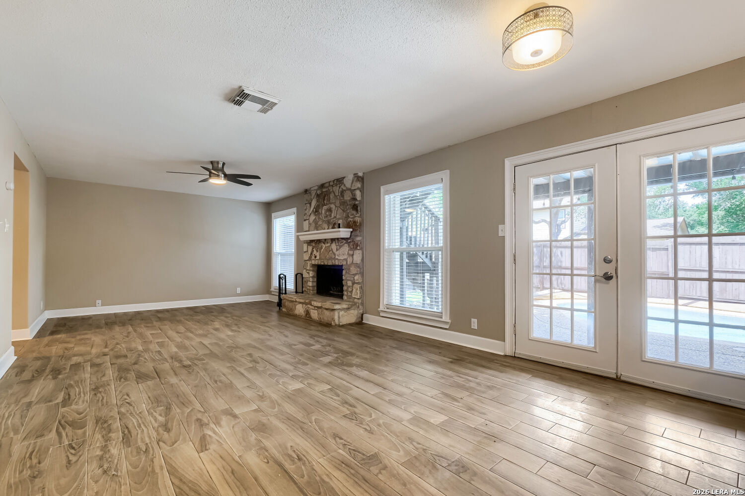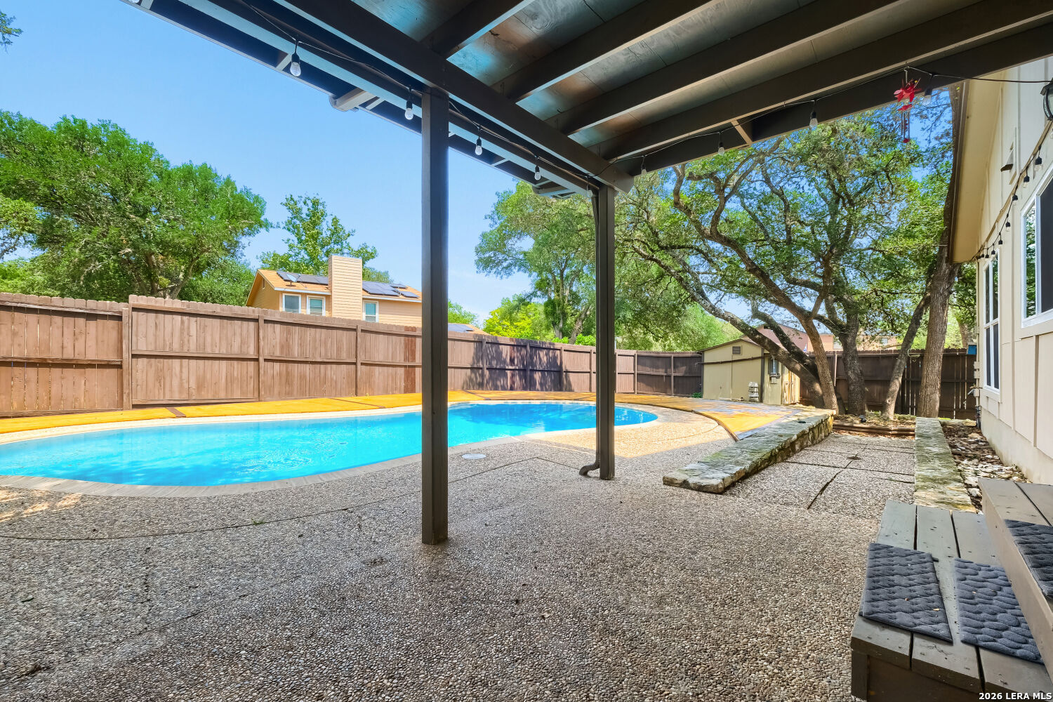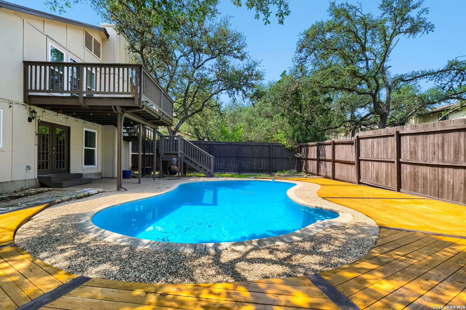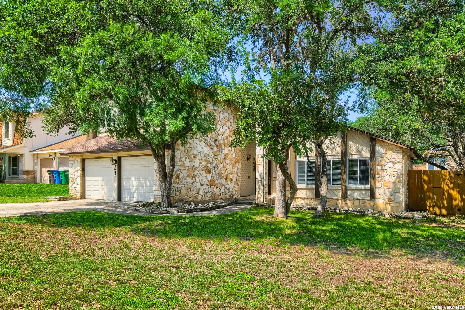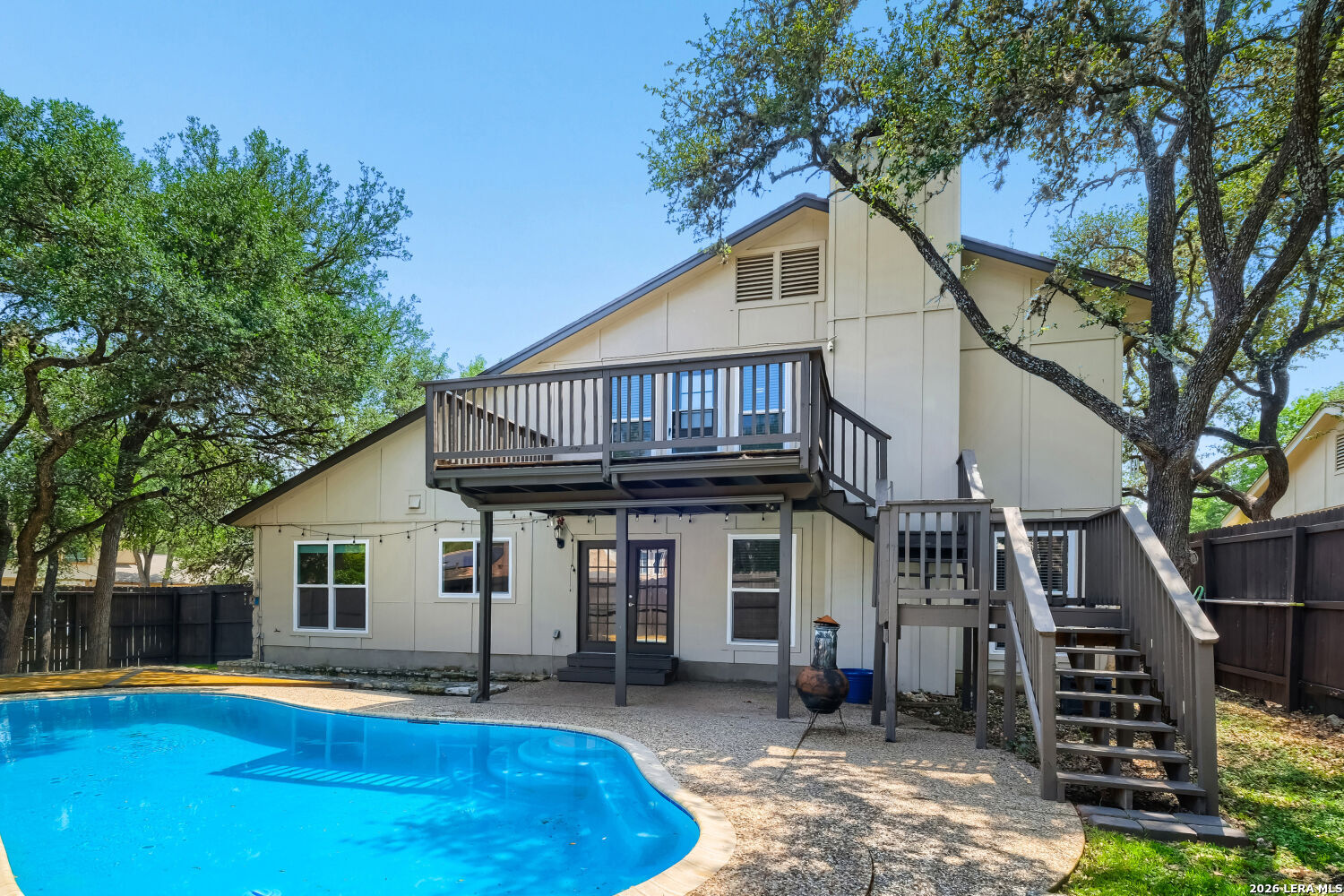 Stunning Updated Home with Pool in Desirable Oak Hollow Park! 2645 Pebble Valley, a beautifully maintained and thoughtfully updated home nestled in the sought-after Oak Hollow Park neighborhood of San Antonio with no HOA. This corner property offers the perfect blend of comfort, style, and modern upgrades ideal for buyers looking for a move-in ready home with standout features. Step inside to find energy-efficient Pella 250 windows (installed October 2020) that bring in abundant natural light while enhancing efficiency. Major systems have already been taken care of, including the roof, HVAC, and water heater (all replaced in 2020) giving peace of mind for years to come. Enjoy outdoor living at its best with a custom cedar deck overlooking the sparkling pool, which was resurfaced in 2019/2020-perfect for relaxing or entertaining. The backyard is fully enclosed with an 8' privacy cedar fence (2021, city permitted) The home also features a full suite of updated appliances (2020), including stainless steel kitchen appliances, plus a Samsung washer and dryer. In 2023, a whole-home Aqua Viva water filtration system was added, providing clean, high-quality water throughout. Also a 75" wall-mounted Hisense TV conveys. Located in a convenient San Antonio location close to shopping, dining, and major highways, this home checks all the boxes for comfort, upgrades, and lifestyle.