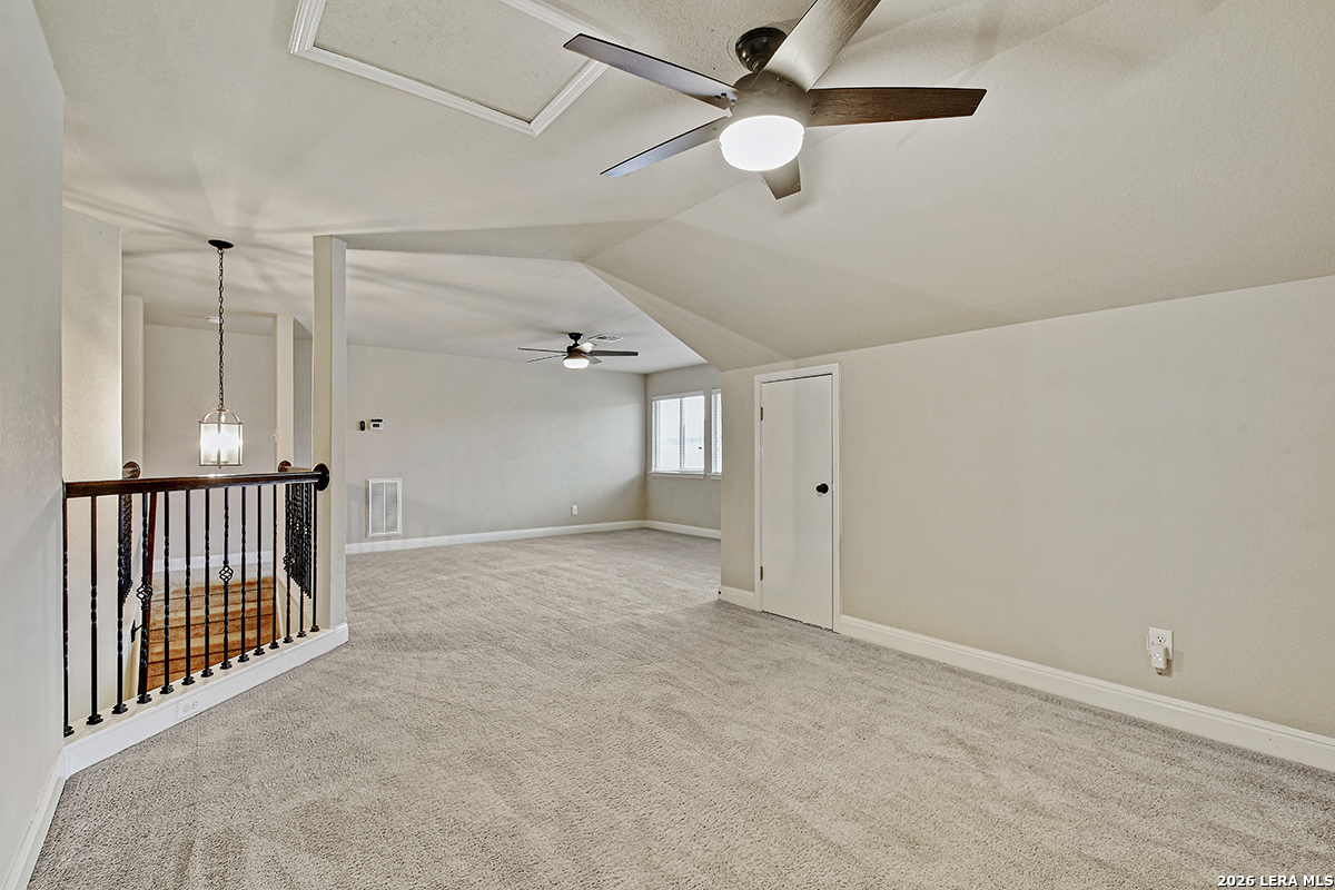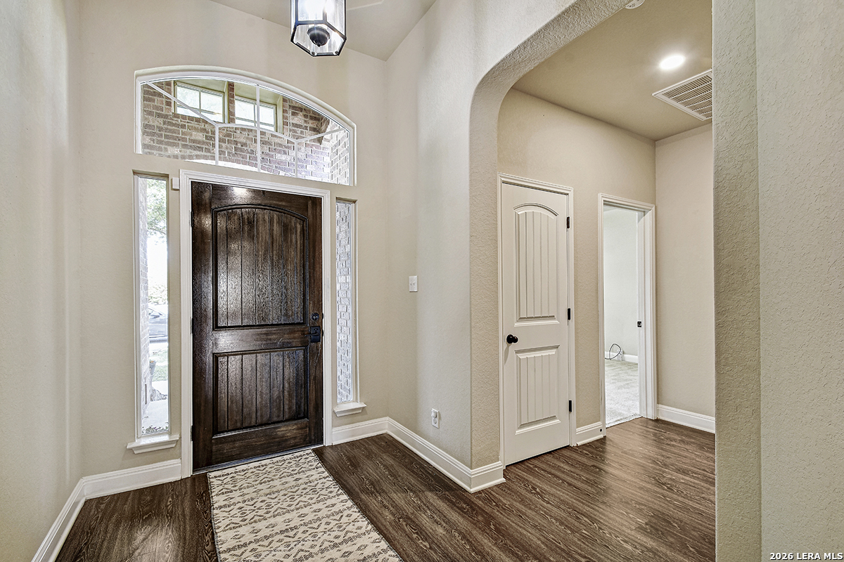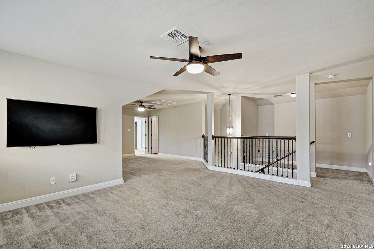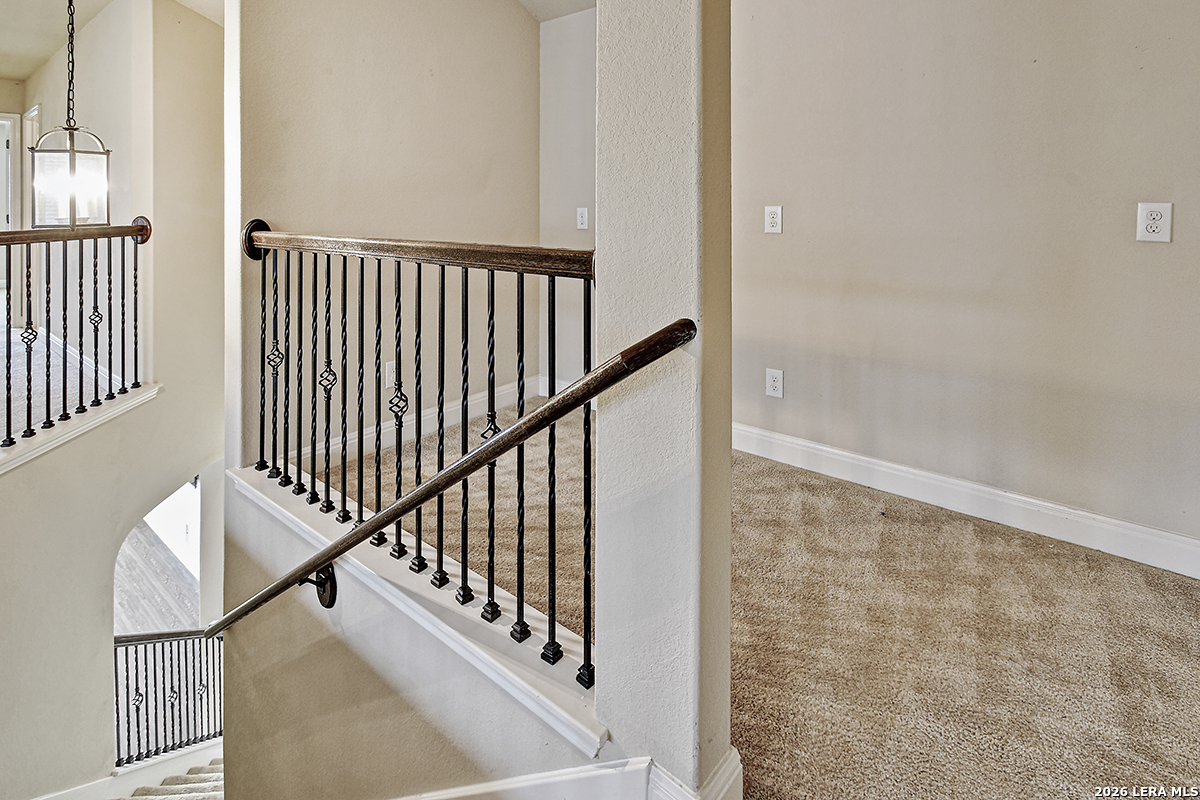 Located in the gated community of Sable Chase and zoned to highly sought after Boerne ISD, this beautifully designed 1.5-story home offers both functionality and privacy. The main level features two secondary bedrooms, a dedicated study, and a privately situated primary suite-thoughtfully separated from the secondary bedrooms. Upstairs, you'll find an additional bedroom, full bath, and game room, ideal for guests, teens, or a private living space. Designed with both comfort and functionality in mind, the home provides generous living areas that flow effortlessly for entertaining or everyday living. The three-car attached garage offers ample parking and storage, while the inviting front porch creates a welcoming space to relax and enjoy the neighborhood. Situated on a spacious homesite backing to a greenbelt with no rear neighbors, this home offers a rare combination of privacy, flexibility, and location in one of the area's most desirable gated communities. Easy access to major highways, shopping and hill country living.
