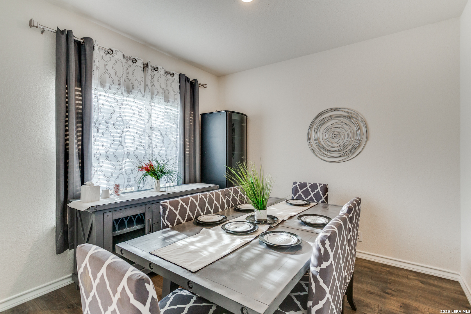 Step into this beautifully maintained 5-bedroom, 3.5-bath home in the sought-after Redbird Ranch community. With 2,715 square feet of well-planned living space, the home showcases high ceilings, expansive windows that fill the interior with natural light, and an open-concept layout complemented by wood-look luxury vinyl flooring throughout. A dedicated dining room provides the perfect setting for gatherings and special occasions. The kitchen is both stylish and functional, featuring stainless steel appliances, a spacious island, custom tile backsplash, and a walk-in pantry. The primary suite, conveniently located on the main floor, offers a relaxing retreat with large windows and an en-suite bath that includes dual vanities, a soaking tub, separate shower, and a sizable walk-in closet. Upstairs, you'll find four additional bedrooms, two full bathrooms, and a versatile game room ideal for entertainment or downtime. Outdoors, enjoy a covered patio, privacy fencing, and a full programable irrigation system for easy maintenance. Fully paid-off solar panels add energy efficiency and long-term value. Ideally situated near JBSA-Lackland, SeaWorld, shopping, dining, and major highways, this home combines comfort, style, and convenience in one of the area's most desirable neighborhoods