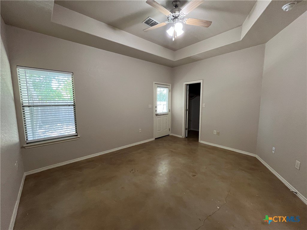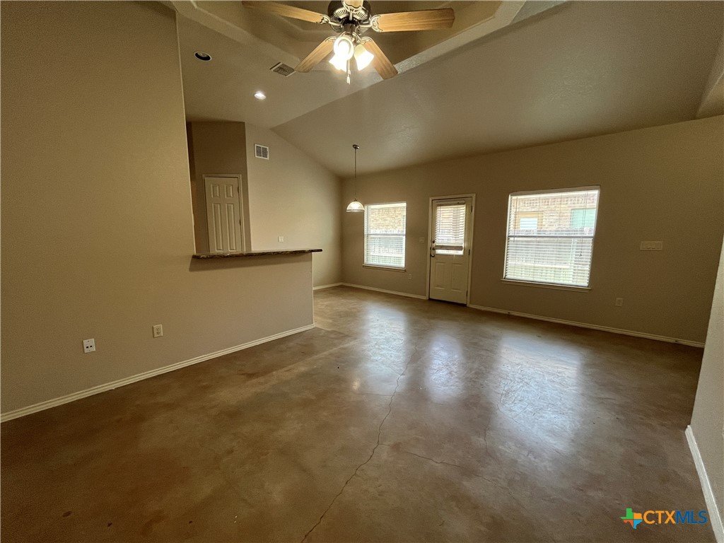 Indulge in this charming 3 bed, 2 bath duplex nestled in a quiet neighborhood with high vaulted ceilings and sleek stained concrete floors throughout. The kitchen offers ample cabinet space, while the garage hosts washer/dryer connections. Step onto the covered patio from the master bedroom, and enjoy the fenced backyard. With ceiling fans, a one-car garage, and a sprinkler system, comfort and convenience await in this delightful abode Agent Only Remarks: