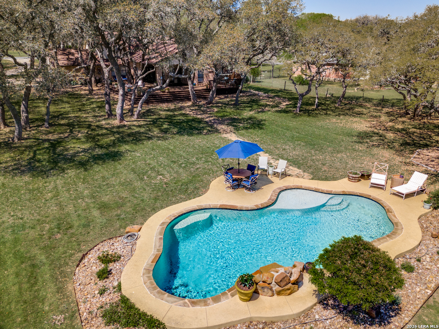 *Open House this Saturday (3/28) 11 a.m. to 2 p.m.* Set on 1.84 acres in Boerne, this is country living with the convenience of being just minutes from town. Mature live oaks, wide open space, and no neighbors behind you-just quiet and room to breathe. The backyard is the highlight. An expansive deck stretches out with plenty of space to entertain, unwind, or create a few cozy nooks of your own. The in-ground pool and hot tub make it feel like your own private retreat, and the size of the lot gives you the kind of flexibility that's hard to find. Inside, the layout gives you options. Two living areas offer space to spread out, including one with a cozy stone, wood-burning fireplace. The primary suite is downstairs for everyday ease, along with a generously sized secondary bedroom that works perfectly as a guest or in-law setup. Upstairs, you'll find four additional bedrooms, including a flex space that can shift with your needs-game room, office, extra bedroom, you name it. There's also a built-in office nook between the kitchen and laundry-one of those practical, work-from-home setups that just makes sense. It feels tucked away, but you're still less than 10 minutes from H-E-B, coffee shops, and daily essentials, with nearby outdoor escapes like Friedrich Wilderness Park. Plus, easy drives to Comfort and Fredericksburg for weekend plans. Space, privacy, and a setup that actually lets you enjoy it.