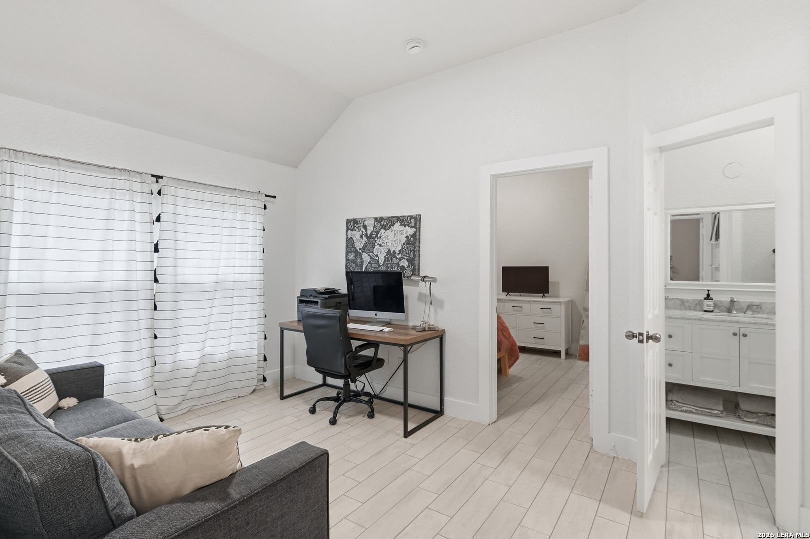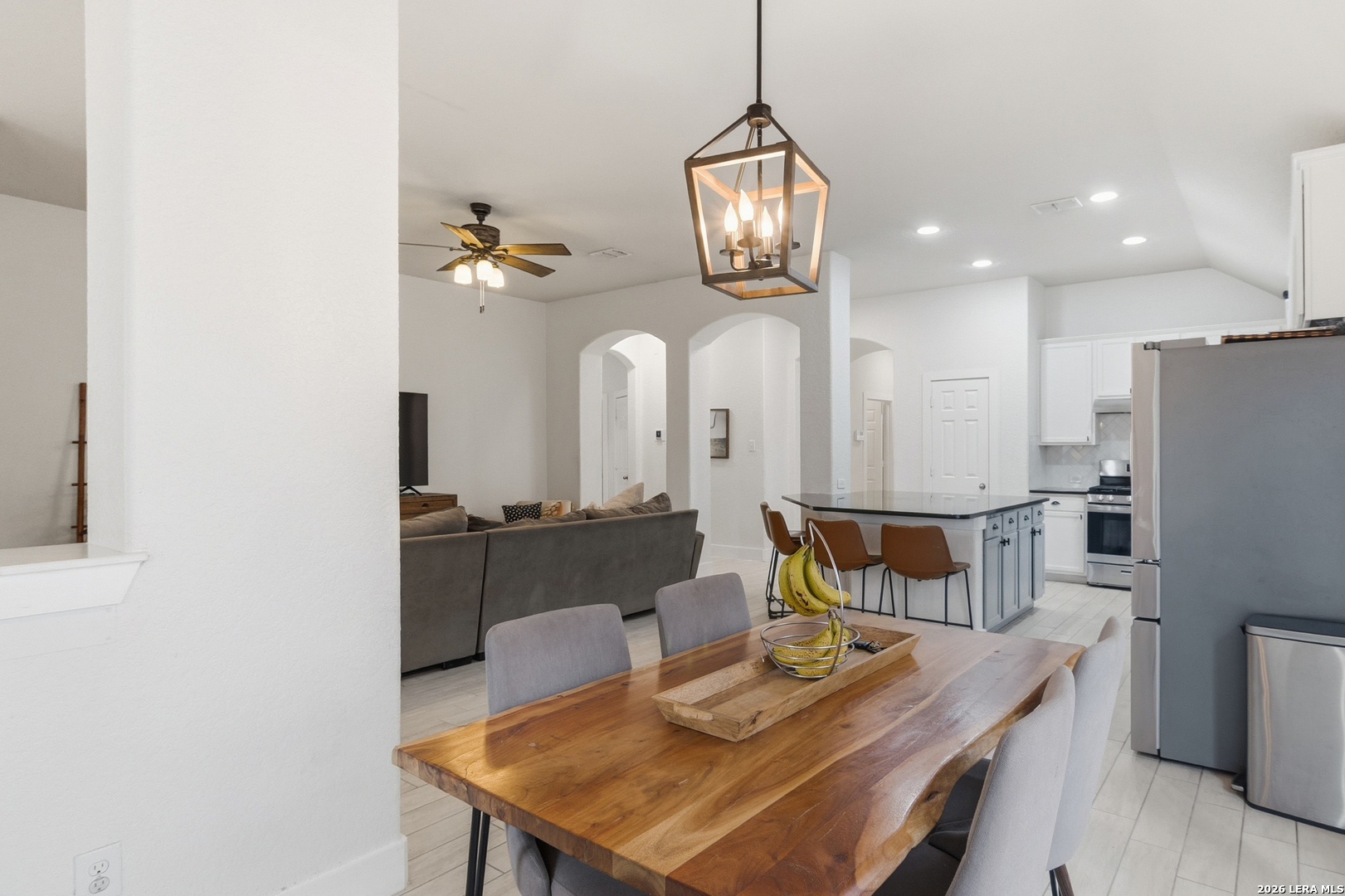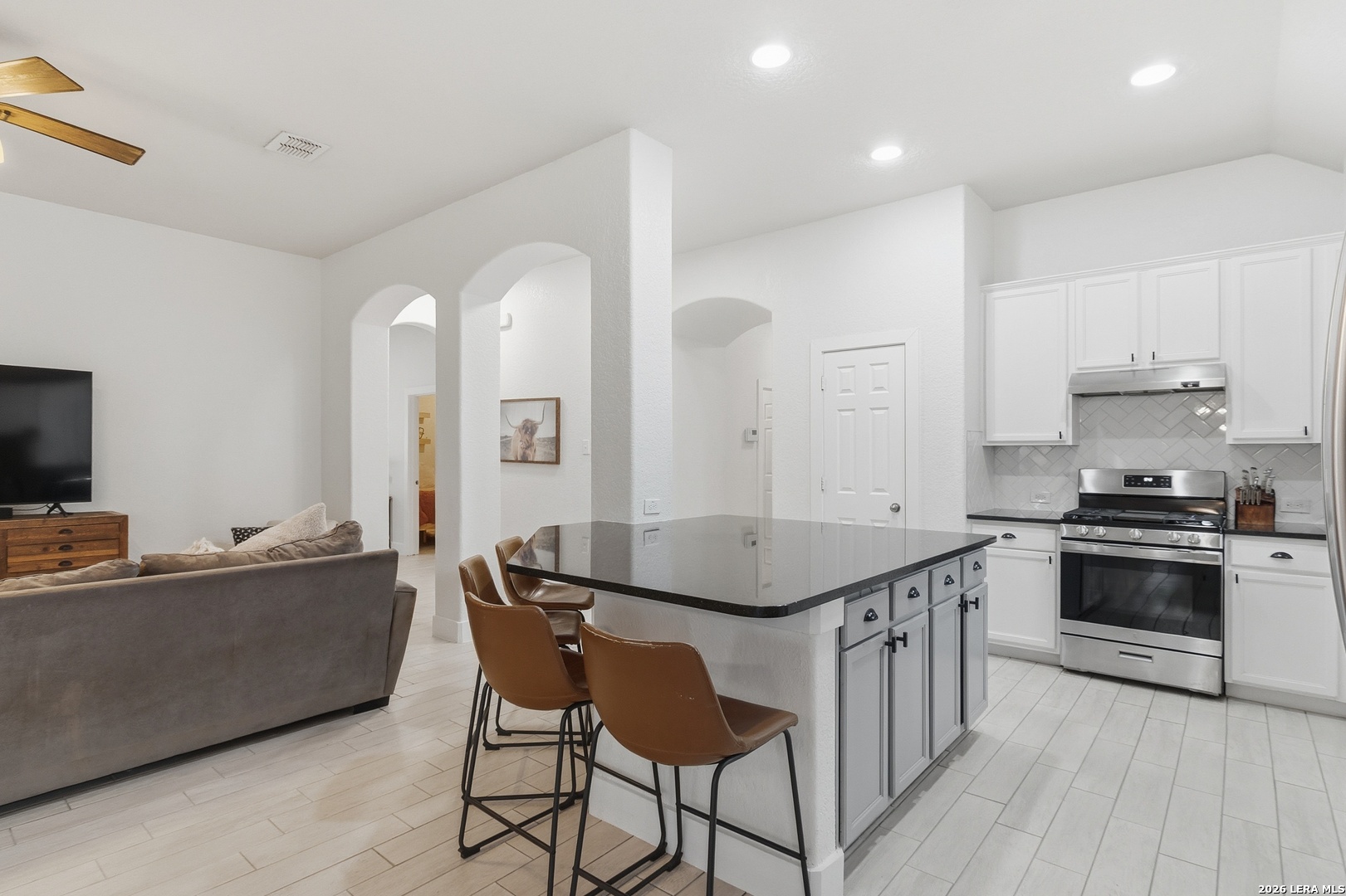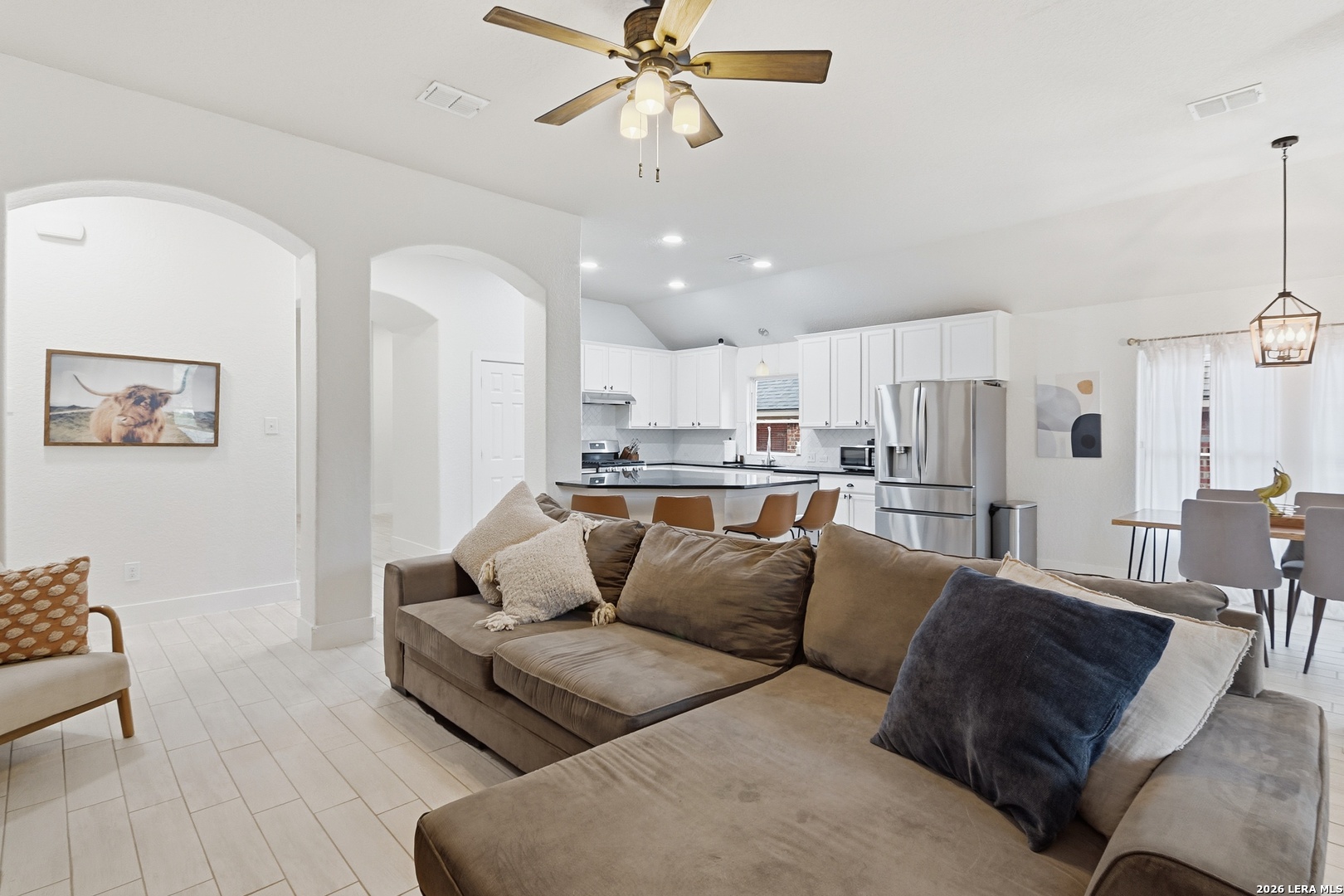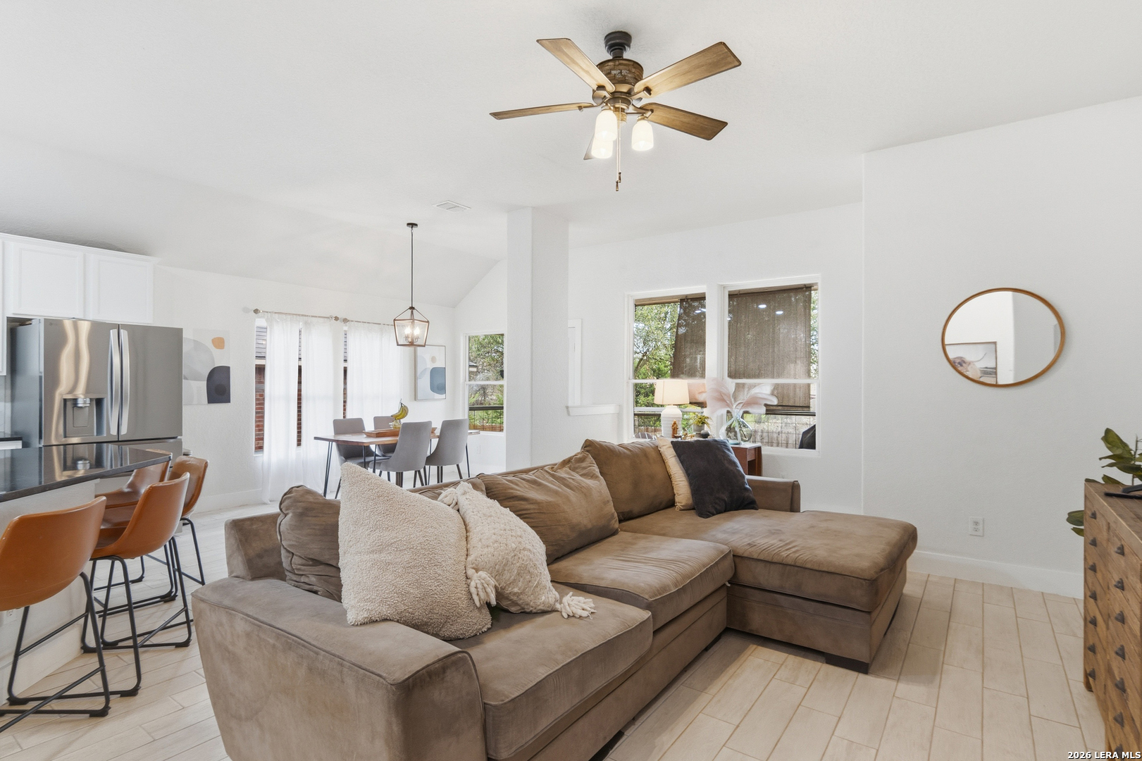 Welcome to this charming one-story home that sits on a greenbelt and offers an open floor plan with 3 bedrooms and 2 bathrooms. The kitchen features gas cooking, abundant cabinet and countertop space, a breakfast bar as well as a breakfast nook. The primary bathroom has recently been upgraded with a large walk-in shower. A dedicated office/study provides flexibility for remote work and/or hobbies. A bonus room also allows for additional office space or a cozy sitting area. Key updates include a roof (2024) and HVAC system (2024). Nestled in the quiet and established gated community of Trinity Oaks with amenities to include a pool, clubhouse and park/playground. This property offers easy access to 281, 1604, shopping, restaurants and so much more. Located within the desirable Comal ISD. Schedule your private showing today!