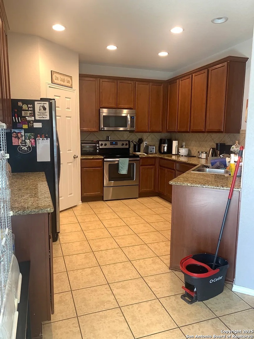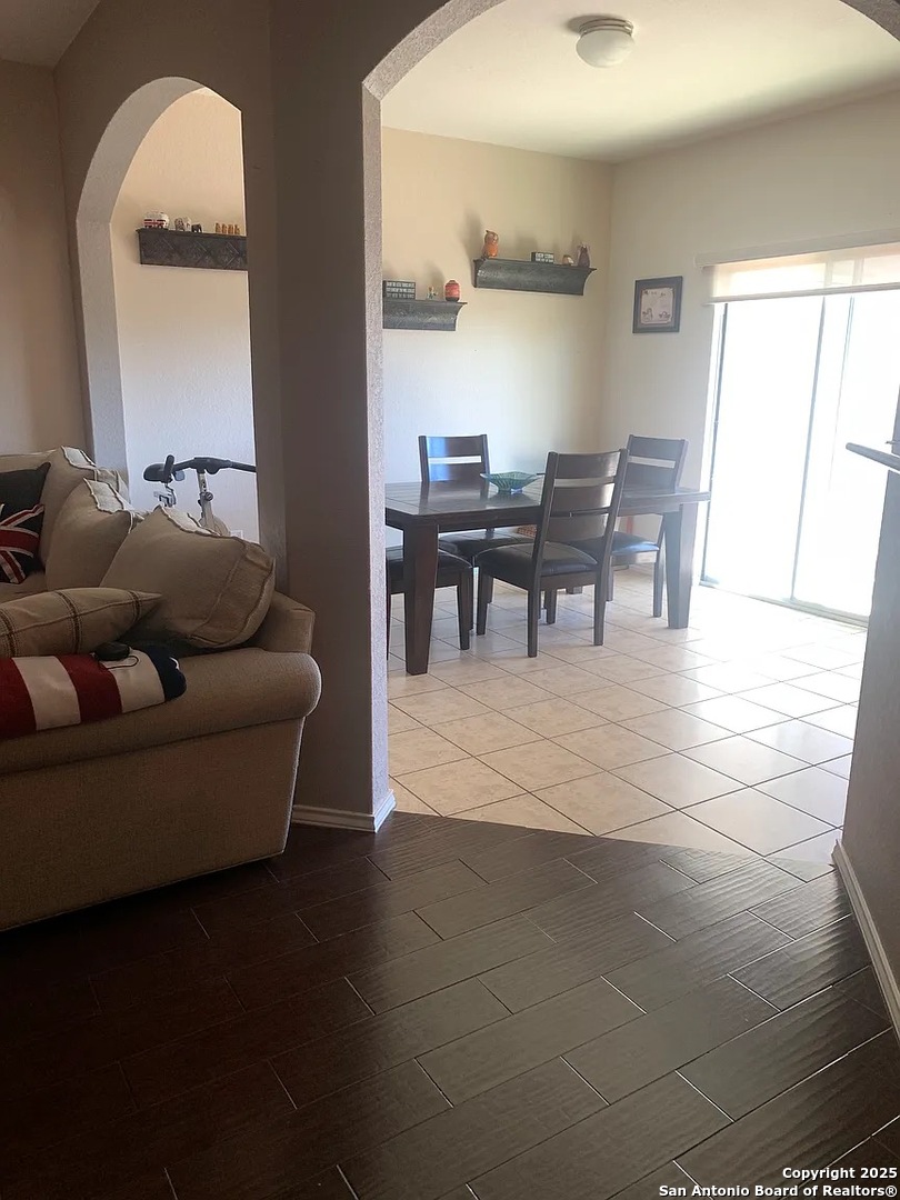 Charming 3-bedroom, 2.5-bath townhome in the desirable gated community of Villas of Silverado Hills! This well-designed two-story home features 1,696 sq ft of living space with an open floor plan, high ceilings, and a separate dining room. The spacious primary suite is located upstairs with a luxurious bath featuring a double vanity, garden tub, and separate tub/shower. Convenient upstairs laundry room with washer and dryer included. Kitchen includes stainless steel appliances: microwave, range, dishwasher, disposal, and refrigerator. Living areas include a comfortable sofa and window blinds throughout. Relax on the covered back porch or enjoy the privacy-fenced backyard with a partial sprinkler system. Energy-efficient features include 13-15 SEER AC, programmable thermostat, double-pane Low-E windows, and radiant barrier. Two-car garage with opener. Convenient location near Highway 281 and Overlook Parkway with NO CITY TAX! Acclaimed Comal ISD schools: Specht Elementary, Pieper Ranch Middle, and Pieper Ranch High School. HOA includes common area maintenance. Move-in ready!