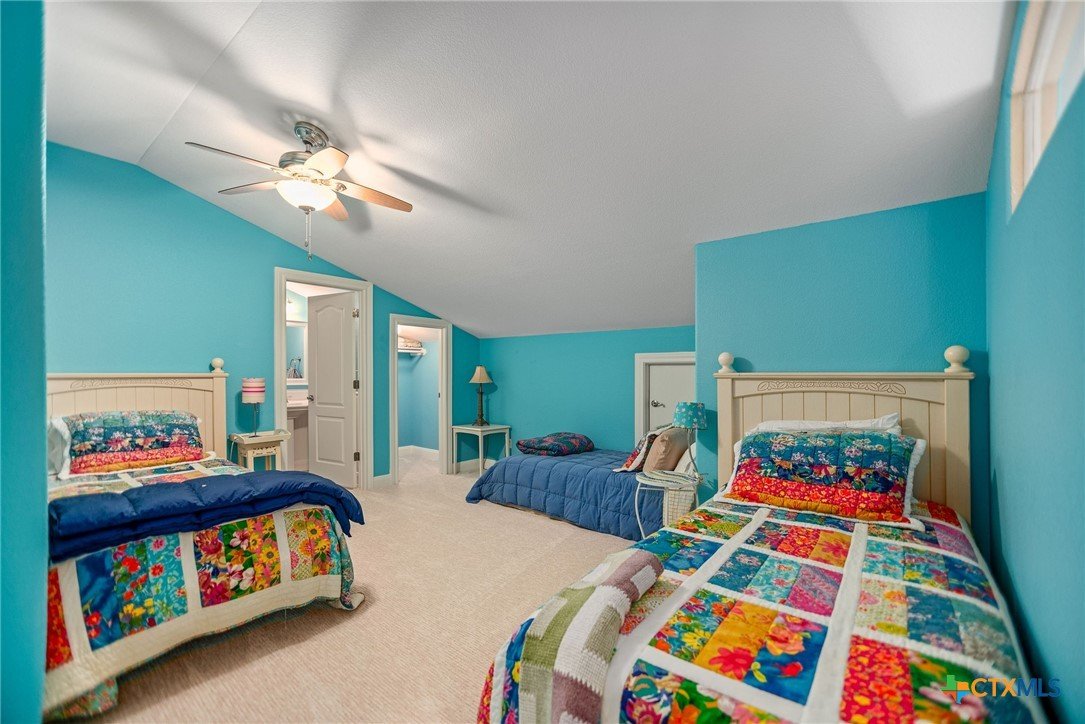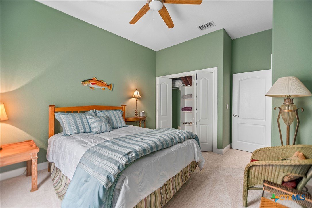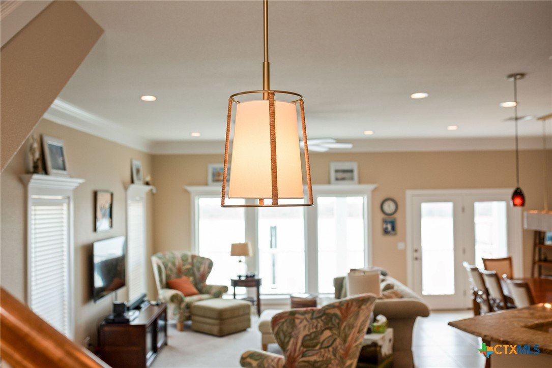 Attention Offshore Fishermen! You found the perfect place for your Vessel and Crew with VIEWS! 4 Bed, 4 Bath ICW home w/2 ACs set back off the ICW, to avoid wakes! 2 Boat Slips; 1-14’ wide slip on 39’ waterfront bulkhead x 145’ on water. Fence the side lawn for pets/kids or add parking! Tiled foyer w/vaulted ceilings, greets you with immediate access to garage, back patio, tackle room, full interior bathroom just steps away from boat! Guest bath has tile floor, tile walk-in shower, granite lavatory. Tackle room has 35 rod holders, build-in prep counter, real wood cabinets to store fishing gear! Garage with 2 roll up doors facing S & N offer coastal breezes! Walk up picturesque, interior staircase where majestic views of Espiritu Santo Bay blanket the living, dining, kitchen in this open concept coastal retreat. Art deco style light fixtures add elegance to this waterfront home. Kitchen includes DW, Electric Stove, Built-in MW, DBL Fridge, Walk-in Pantry, Tile Backsplash, Granite Counter Tops, Hand-crafted Oak Cabinets. Granite bar between kitchen and dining. Living room has access to wall-to-wall south facing, shaded balcony. Built-in window shelves. Dining floor is tile with art deco accent drop light. Comfortable 2 bedroom, 1 bath, for guests on main floor, includes utility room with extra storage space conveniently located close to kitchen. Guest bath has tub/shower combo, tile floors and granite topped lavatory. The majestic staircase continues up one more flight to owner’s Master Bed/Bath quarters complete with a private, south facing wall-to-wall balcony and wall-to-wall windows, jet bathtub, walk-in tile shower and walk-in master closet. Second upstairs guest room has private bath, which adds another Master Bedroom/Bath for your ever-expanding crew! Second Master has pedestal sink, walk-in tile shower, tile floor and Bead Board wainscoting. Selling 90 % furnished, this is a turn-key! All remains except artwork and personal contents of tackle room and garage.
