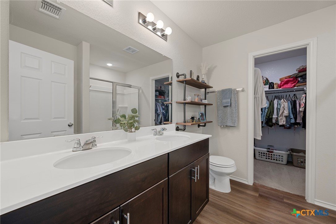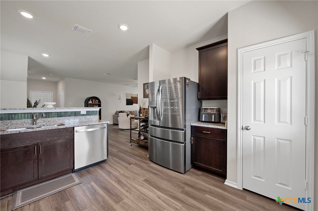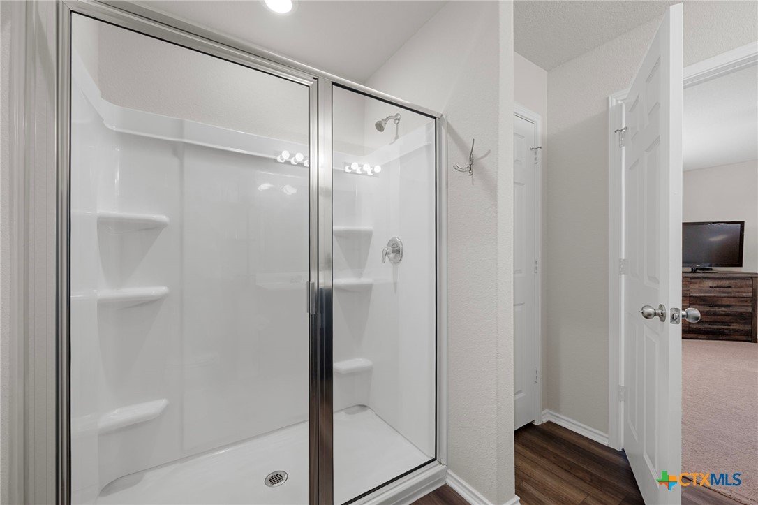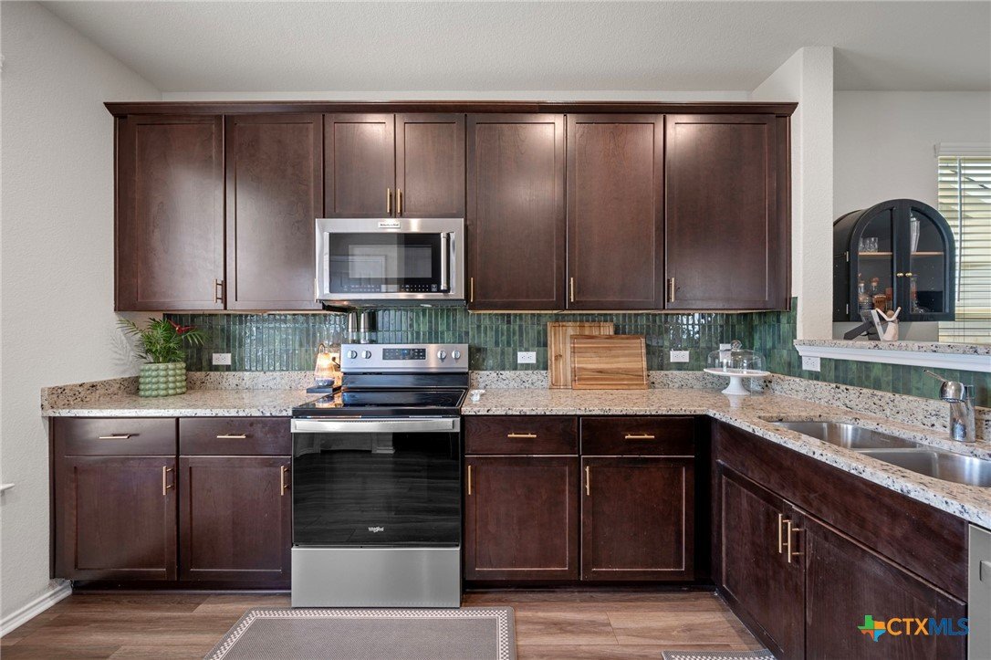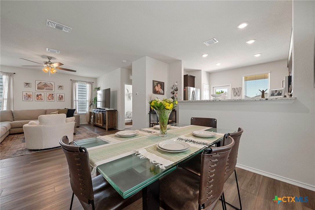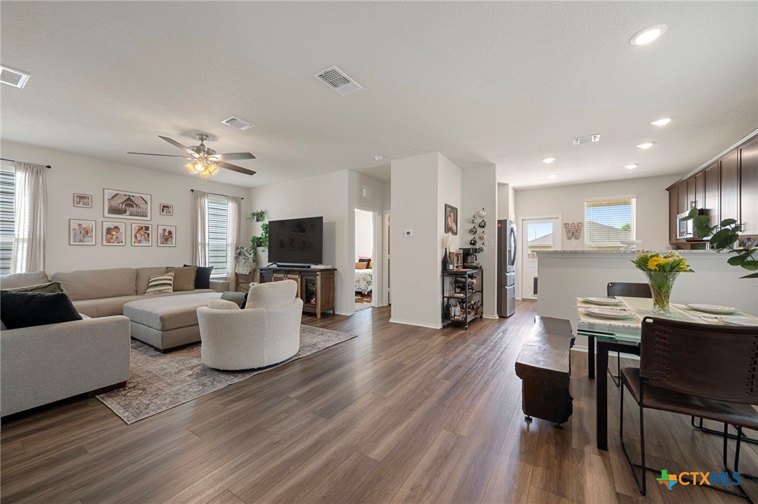 Welcome home! 2023 Centex home features a full bath and bedroom conveniently located on the main floor, and three full bathrooms in total. Upstairs, you'll find a spacious flex space that is ideal for movie nights, an extra living area, or a playroom. The primary suite, also located upstairs, includes a dual vanity and walk-in shower. Additional highlights include upstairs laundry, energy-efficient dual-pane windows, ceiling fans added, and newly planted trees. Enjoy a covered patio and a private backyard with an adorable garden! Please note, the camera on the back patio does not convey with the property. Residents will also benefit from community amenities such as a community pool, basketball court, playground, and a pickleball court is coming soon. The home provides easy access to 183, and is conveniently located near upcoming Target and Costco developments. Located in a PID and pre-inspected!