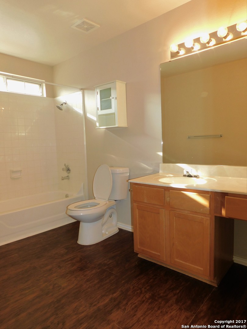 Welcome to this beautiful 4-bedroom 3.5-bathroom home in the neighborhood of Enciro Fores in San Antonio, TX. This home is a perfect blend of comfort and style, featuring two primary bedrooms, one upstairs and one downstairs, each with its own private bathroom. The home is equipped with a refrigerator, water softener, and ceiling fans for your convenience. The eat-in kitchen is perfect for casual dining, while the separate dining room is ideal for more formal occasions. The upstairs gameroom adds an extra layer of fun and relaxation. The home also boasts solid wood flooring downstairs, adding a touch of elegance and durability. The large backyard, complete with a patio deck and sprinkler system, is perfect for outdoor activities. The property also includes a 2-car garage, laundry inside, and a privacy fence for your peace of mind. As part of the NEISD School District, this home is perfect for those seeking quality education. The community pool is a great place to cool off during the hot Texas summers. Come and experience the comfort and convenience of this beautiful home in Enciro Forest.