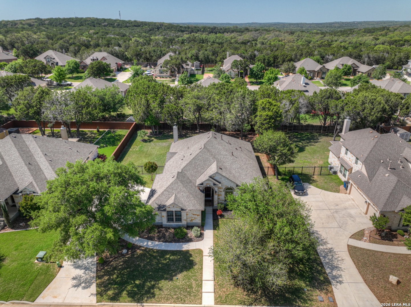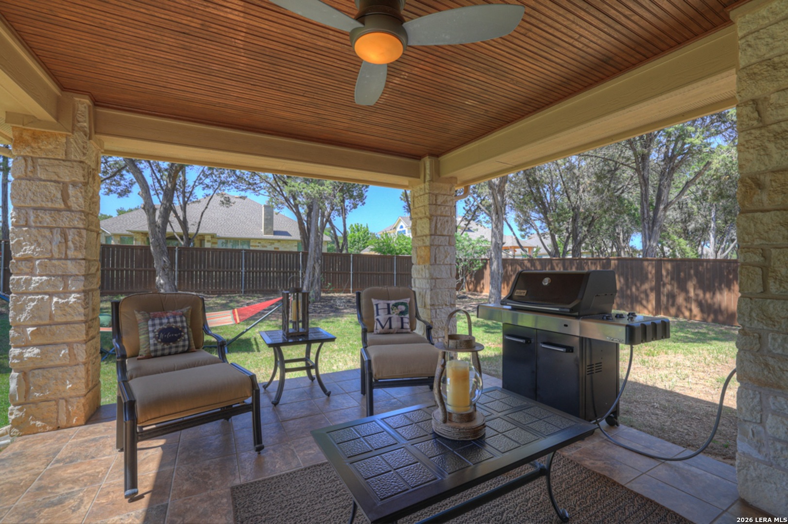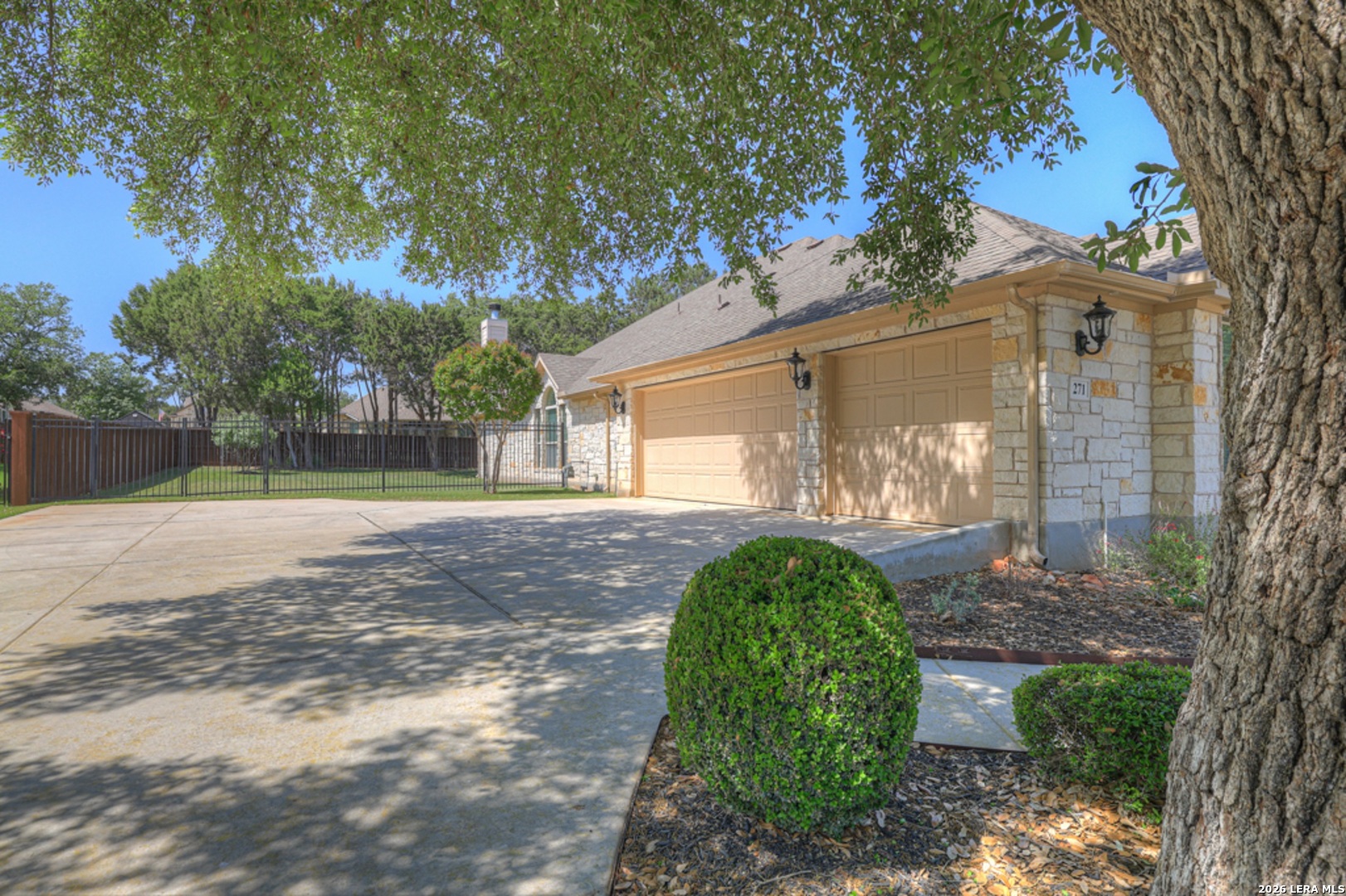 Located in the gated community of Manor Creek, 271 Hamburg Avenue offers refined Hill Country living. This meticulously maintained, one-owner luxury home features 3 bedrooms, 2.5 baths, and 2,539 square feet of thoughtfully designed living space blending modern convenience with timeless charm. The custom mahogany front door opens to reveal a welcoming foyer which gracefully flows into bright, open-concept areas with soaring ceilings. A dedicated office offers an ideal work-from-home space or a quiet place to read. Interior spaces showcase the home's many lovely features including hardwood floors, granite countertops, crown molding, architectural niches, and stylish fixtures. The living room, anchored by a floor-to-ceiling natural gas stone fireplace, overlooks the tranquil backyard. A gourmet kitchen, the heart of the home, includes a beautiful island, stainless steel G.E. Profile appliances, extensive cabinetry, under-cabinet lighting, tile backsplash and a generous bar area ideal for entertaining. The primary suite is a sanctuary with dual vanities, a jetted spa tub, a full separate shower, water closet, and a large walk-in closet. Additional highlights include covered front and rear porches, a fully fenced backyard, an oversized three-car garage with a bonus area for organized clutter free living, whole-home water softener, fiber internet, security system, and a professionally maintained HVAC system. Residents appreciate the easy access to community amenities including a pool, park, playground and proximity to New Braunfels' rivers, dining and shopping. Ask for the list of all special features & upgrades.