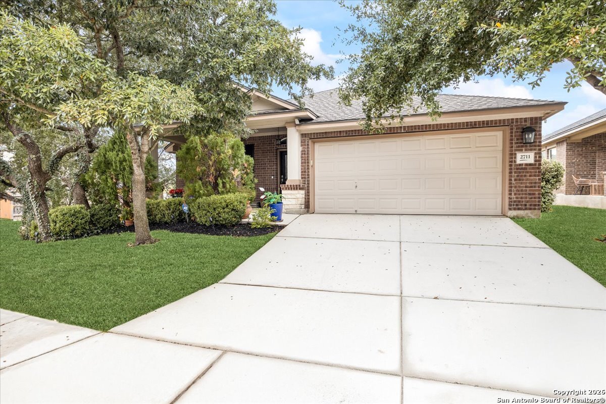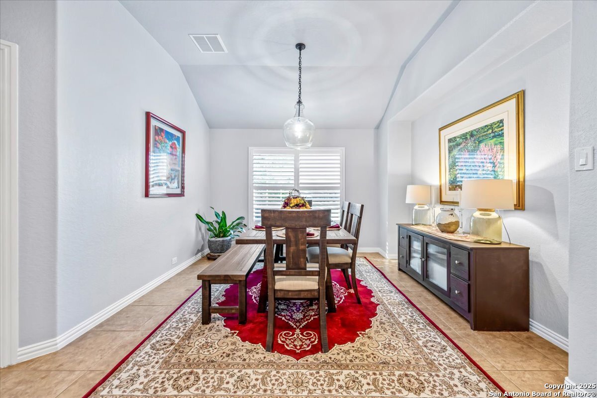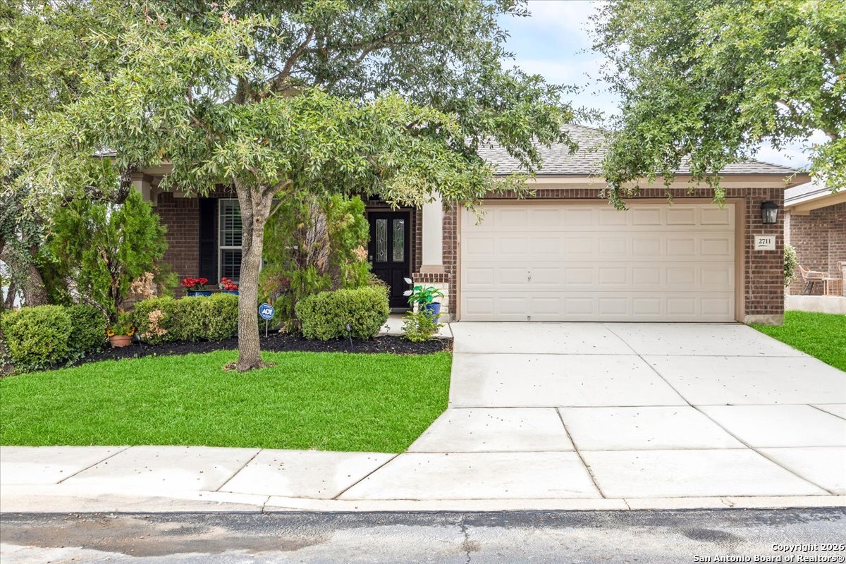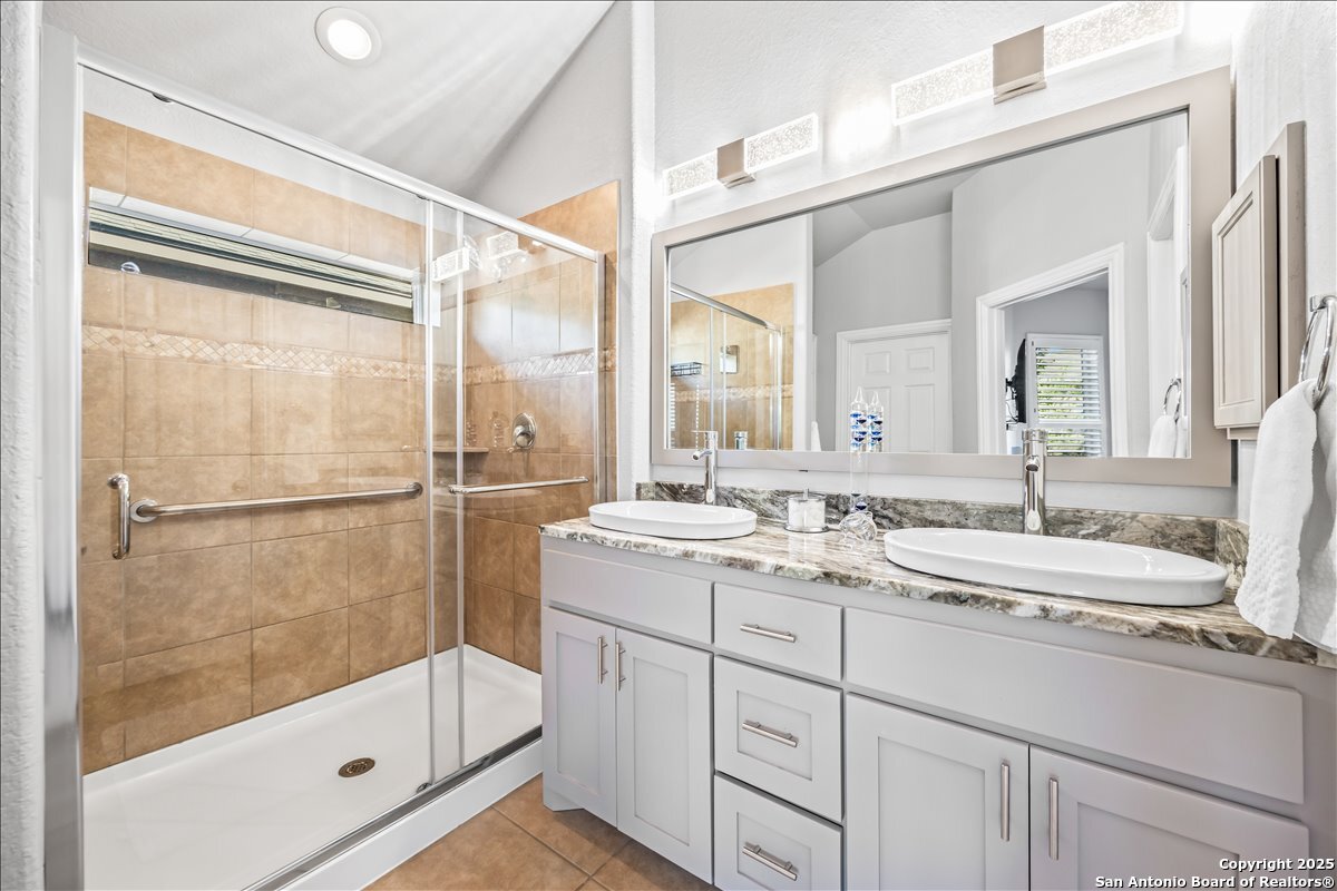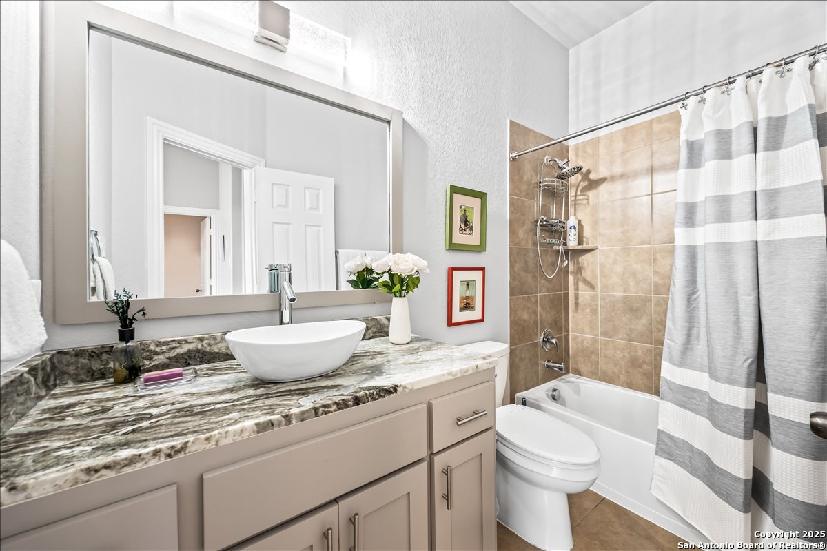 Move-in ready, fully upgraded, and tucked away on a quiet cul-de-sac in gated Trinity Oaks! This single story David Weekley home offers rare privacy with an empty lot next door and a thoughtful layout designed for modern living. Inside, you'll find plantation shutters throughout, fresh interior paint, and no carpet-only tile and luxury vinyl plank flooring. The open kitchen features custom-painted cabinets with hardware, granite countertops and island, and recent stainless-steel LG gas cooktop, built in oven, and microwave, ideal for both everyday living and entertaining. The primary suite is a true retreat with a bay window, oversized walk-in closet, and custom walk-in shower. Both bathrooms feature quartzite countertops and custom cabinetry, with additional built-ins in the laundry room for extra storage. A dedicated private study plus a flex room provide versatile space for work or guests. Enjoy outdoor living on the covered patio with lap-wood ceiling, recessed lighting, and an oversized upgraded ceiling fan. Designer lighting on dimmer switches throughout completes this beautifully maintained home. Community pool and park, no city taxes, and zones to acclaimed Comal ISD including Pieper High School. A rare opportunity for turnkey living in Trinity Oaks-schedule your showing today.