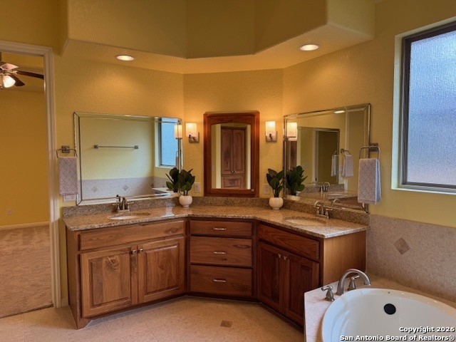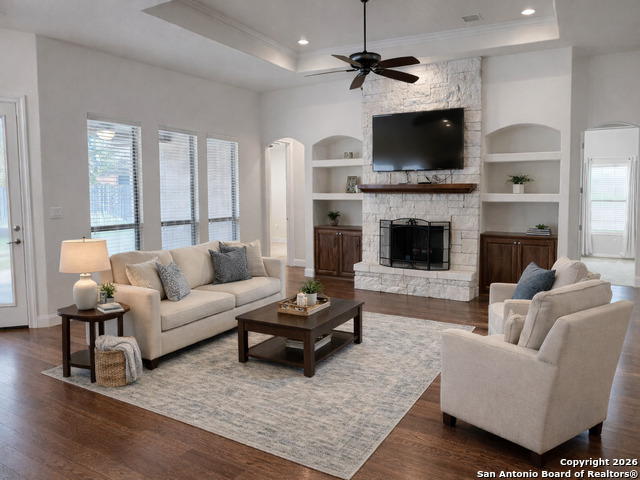 Welcome to this beautifully maintained home in the highly sought-after neighborhood of Champions Village in New Braunfels! Featuring soaring vaulted ceilings and a bright, open floor plan, this residence offers a spacious and inviting atmosphere perfect for both everyday living and entertaining. The home includes an oversized garage, a large, dedicated laundry room with ample space for storage and functionality. The second and third bedrooms are connected by a well-appointed Jack-and-Jill bathroom, complete with dual vanities for added convenience and privacy. Enjoy the security and exclusivity of gated living while being just minutes from shopping, dining, and local amenities. Don't miss out on this amazing opportunity! **Seller is willing to pay concessions for the paint color of your choice with an acceptable offer.**