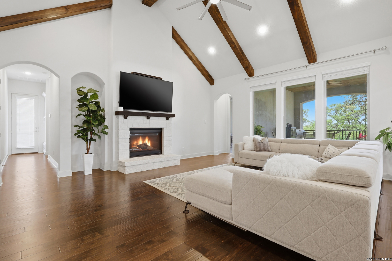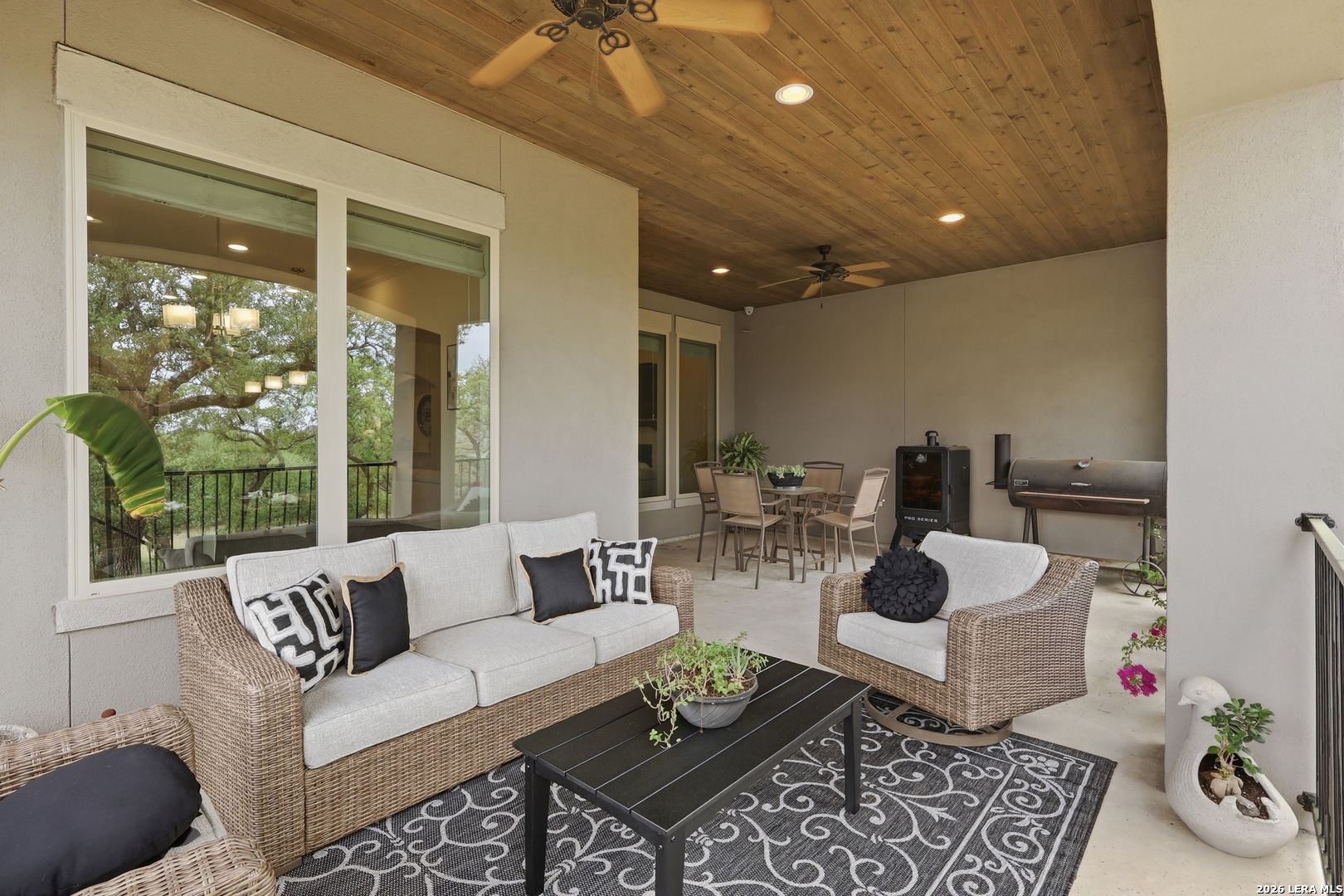 Tucked away in the gated Highland Estates community, intentionally positioned between Timberwood Park and Kinder Ranch, 27151 Montana Pass offers the rare balance of prestige, privacy, and convenience. Here, you experience the best of both worlds, peaceful estate style living with the ease of being within the city of San Antonio. Zoned to top rated Comal ISD schools, including Specht Elementary, Pieper Middle / High School. Located just 19 minutes from the airport and under 90 minutes to both Austin and Fredericksburg, the location is as strategic as it is desirable. At the heart of this property is a truly rare opportunity, a full one acre corner lot framed by towering mature trees. From the moment you arrive, there is an immediate sense of space, privacy, and natural beauty that is becoming increasingly difficult to find. Step into the backyard and you will understand what makes this home so special. A canopy of mature trees creates a peaceful, shaded retreat, while fruit bearing trees and blooming roses add color, character, and a connection to nature that evolves with the seasons. Whether it is slow mornings with coffee in the shade, kids running freely across the open lawn, or evenings spent entertaining under the Texas sky, this is a space designed to be lived in and loved. The corner positioning enhances both privacy and presence, giving the property an expansive, estate like feel. With a full acre at your disposal, there is room to create, expand, and truly design the lifestyle you have been wanting. Homes like this are few and far between, where land, trees, and location come together with intention and ease.