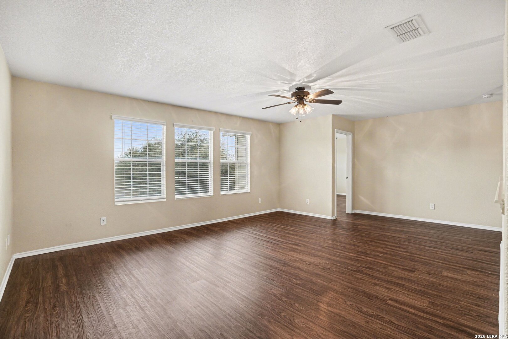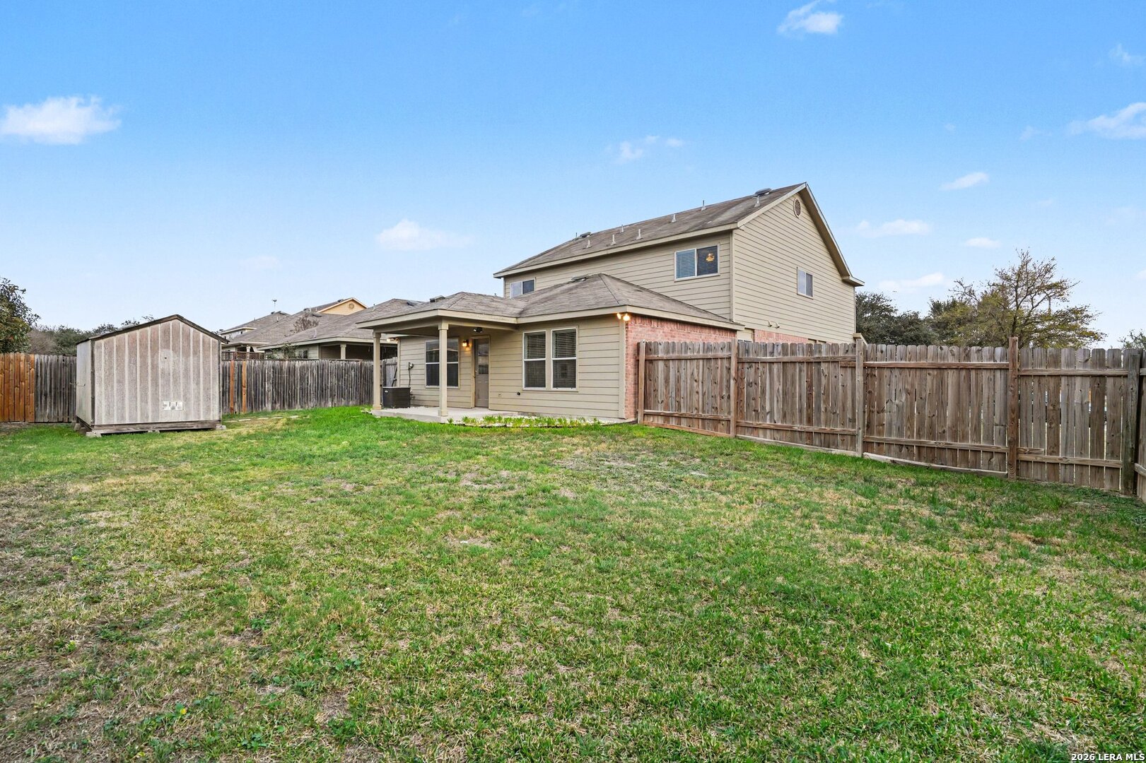 Four-bedroom, 2.5-bathroom home on a spacious corner lot in the desirable Ridge at Silverado Hills. Upon entering, you are greeted by a combined formal living and dining area. The heart of the home is located at the rear, where an open-concept layout seamlessly connects the kitchen, breakfast area, and family room. The family room provides direct access to a fully fenced backyard, complete with a convenient storage shed. The primary suite is privately located on the first floor just off the family room and features an attached ensuite bathroom. The second floor offers exceptional versatility with two distinct flex spaces: one ideal for a secondary living or media area, and the other perfect for a home office or reading nook. Three additional bedrooms and a full bathroom complete the upstairs. Enjoy easy access to Hwy 281 and the benefit of being within the top-rated Comal ISD. Schedule your showings today!