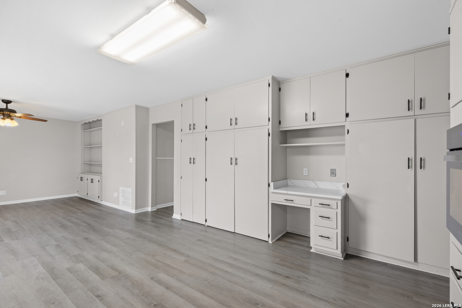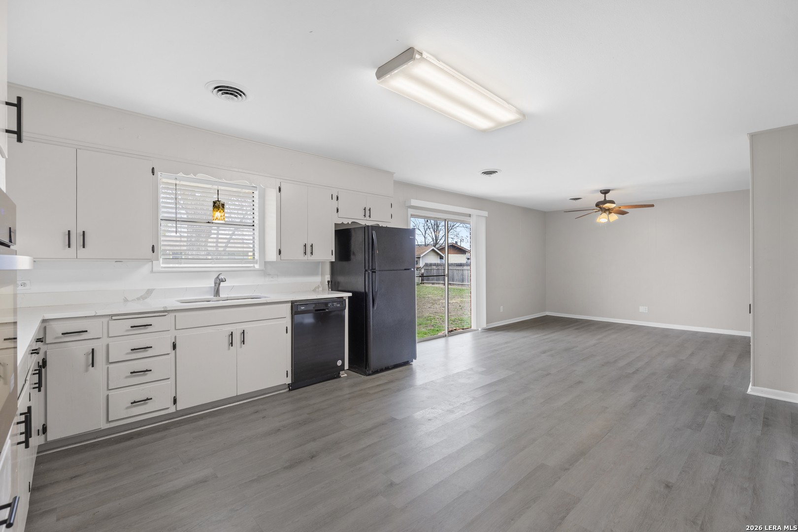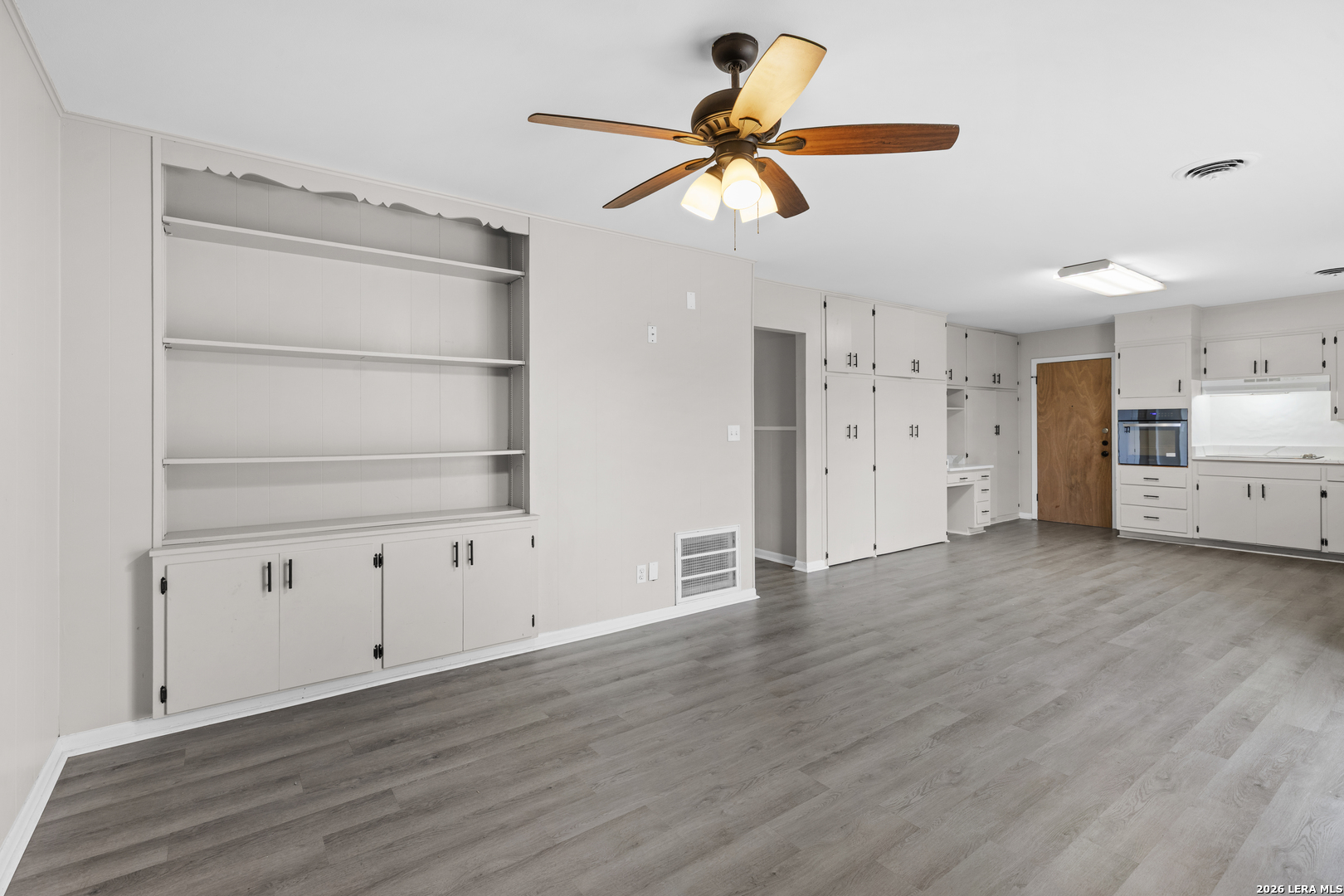 Newly Updated 3 Bed / 2 Bath / 2 Car Garage Home on Meadow Ave! This move-in ready home features fresh paint and luxury vinyl plank flooring throughout-no carpet anywhere! The spacious living room offers built-in shelving, creating both charm and functionality. The kitchen is well-equipped with an electric cooktop, built-in oven, dishwasher, refrigerator, quartz countertops, and a convenient built-in desk area-perfect for a home command center. The primary bathroom has been beautifully updated and features a stylish rolling farmhouse door. The hallway bath has also been renovated with a new vanity and a walk-in shower. Ceiling fans are located throughout the home for added comfort. Enjoy easy access to IH-35, making commuting a breeze. Located in Comal ISD and nestled in an established neighborhood with no HOA-giving you more freedom and flexibility. Don't miss this updated gem in a prime New Braunfels location!